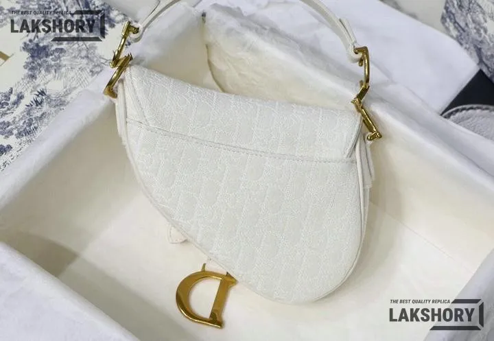 Dior 1:1 Mirror Replica 2020 Mini Saddle Satchel White 21CM/8.2IN