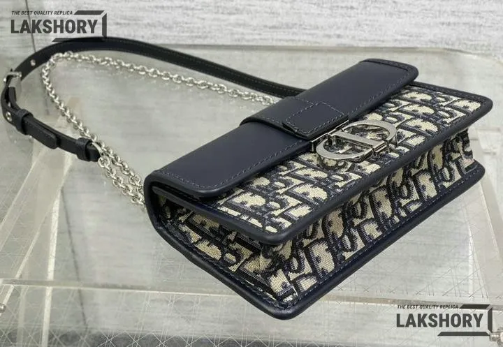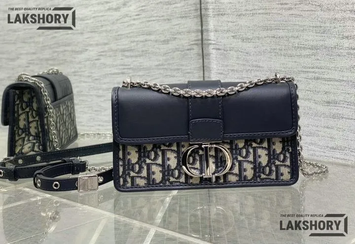 Dior 1:1 Mirror Replica 30 Montaigne Blue East-West Chain Calfskin Bag