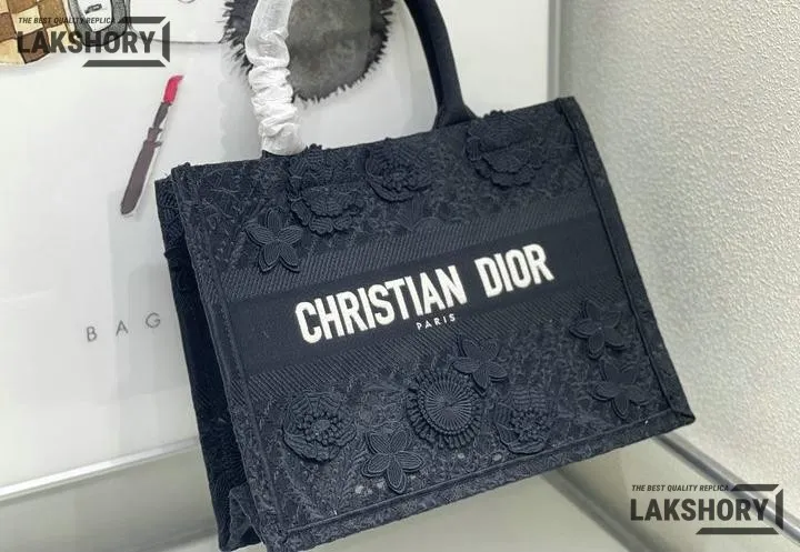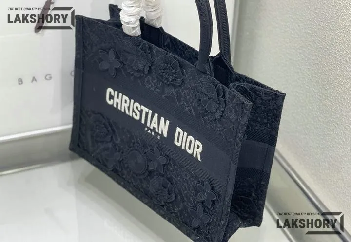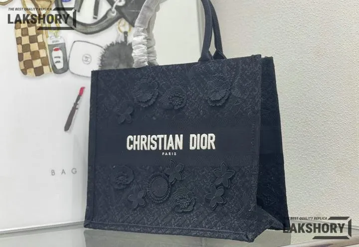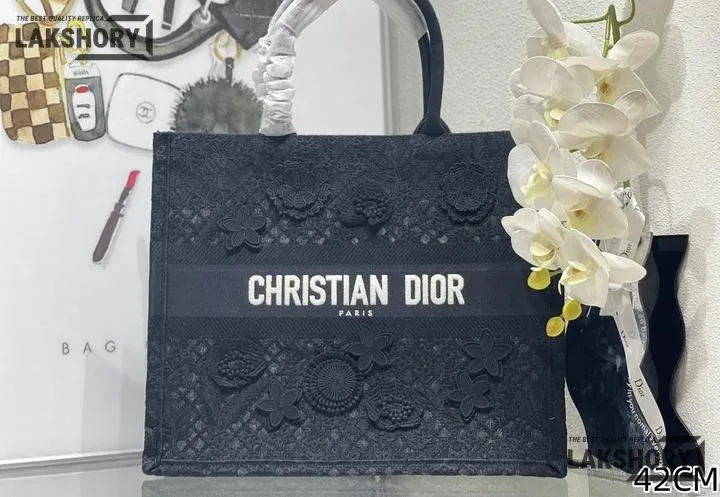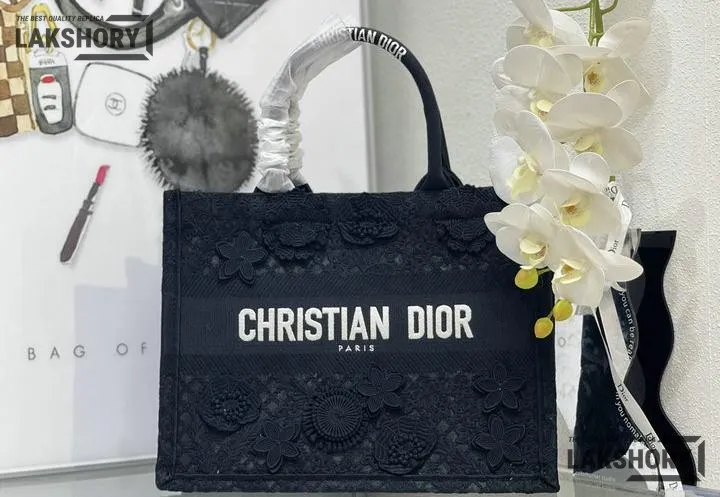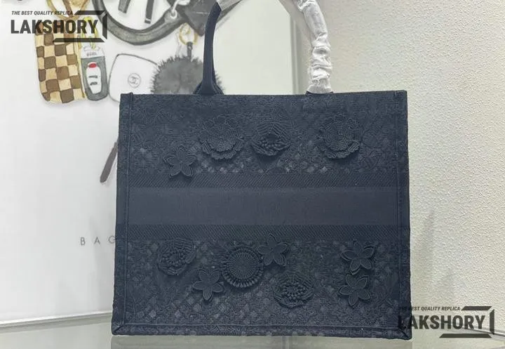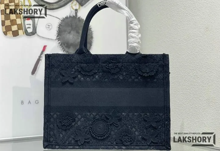 Dior 1:1 Mirror Replica 3D Macrame D-Lace Butterfly Book Tote Black