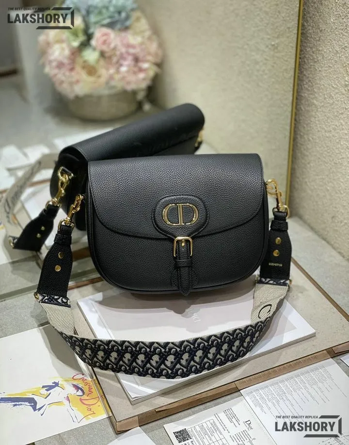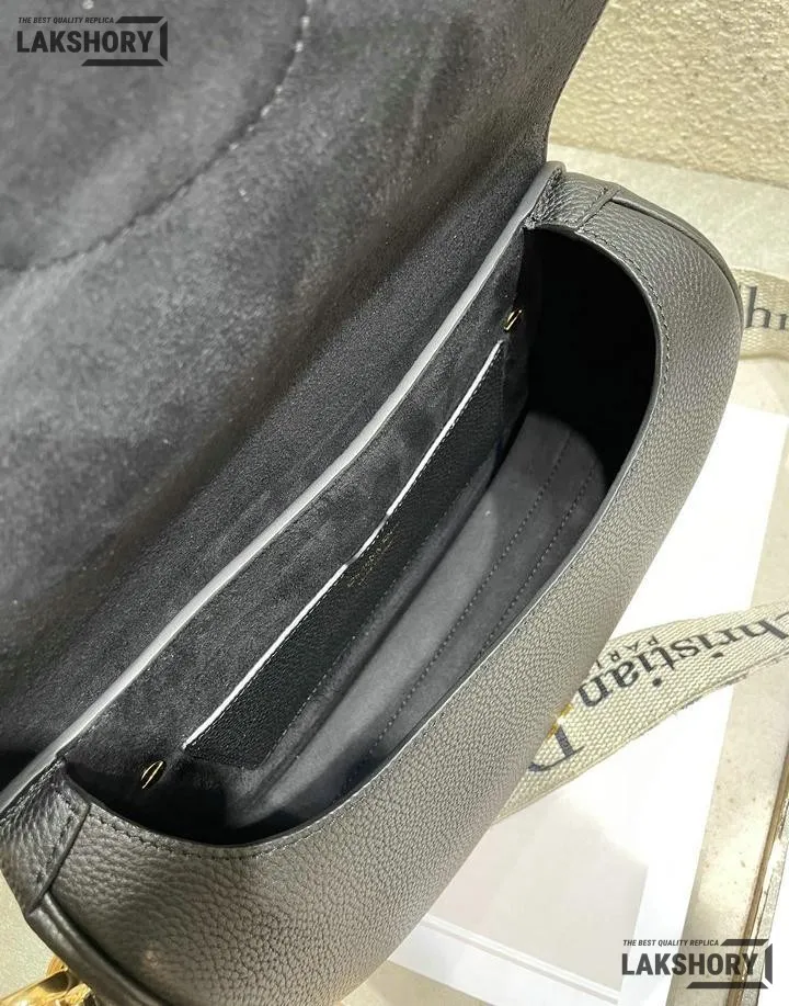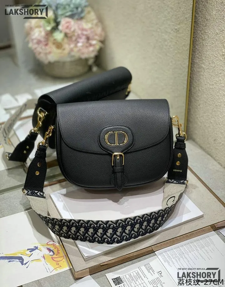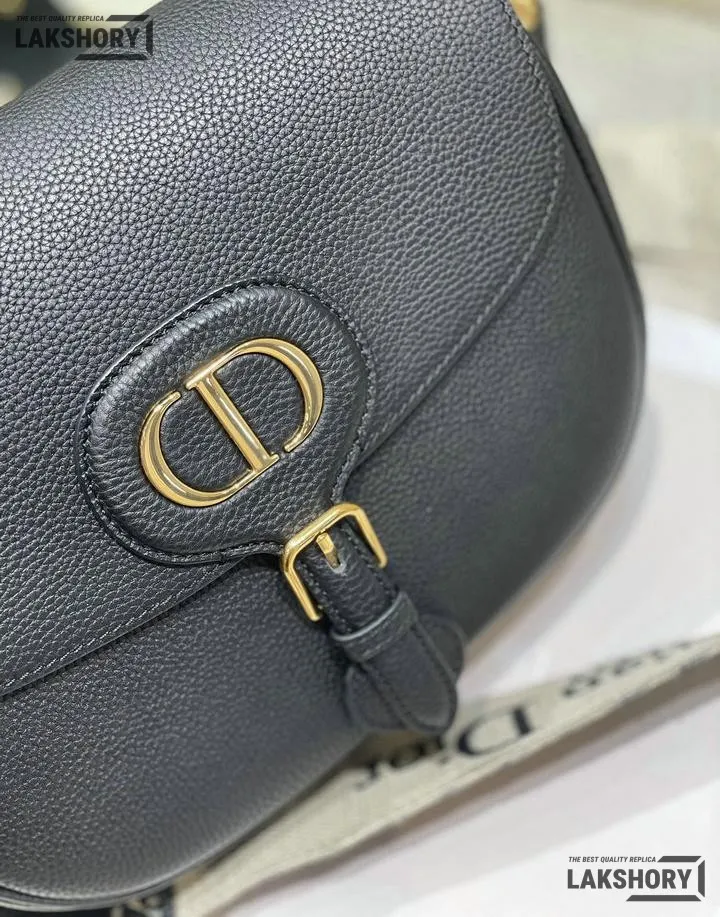 Dior 1:1 Mirror Replica Black Grained Calfskin Large Bobby Flap 27CM/10.6IN