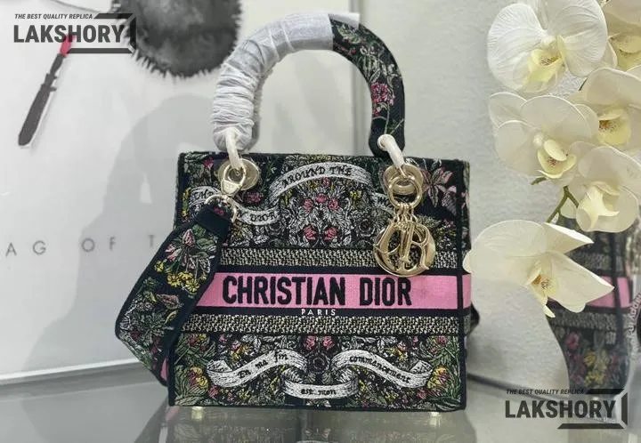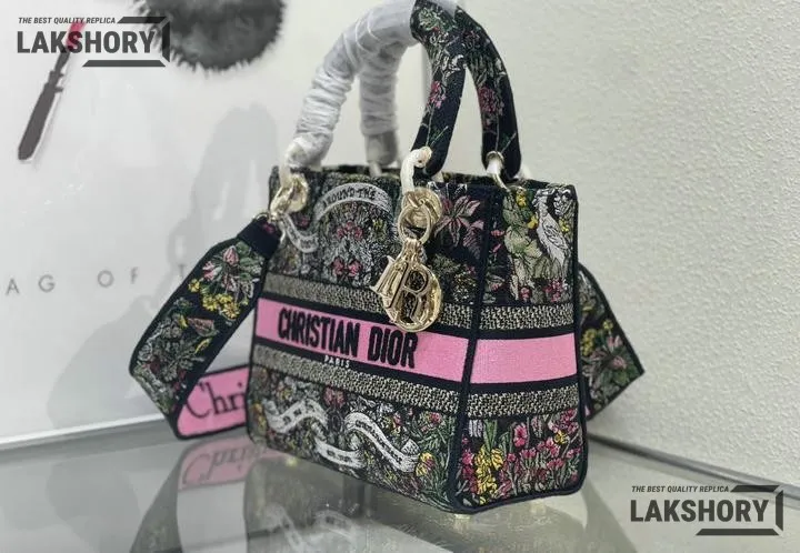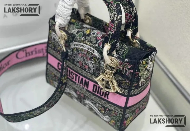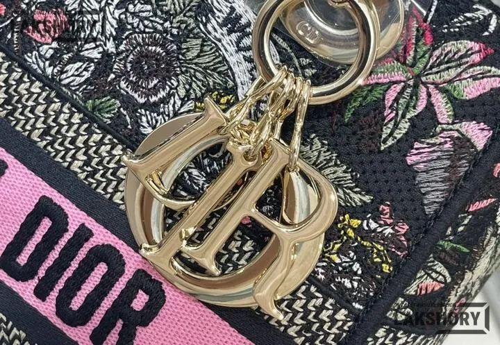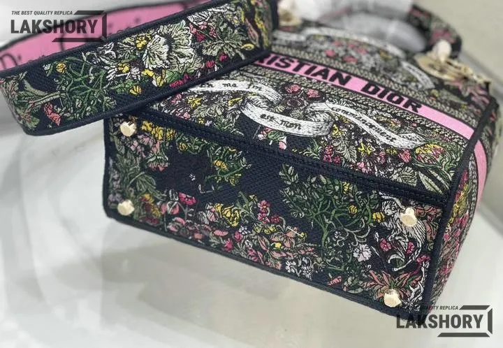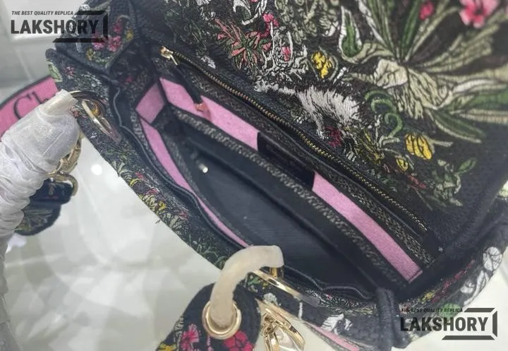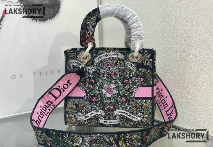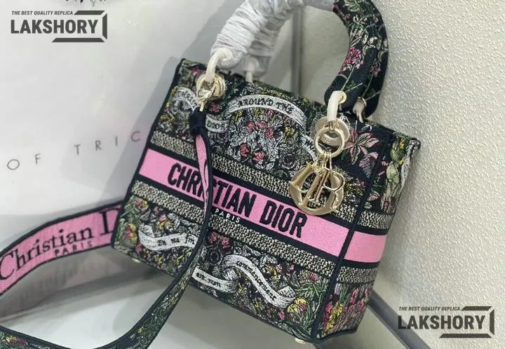 Dior 1:1 Mirror Replica Black Lady D-Lite Around the World Motif 24CM/9.4IN