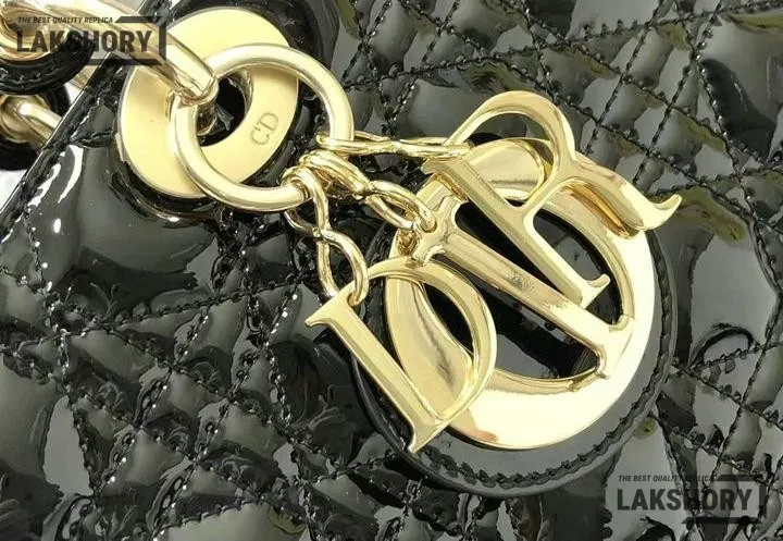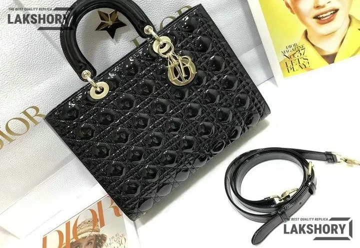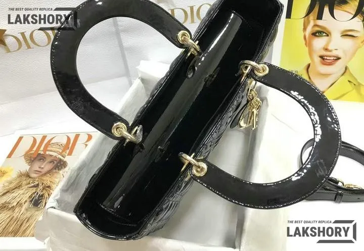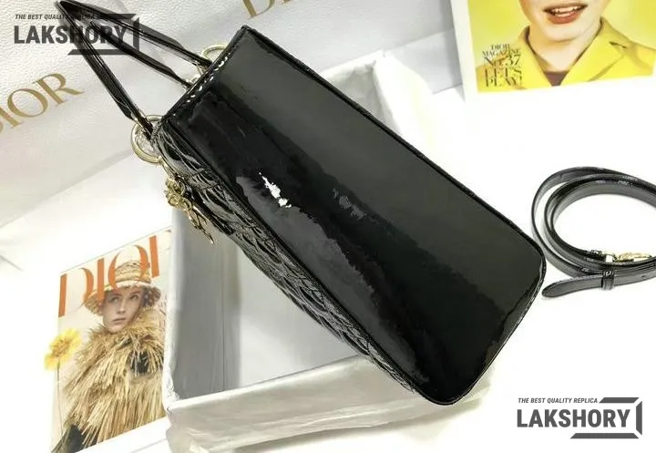 Dior 1:1 Mirror Replica Black Large Patent Lady Dior 32CM/12.6IN