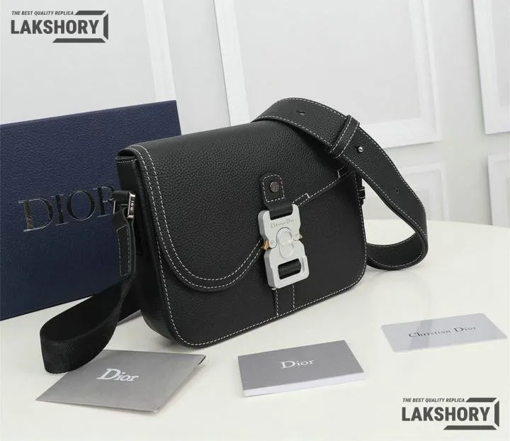 Dior 1:1 Mirror Replica Black Medium Messenger Saddle 23CM/9.1IN
