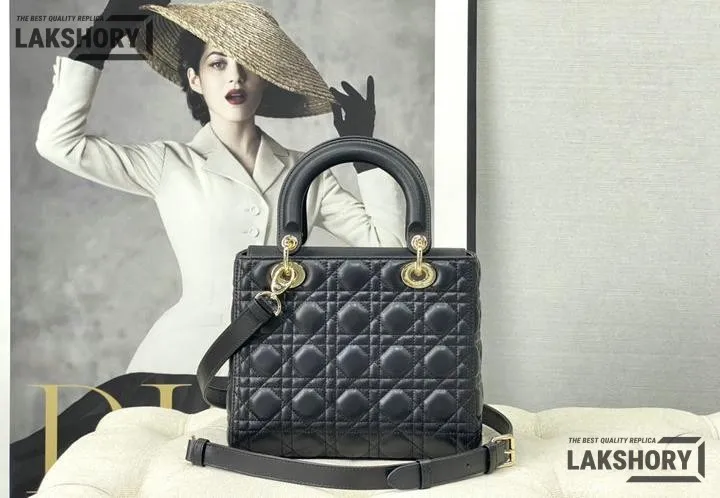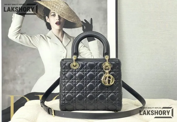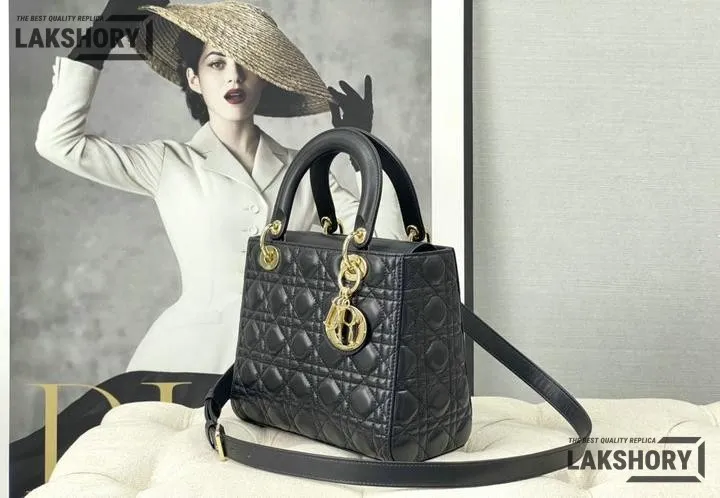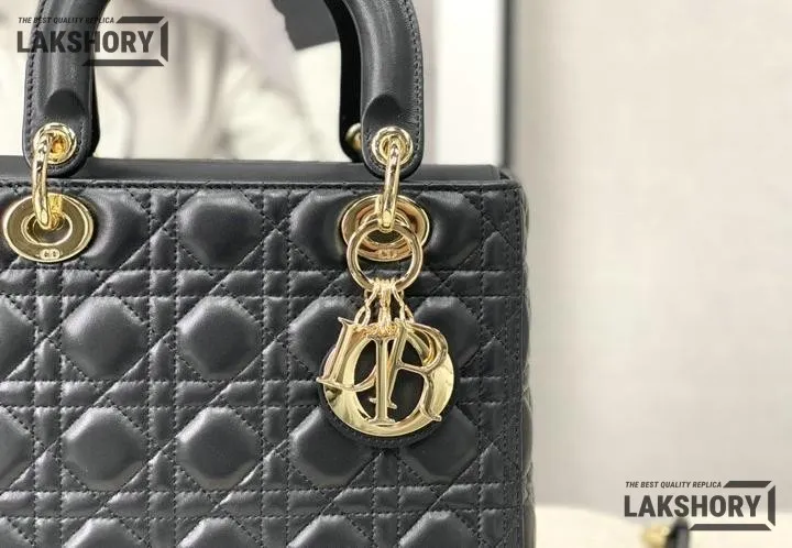 Dior 1:1 Mirror Replica Black MediumSheepskin Lady Dior 24CM/9.4IN