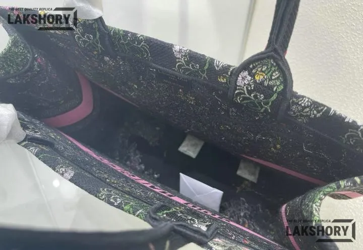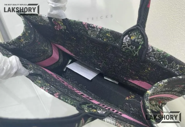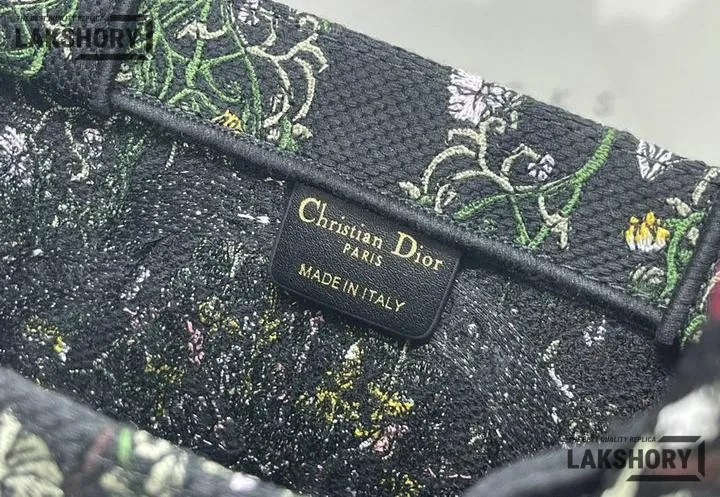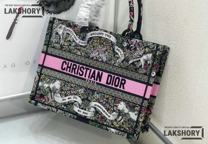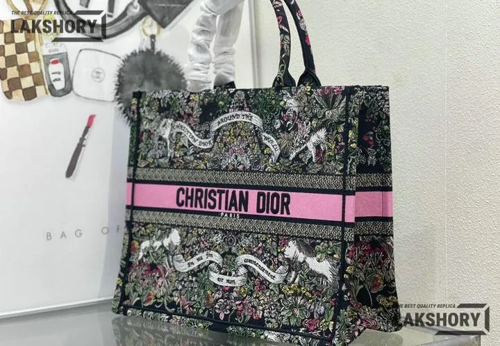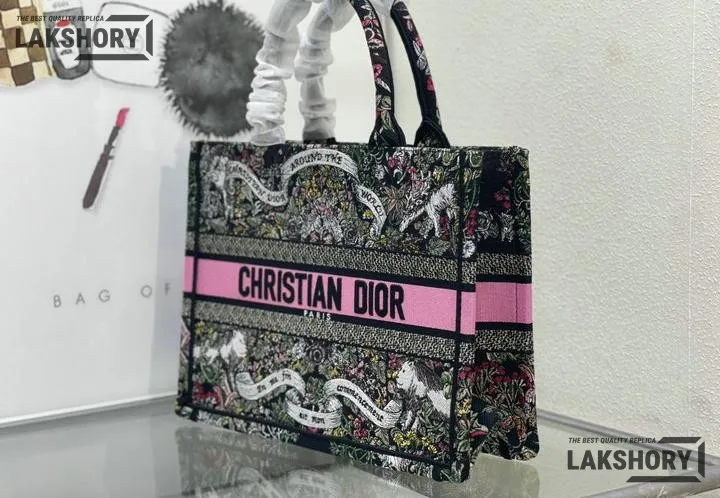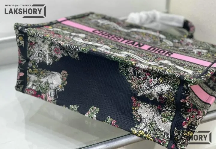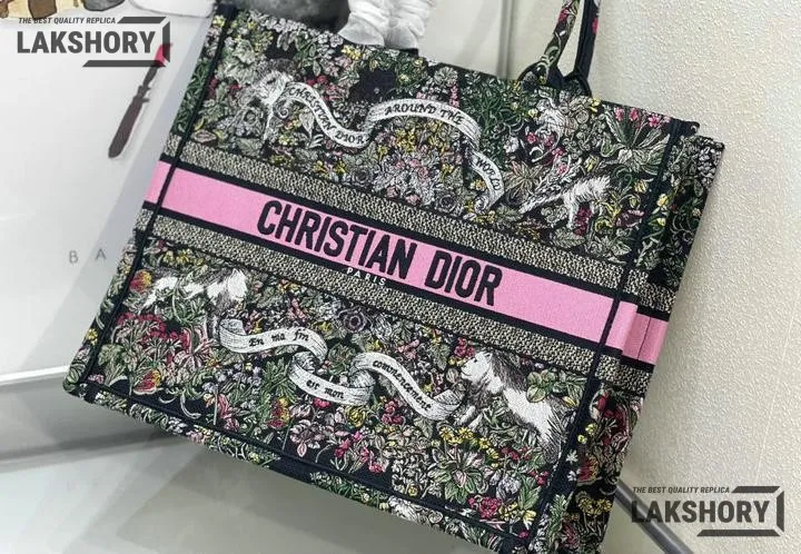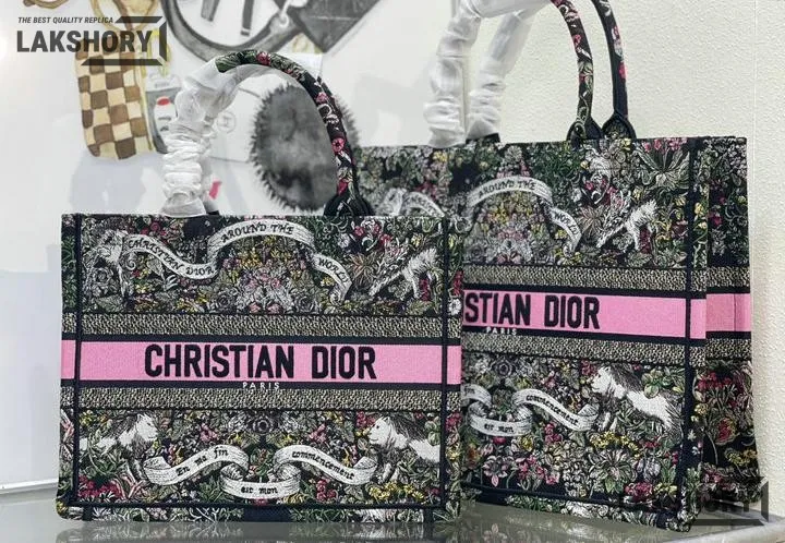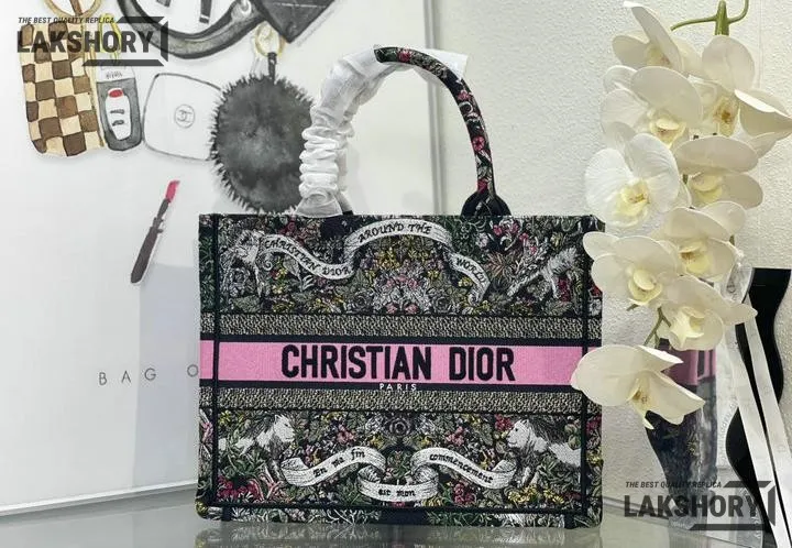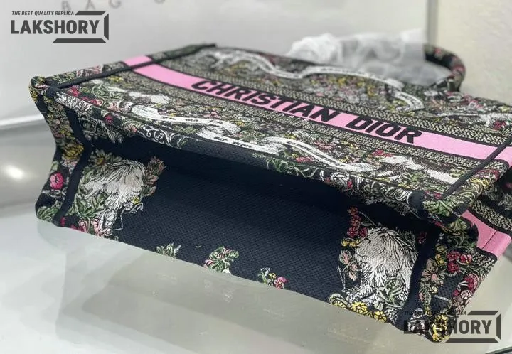 Dior 1:1 Mirror Replica Black Multicolor Around the World Motif Book Tote