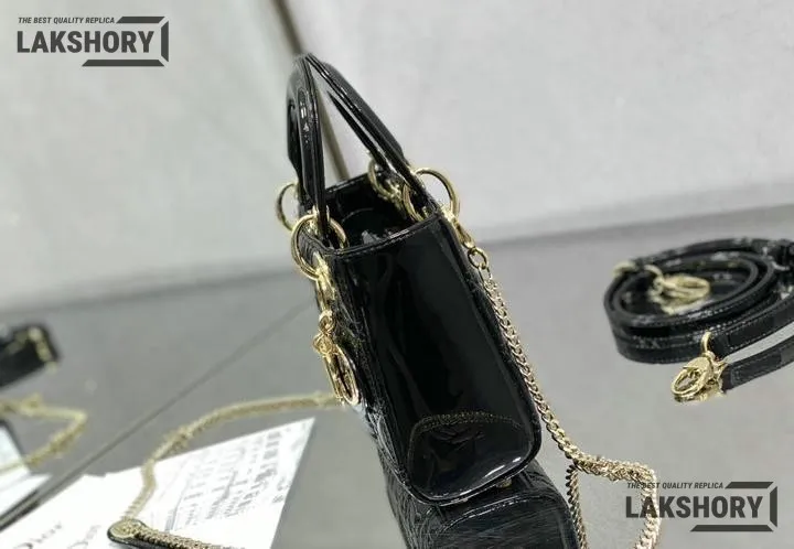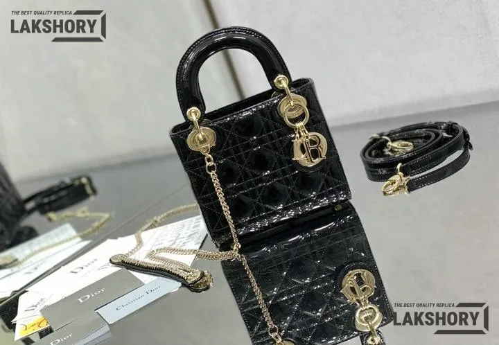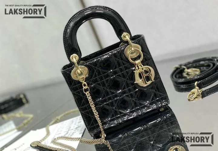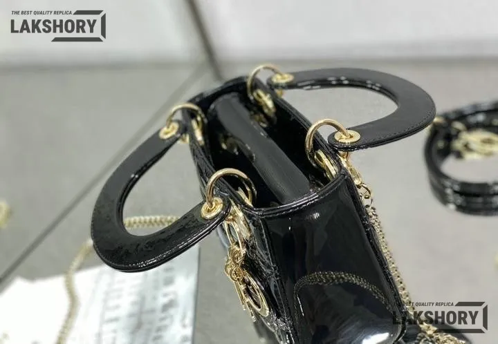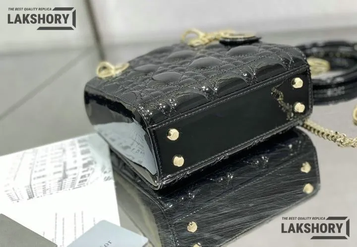 Dior 1:1 Mirror Replica Black Patent Mini Lady Dior Bag 17CM/6.7IN