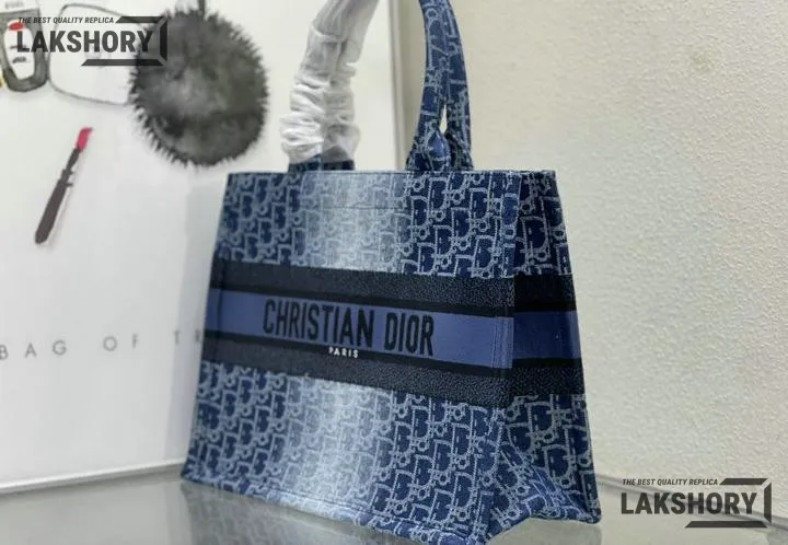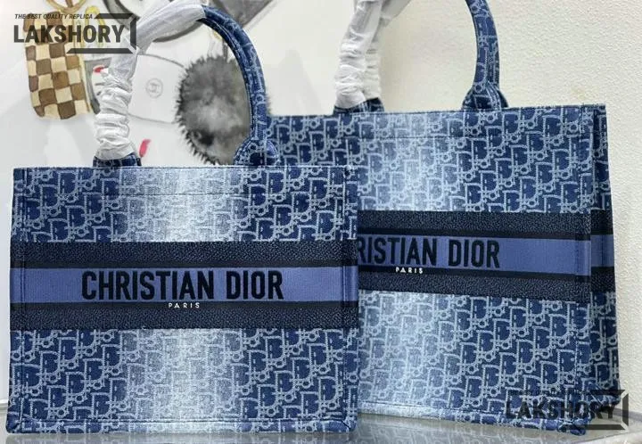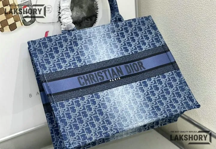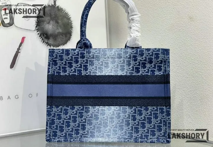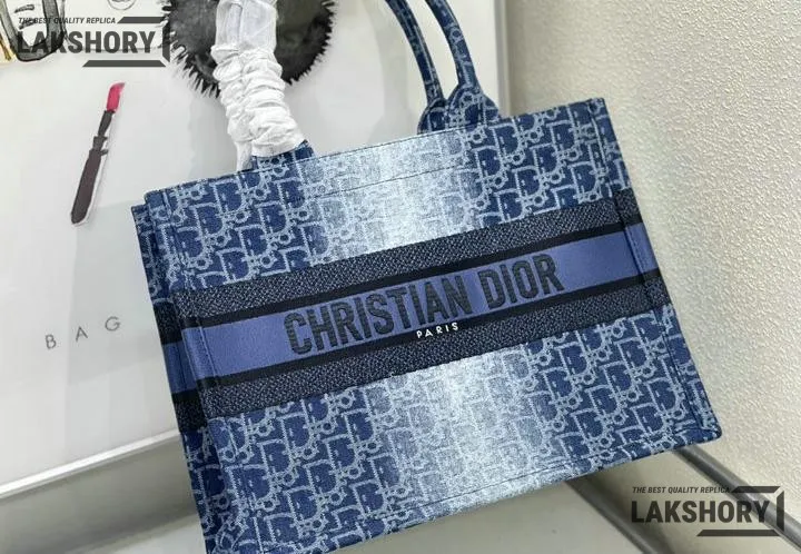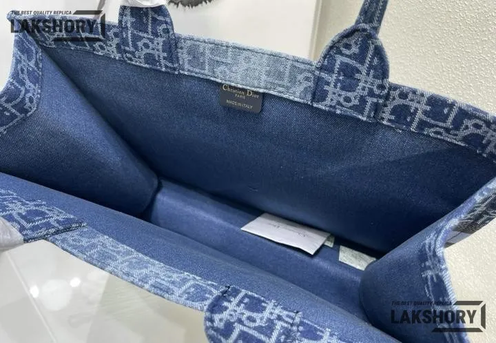 Dior 1:1 Mirror Replica Blue Denim Book Tote Oblique Jacquard