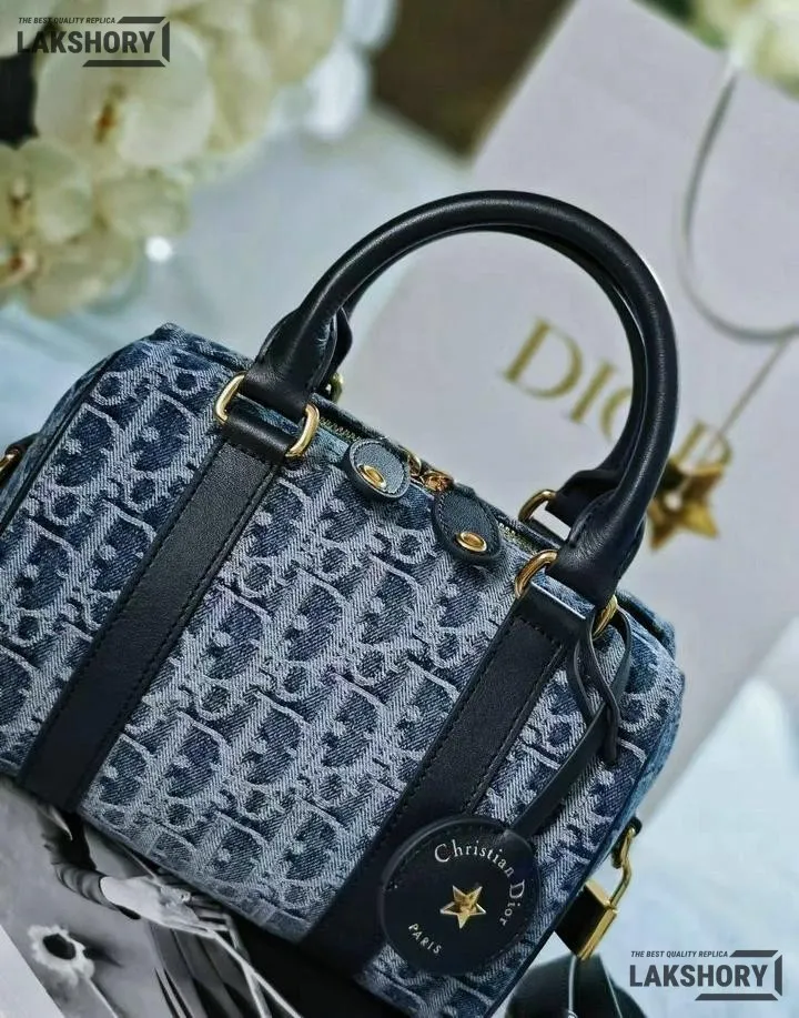 Dior 1:1 Mirror Replica Blue Denim Groove 20 Bag 20CM/7.9IN