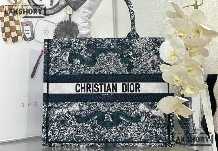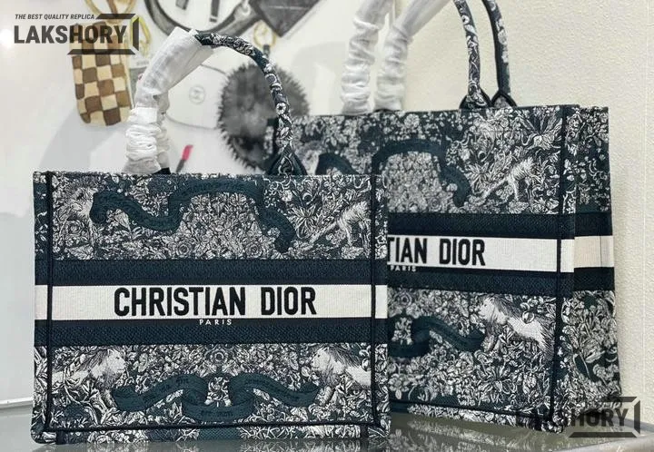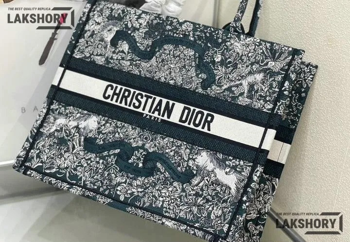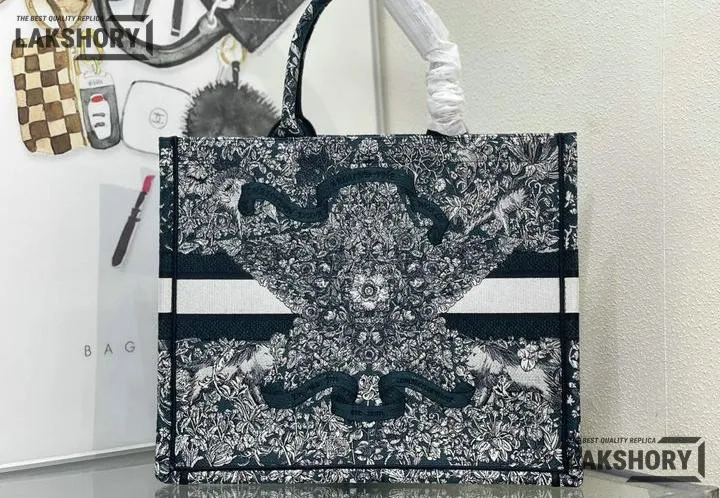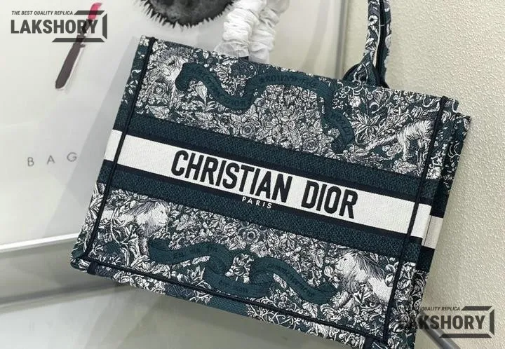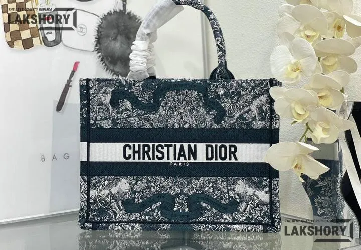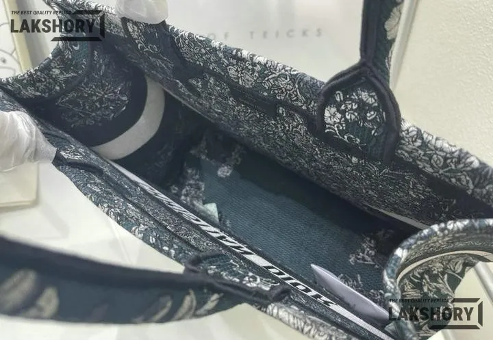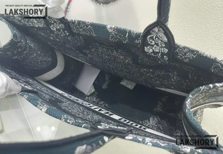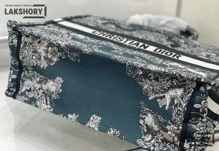 Dior 1:1 Mirror Replica Blue Embroidered Around The World Book Tote