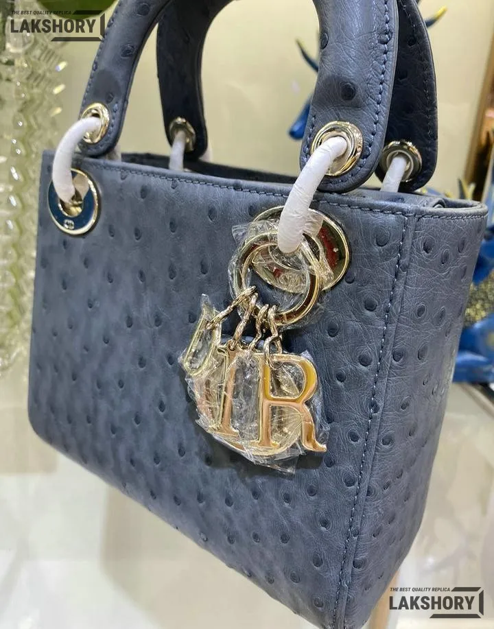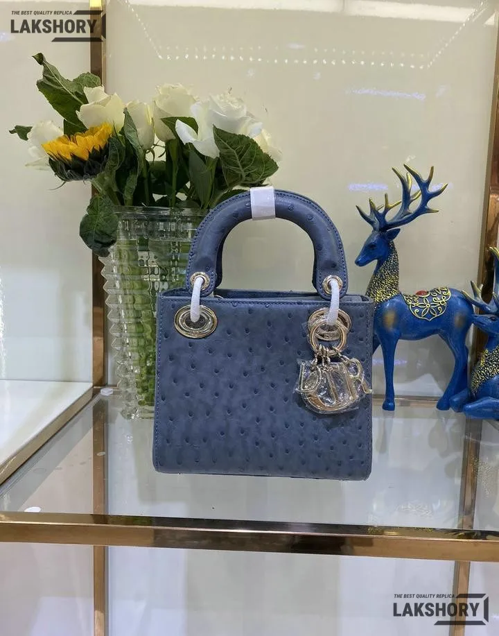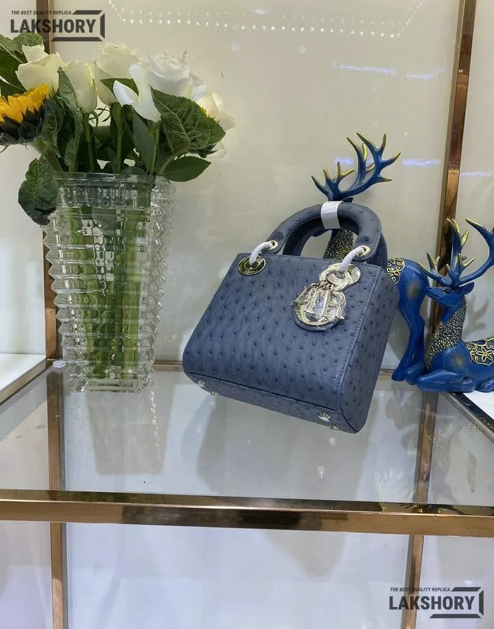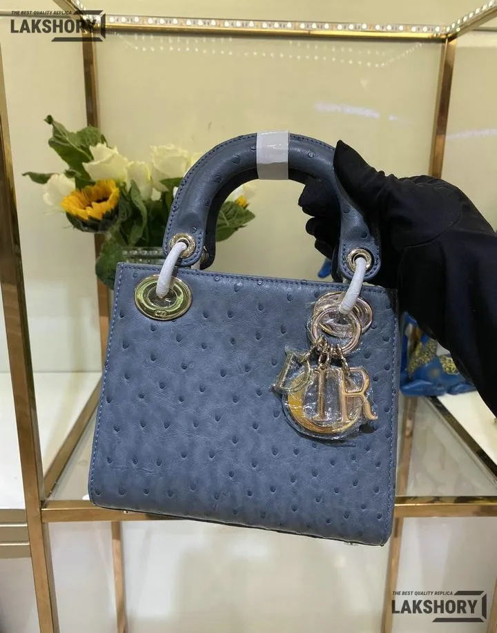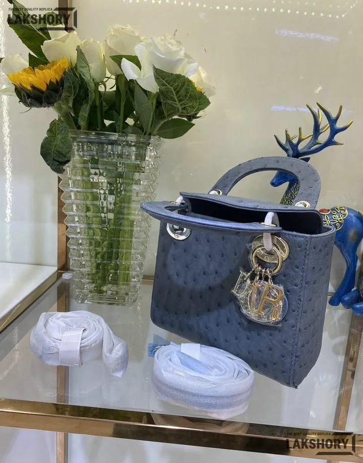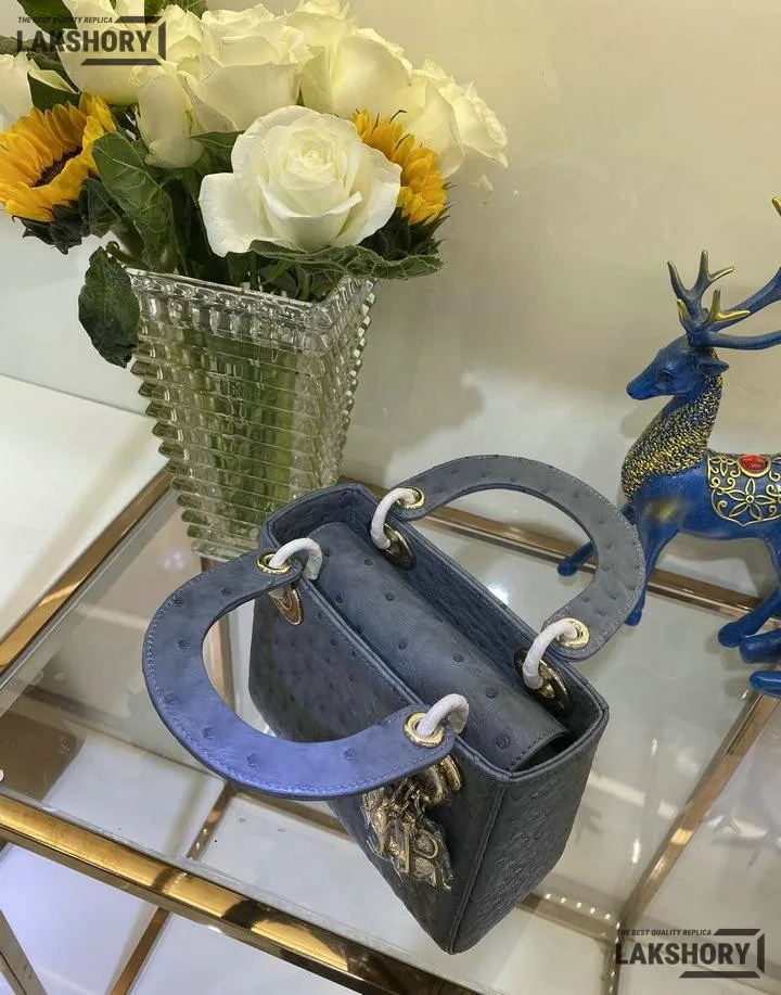 Dior 1:1 Mirror Replica Blue Ostrich Mini Lady Dior 17CM/6.7IN