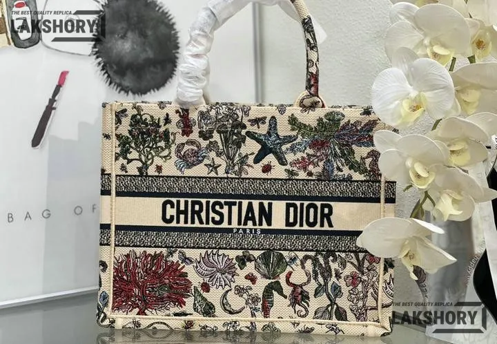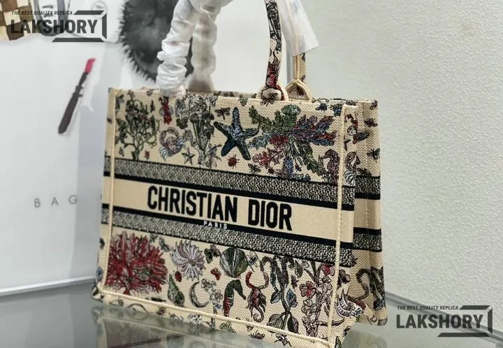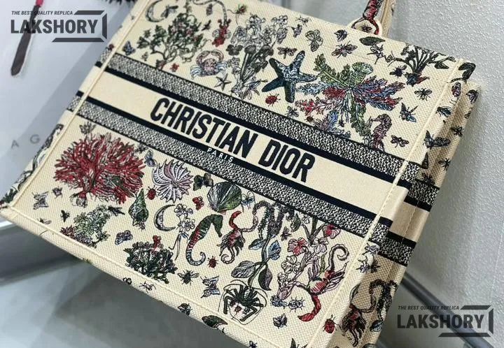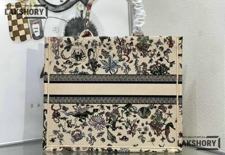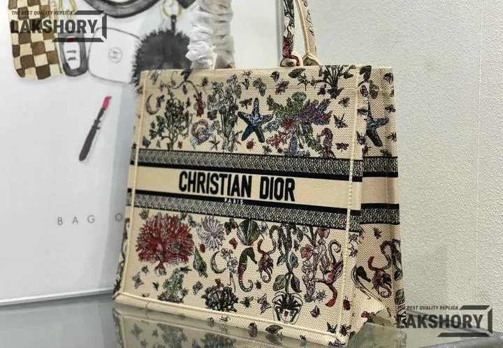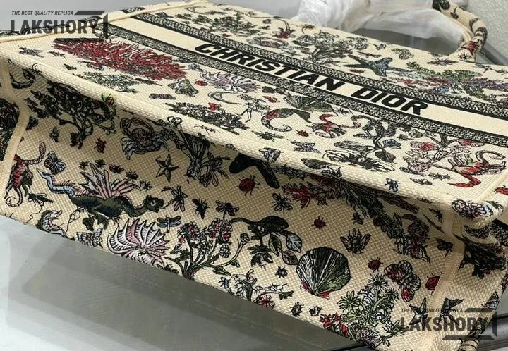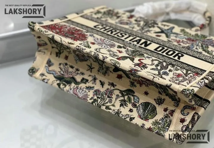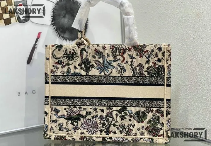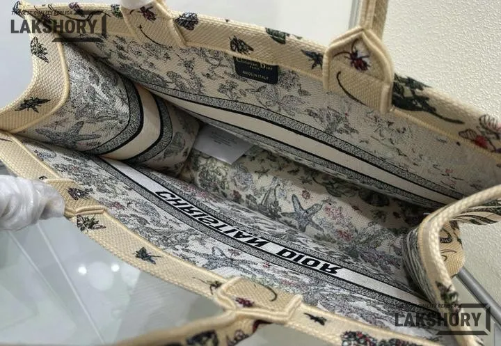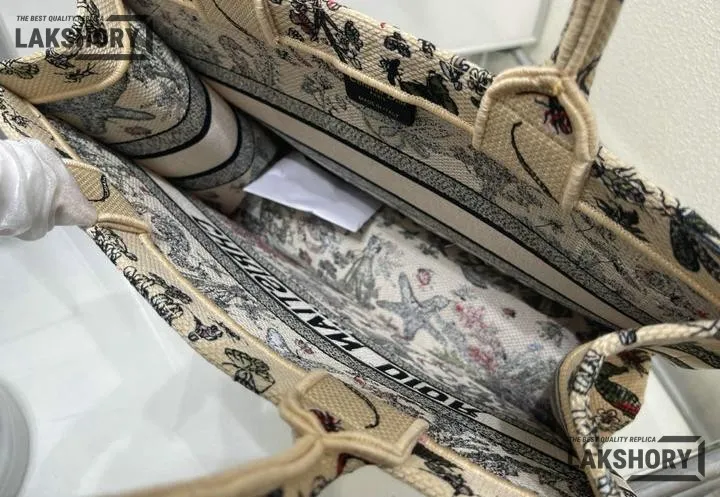 Dior 1:1 Mirror Replica Book Tote Beige Raffia Cabinet de Curiosités Motif