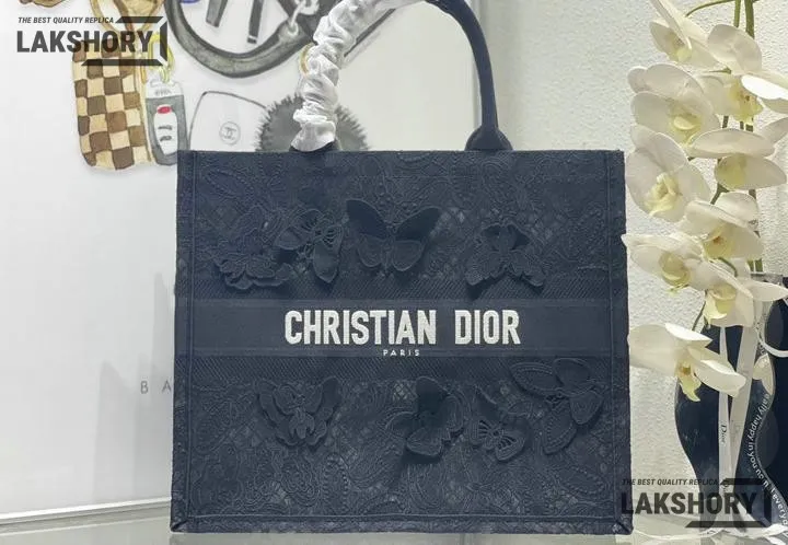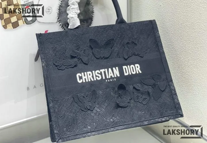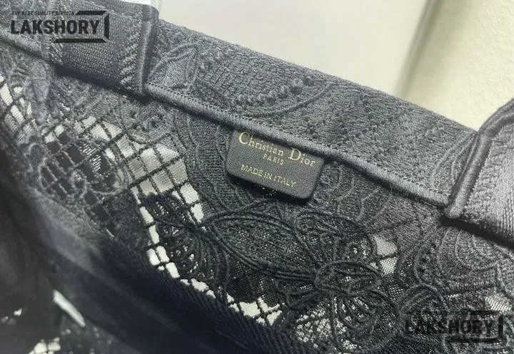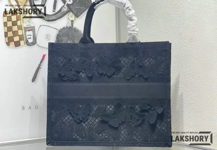Dior 1:1 Mirror Replica Book Tote Black D-Lace Butterfly Motif