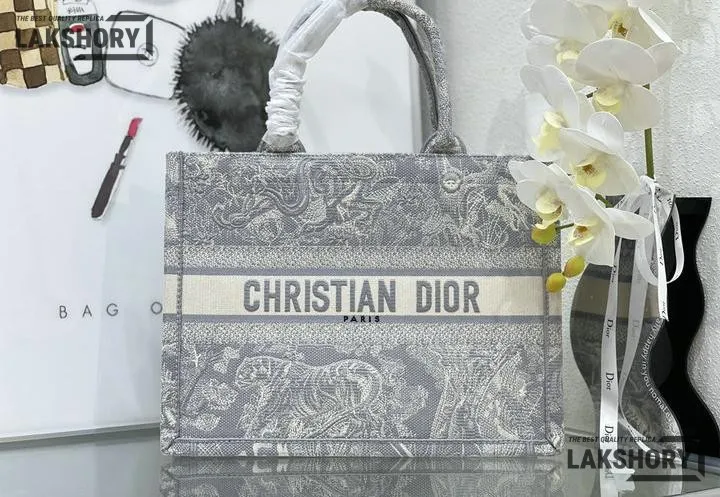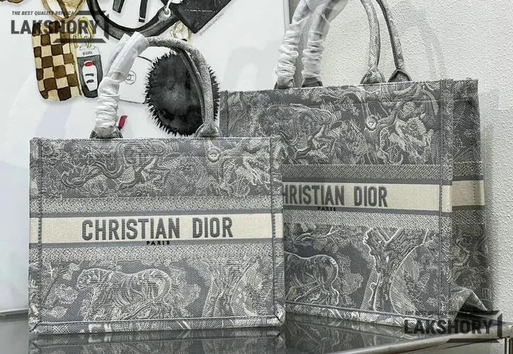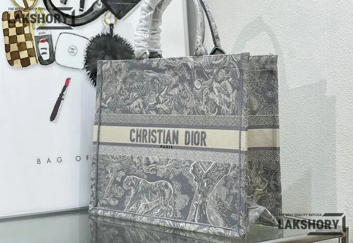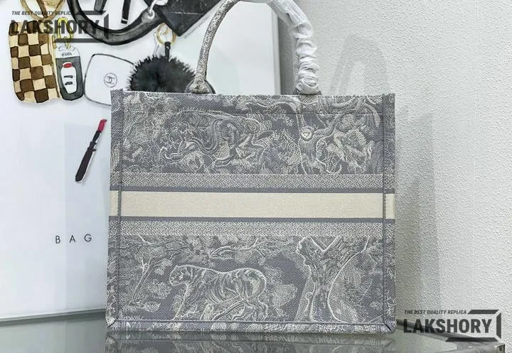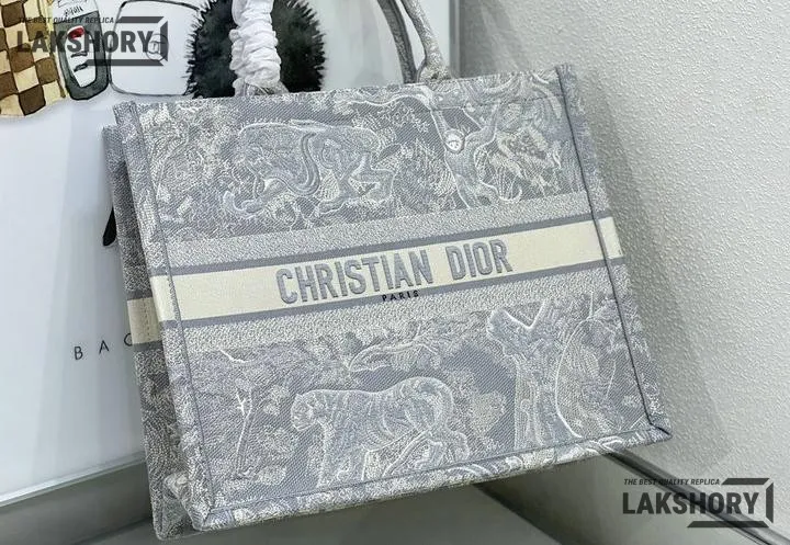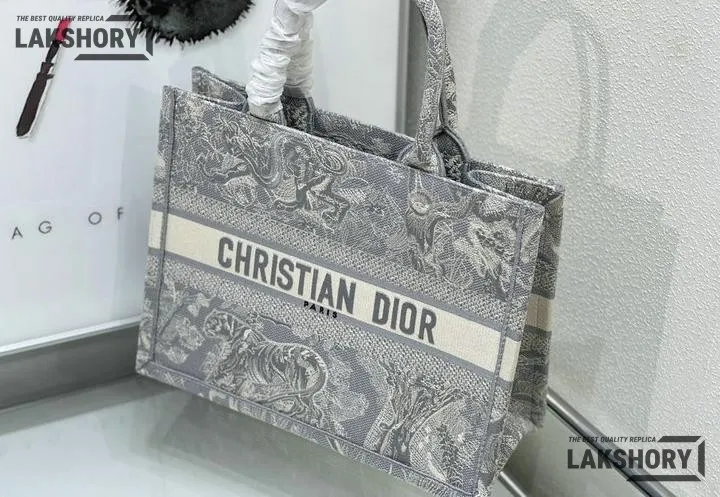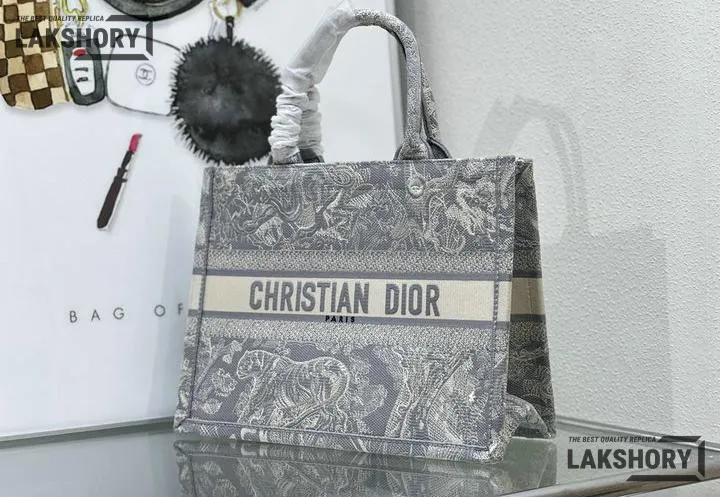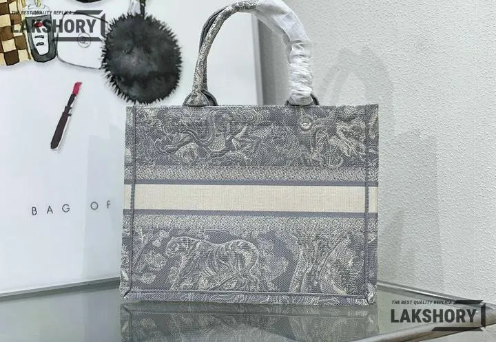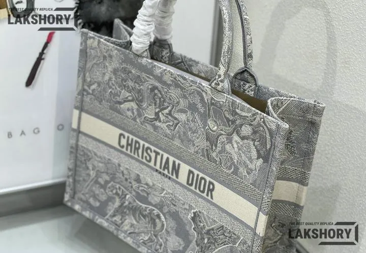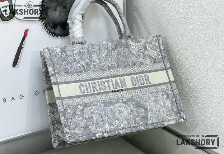 Dior 1:1 Mirror Replica Book Tote Gray & Ecru Toile de Jouy