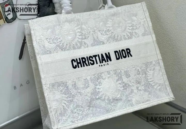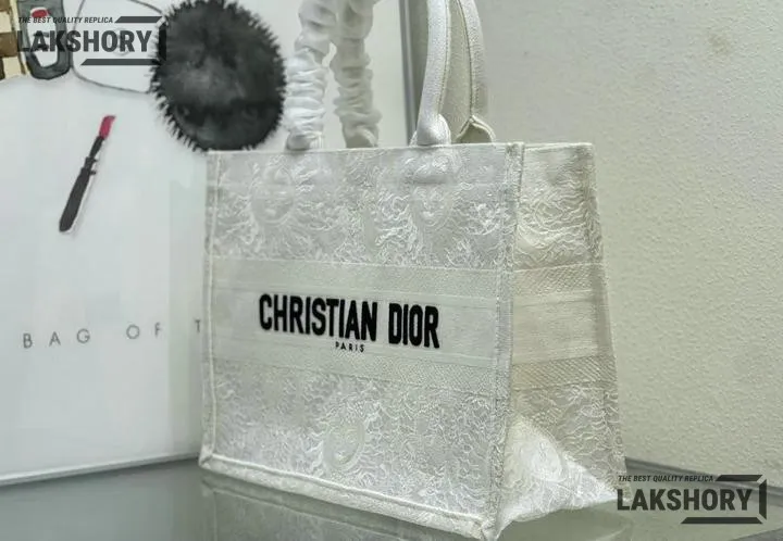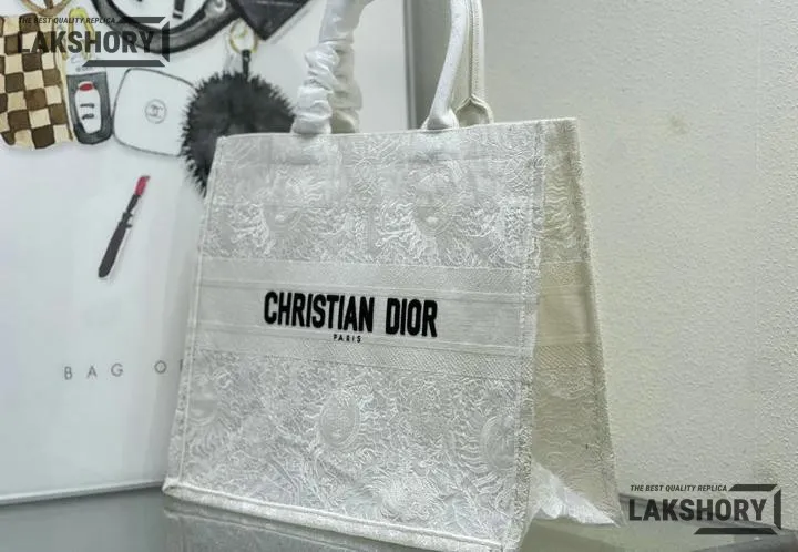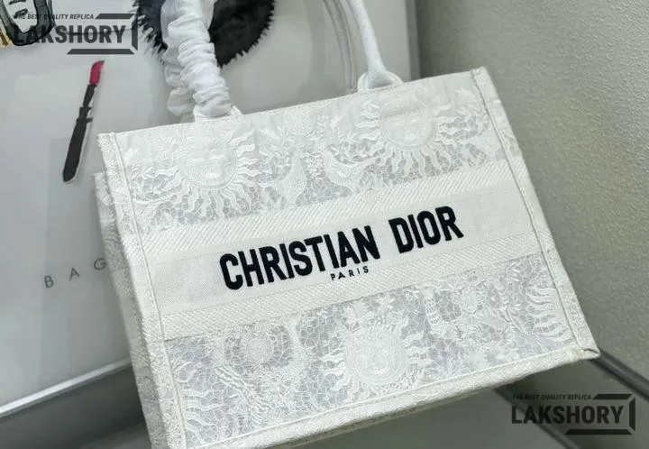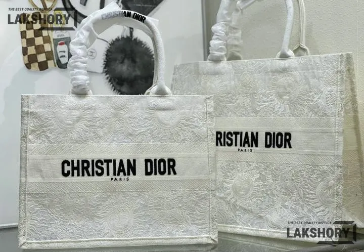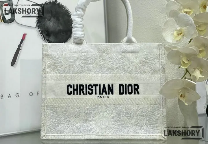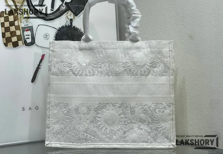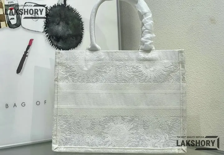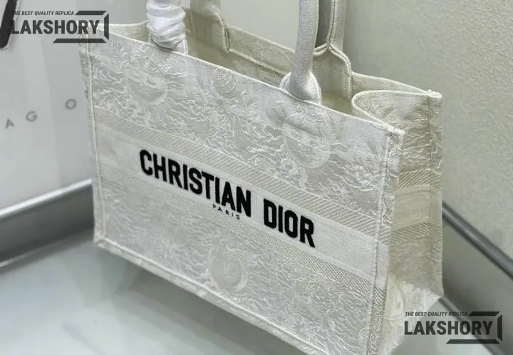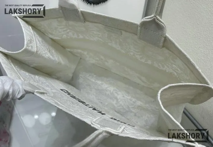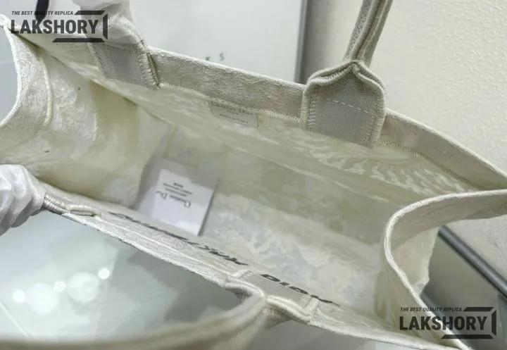Dior 1:1 Mirror Replica Book Tote Latte Cabinet de la Mer White