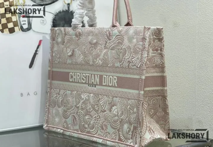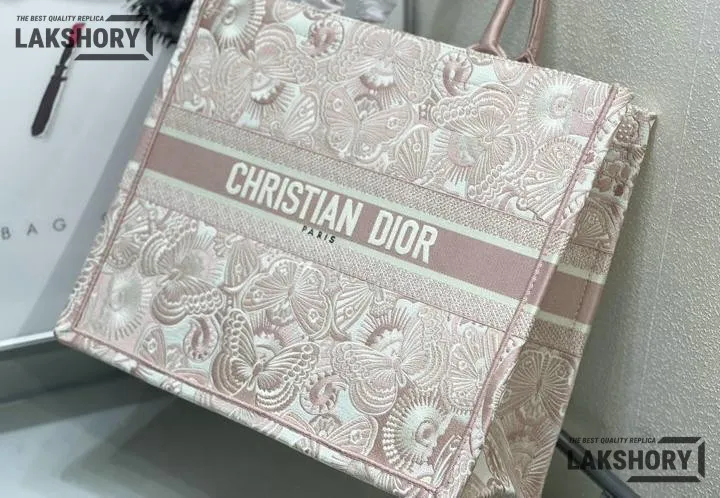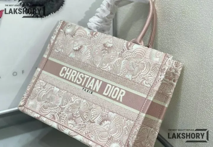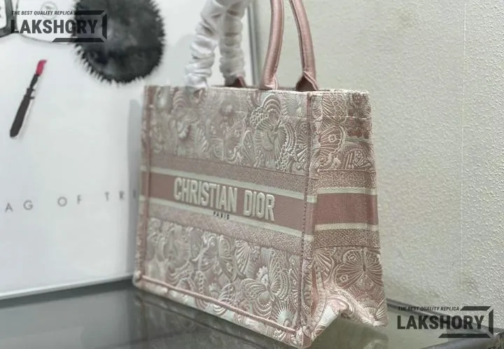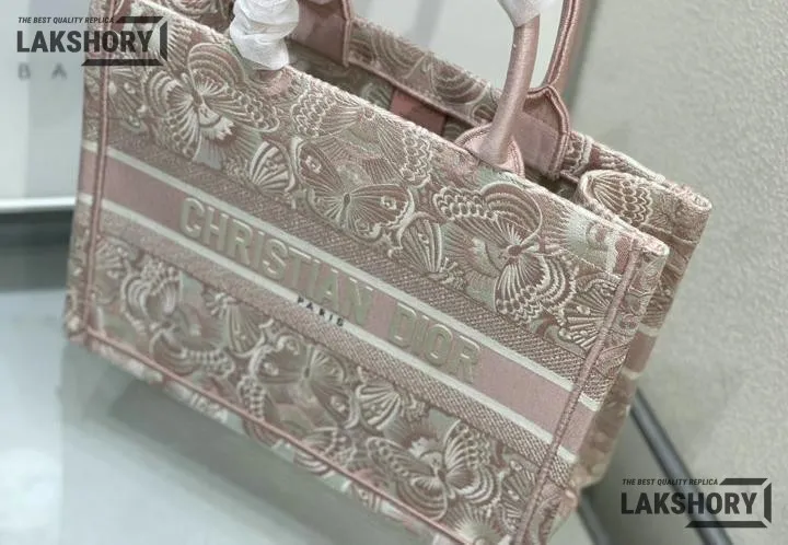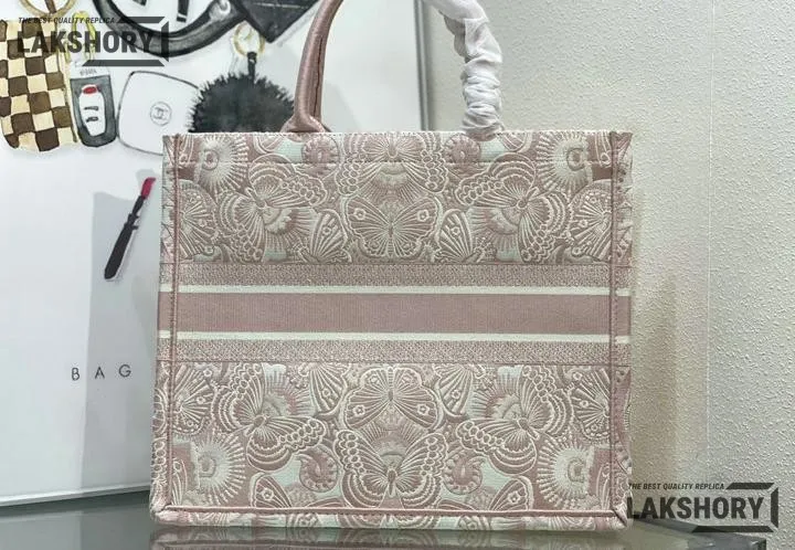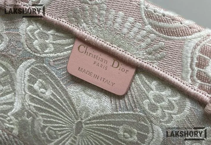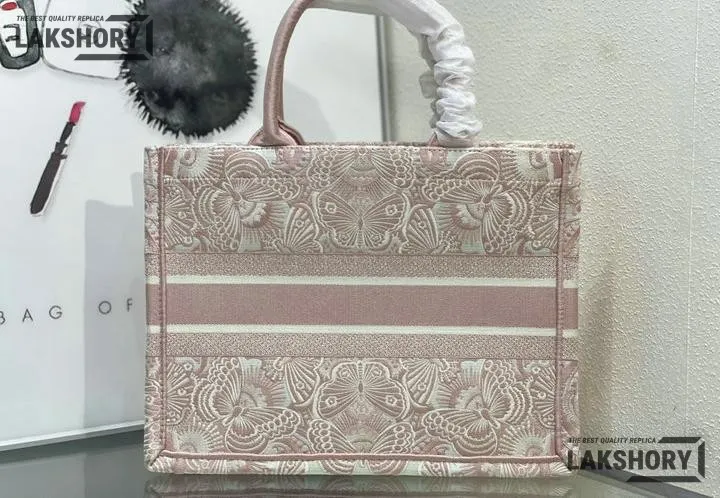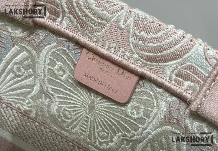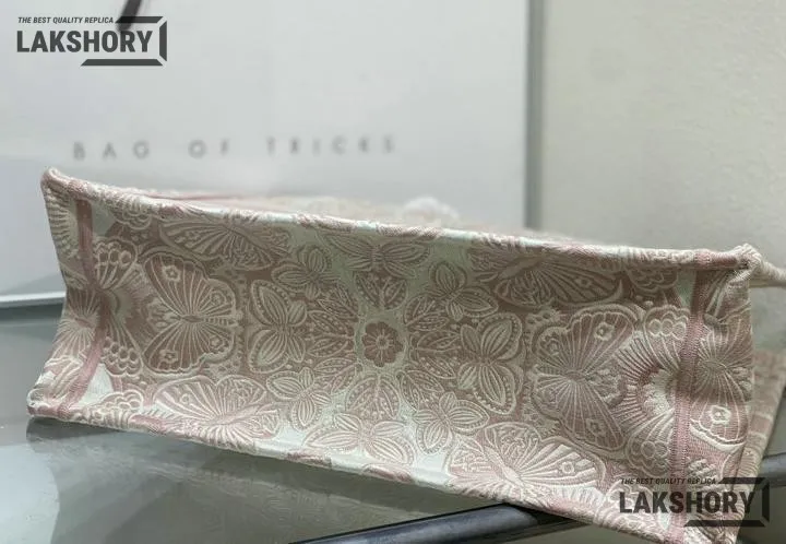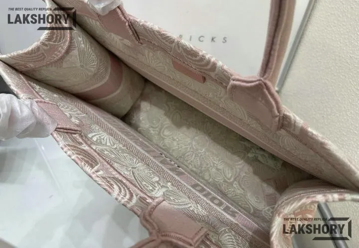 Dior 1:1 Mirror Replica Book Tote Peach Pink & White D-Butterfly Paisley
