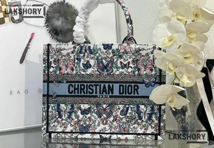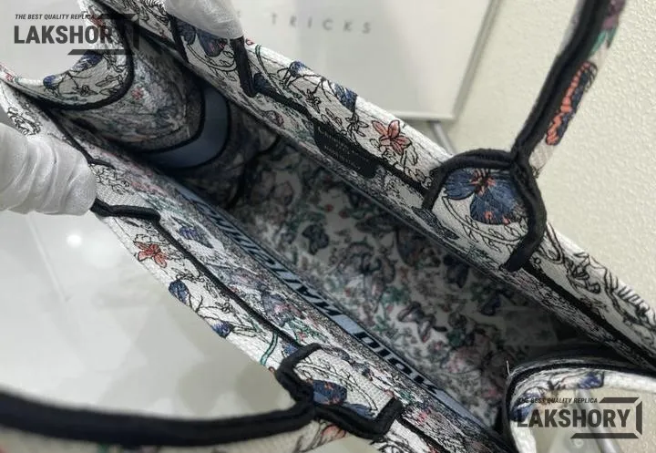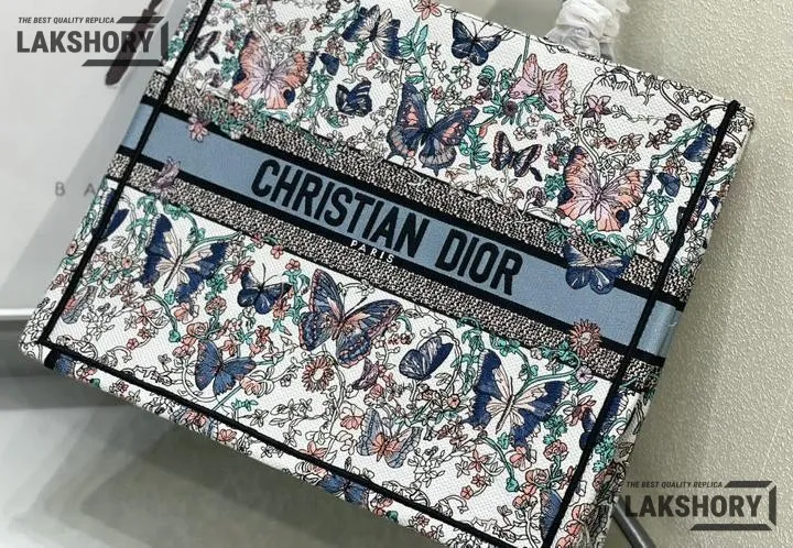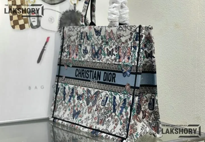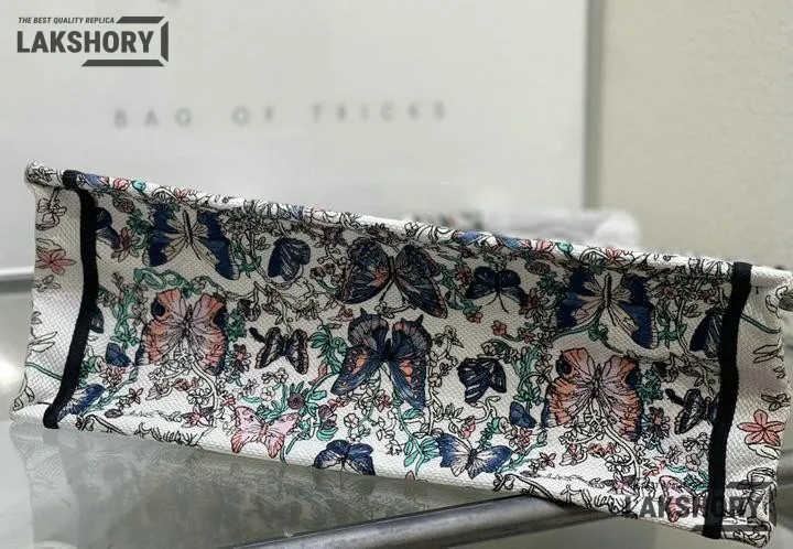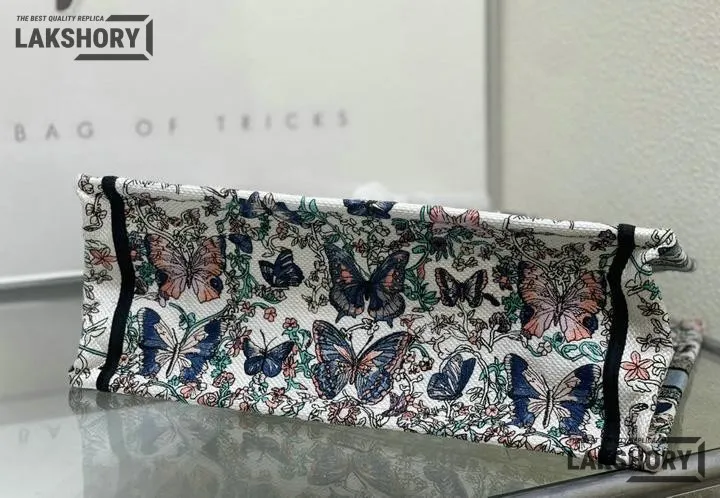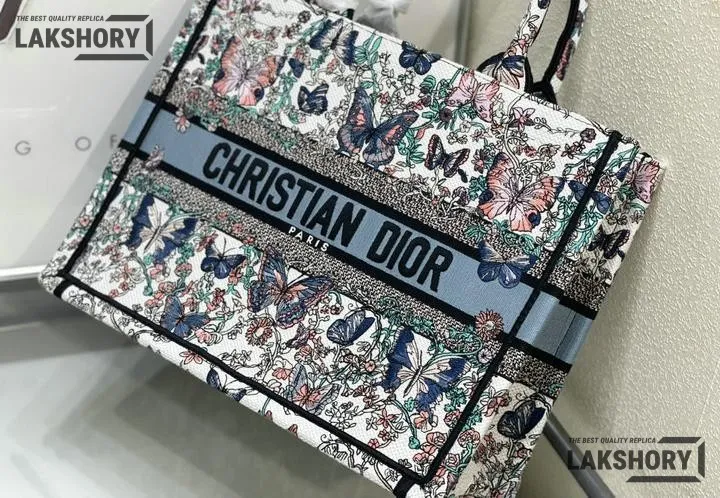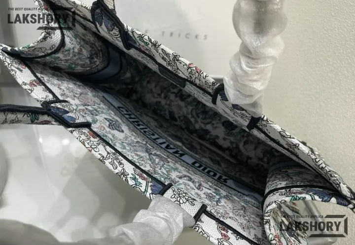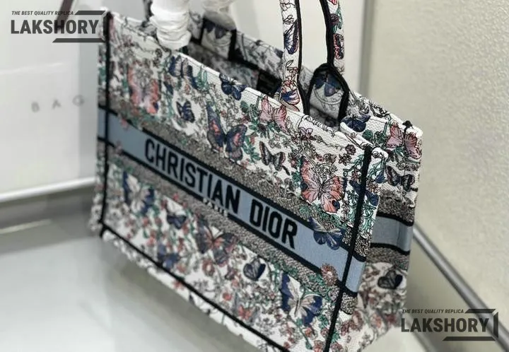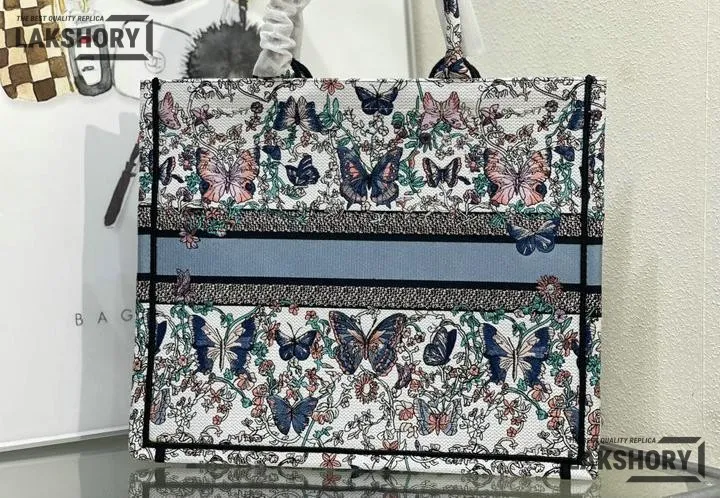 Dior 1:1 Mirror Replica Book Tote White & Blue Toile de Jouy Papillon