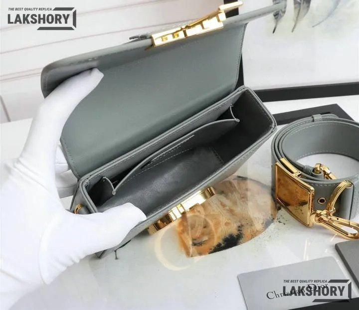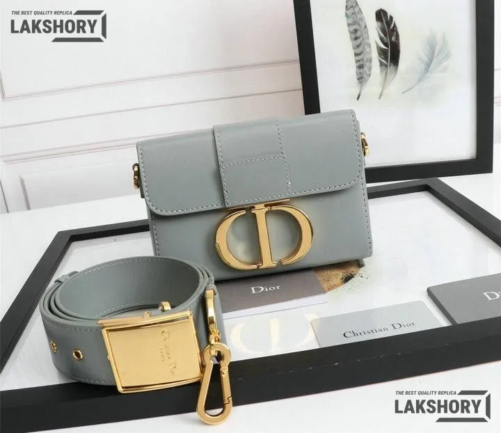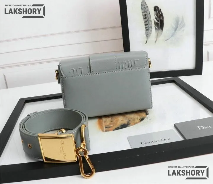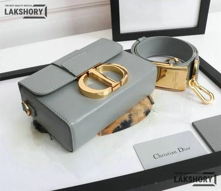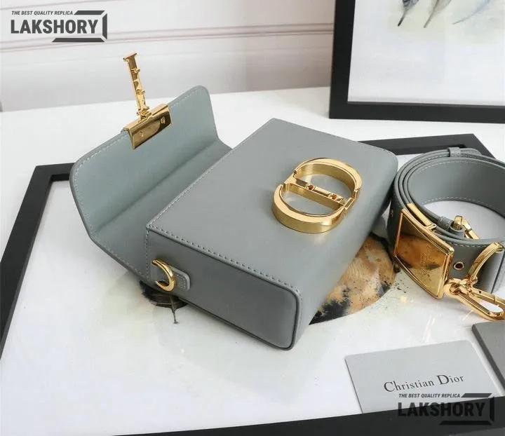 Dior 1:1 Mirror Replica Box 30 Montaigne Gray Calfski Bag 17.5CM/6.9IN
