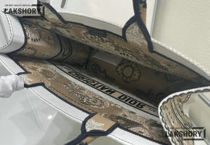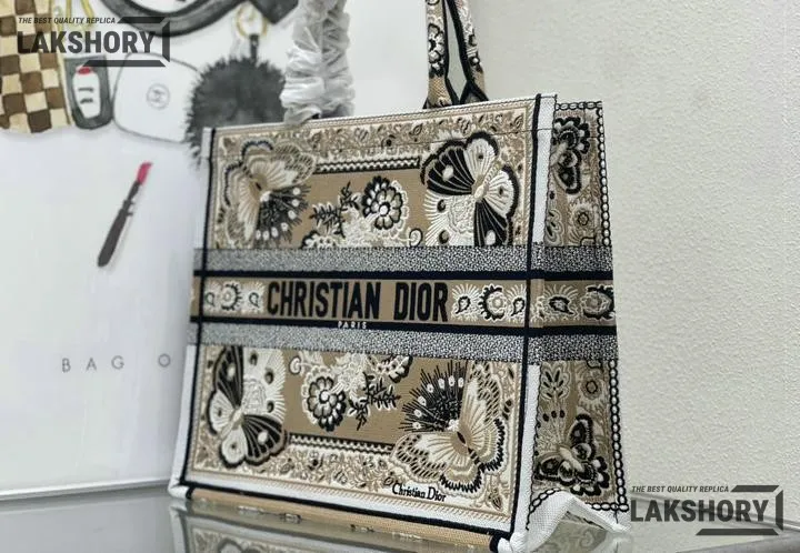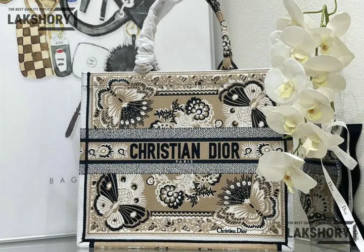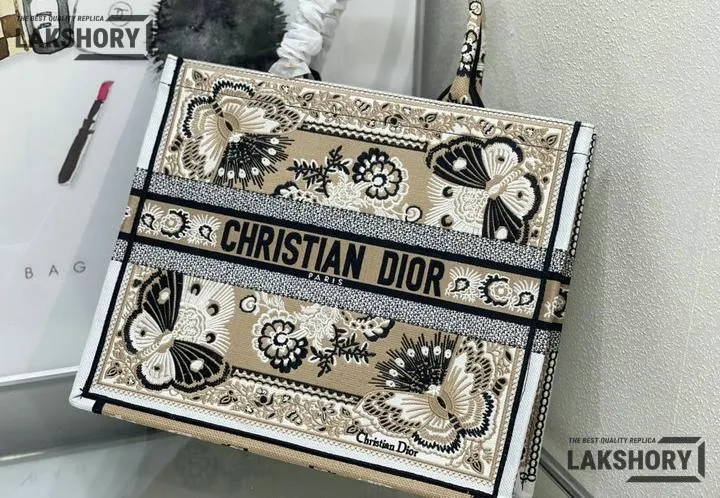 Dior 1:1 Mirror Replica Butterfly Bandana Book Tote Beige Multicolor