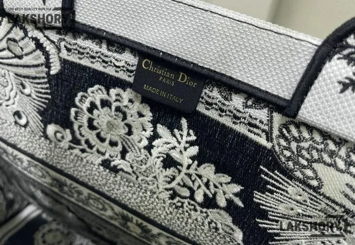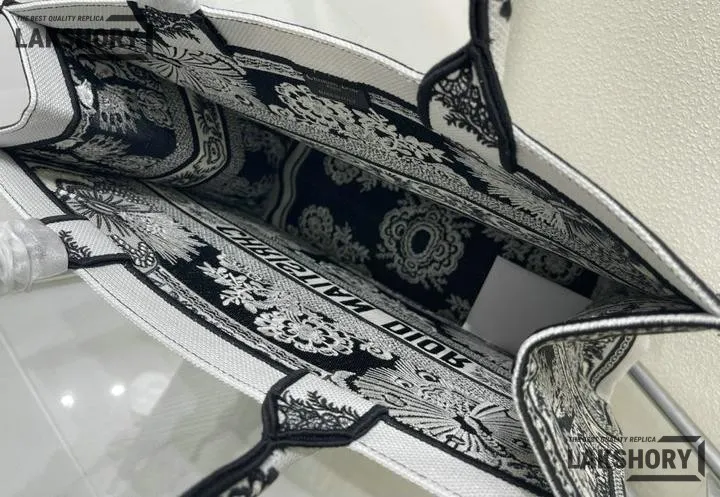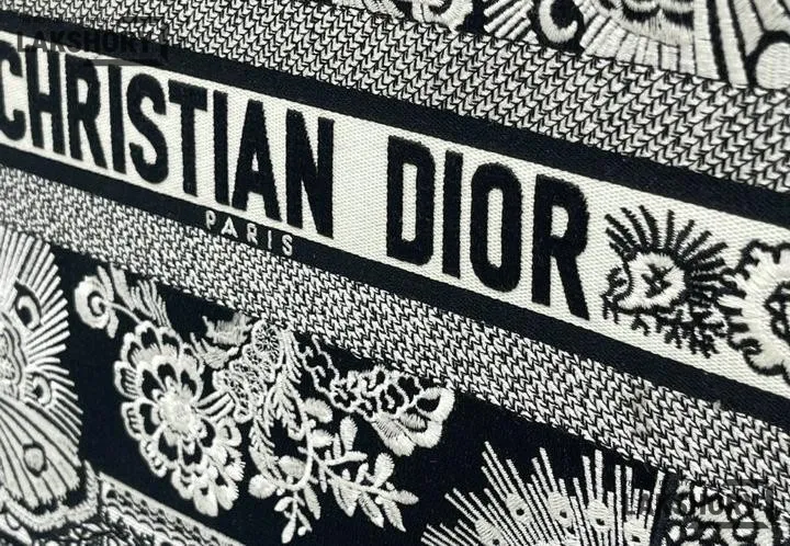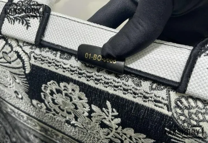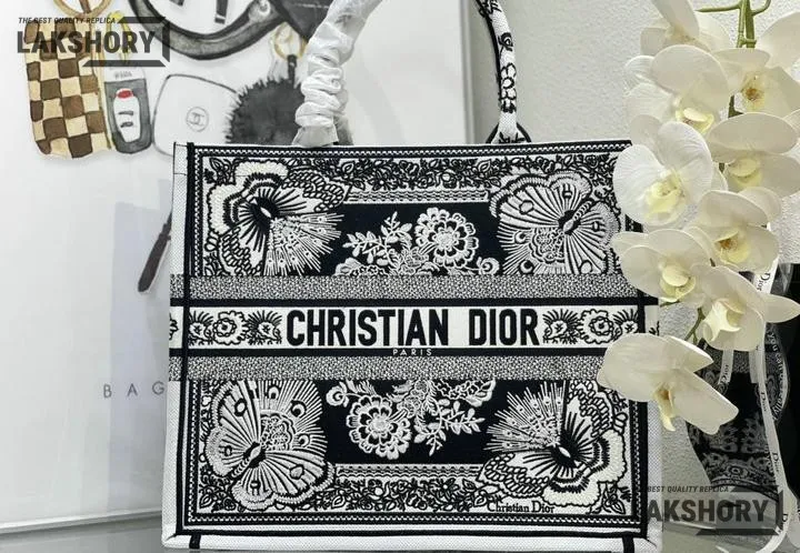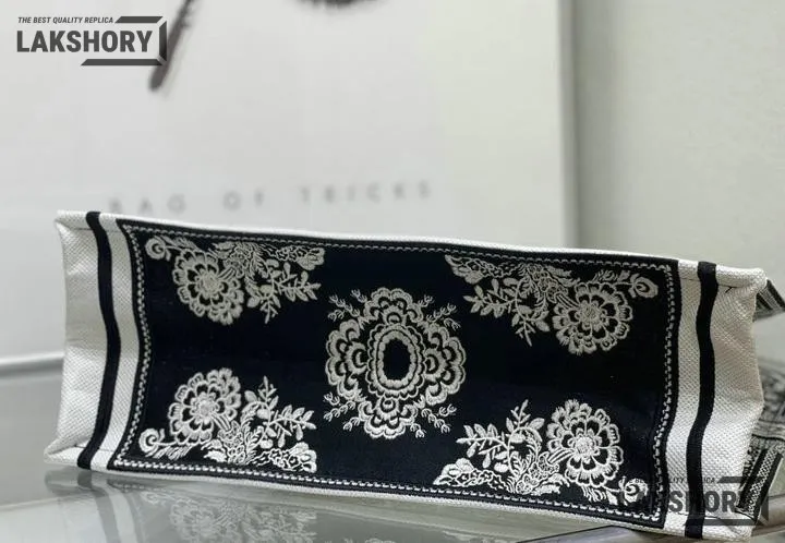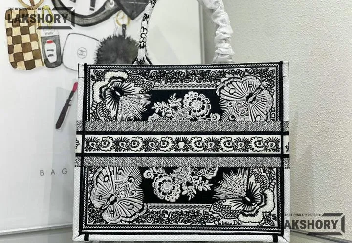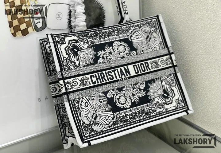 Dior 1:1 Mirror Replica Butterfly Bandana Embroidered Book Tote Black/White