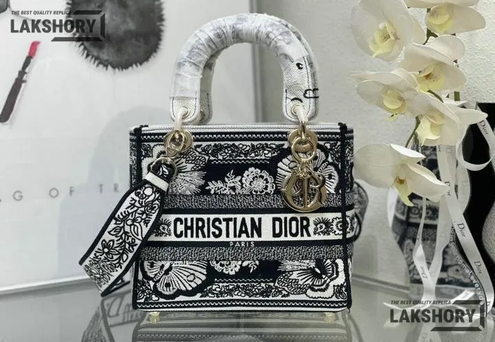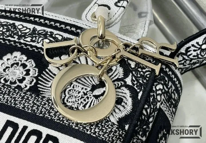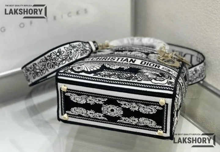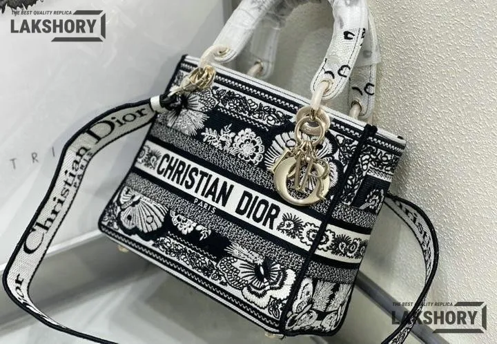 Dior 1:1 Mirror Replica Butterfly Bandana Lady D-Lite Black White 24CM/9.4IN
