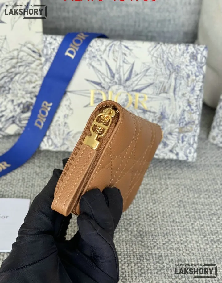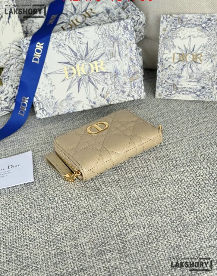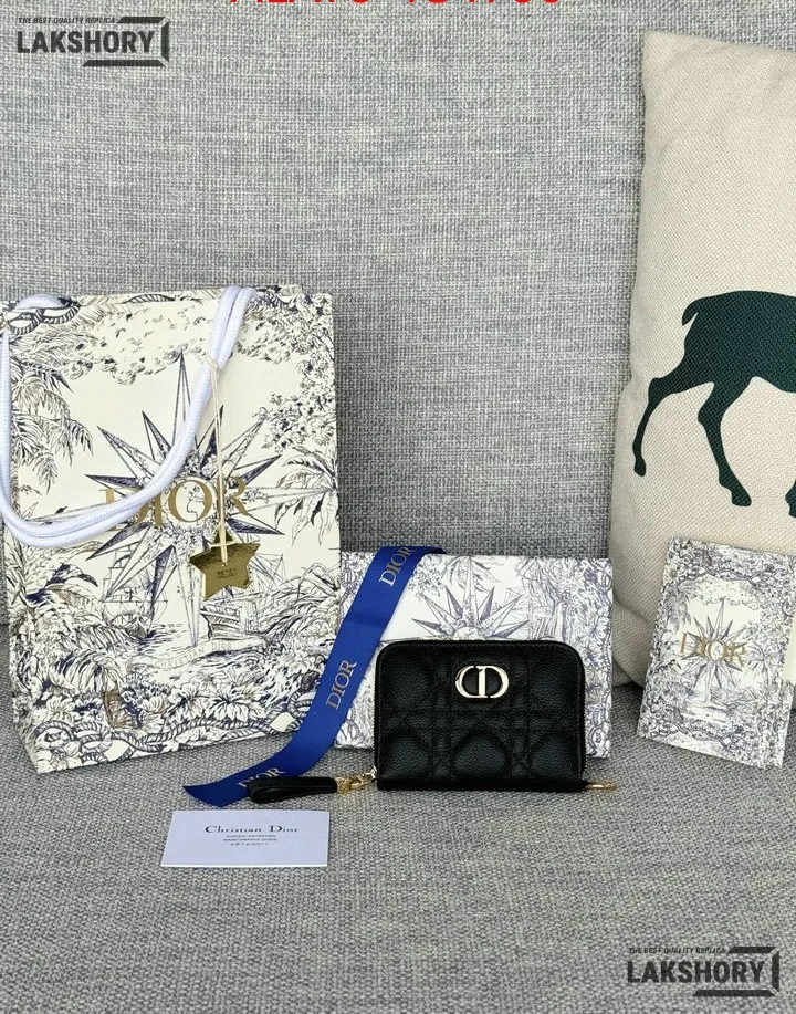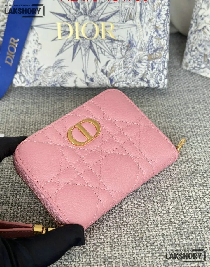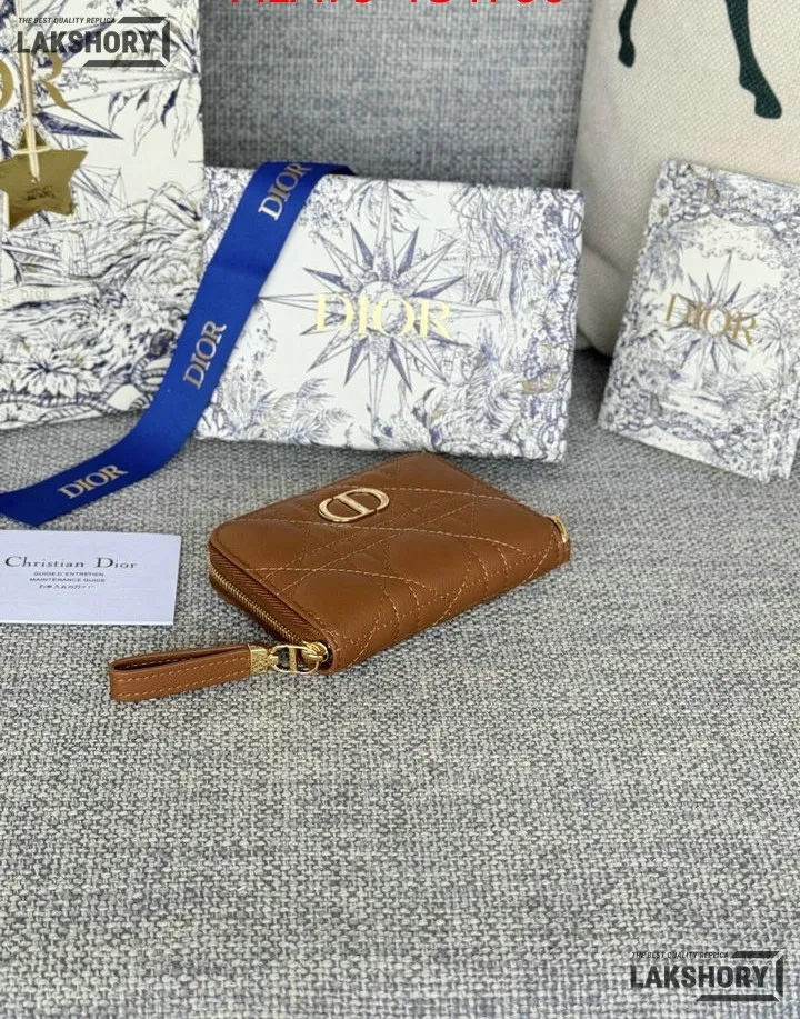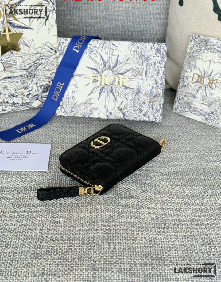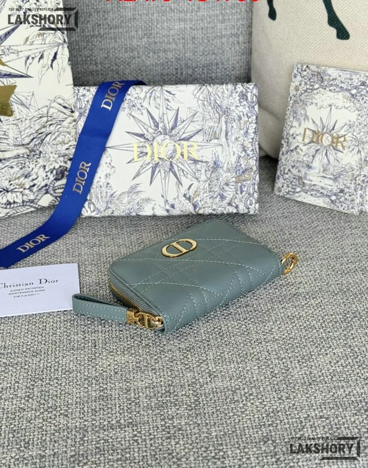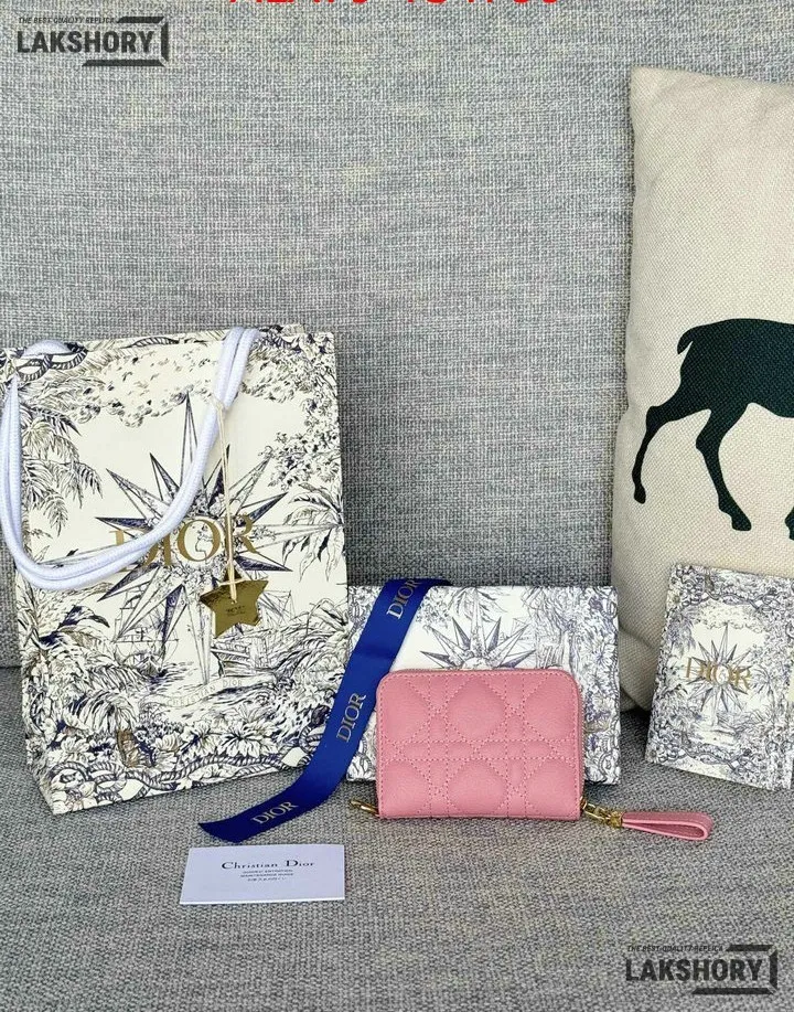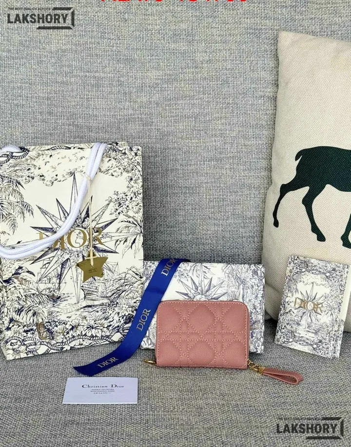 Dior 1:1 Mirror Replica Calfskin Supple Cannage Caro Compact Wallet 11CM/4.3IN