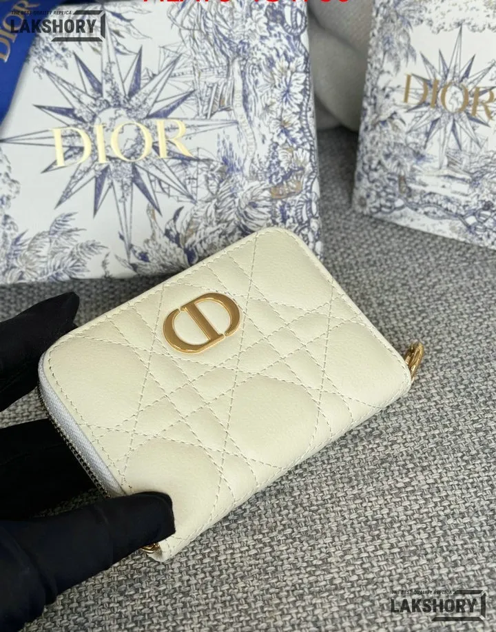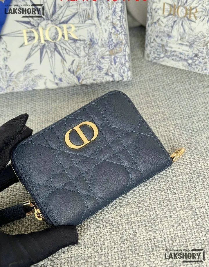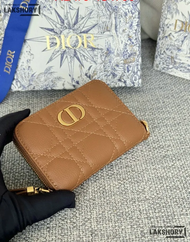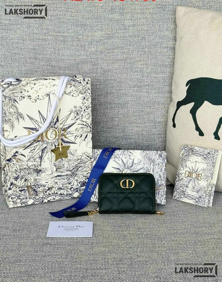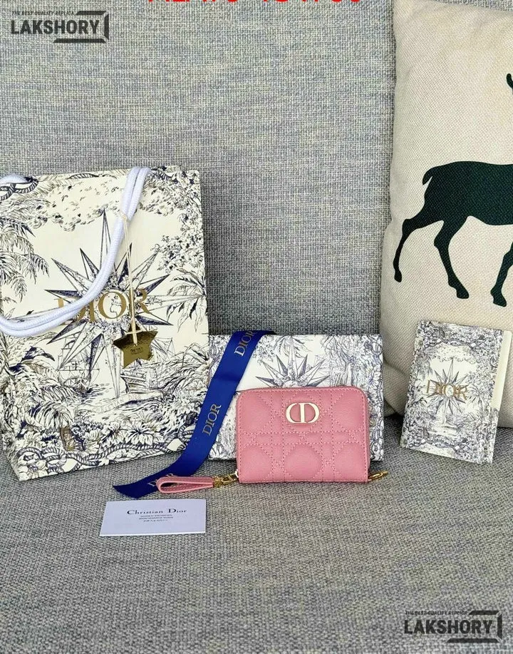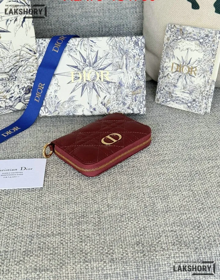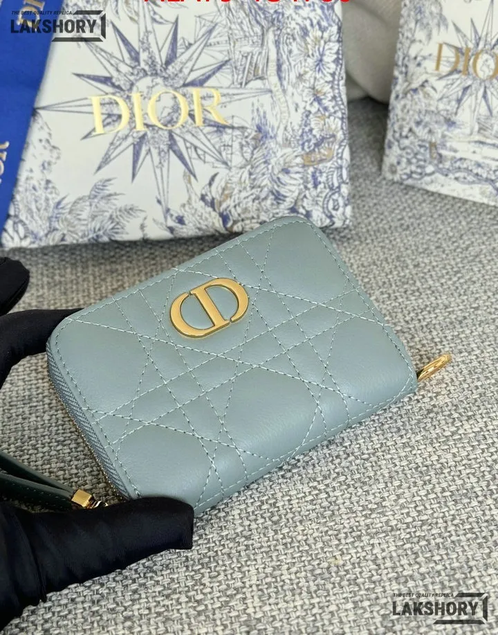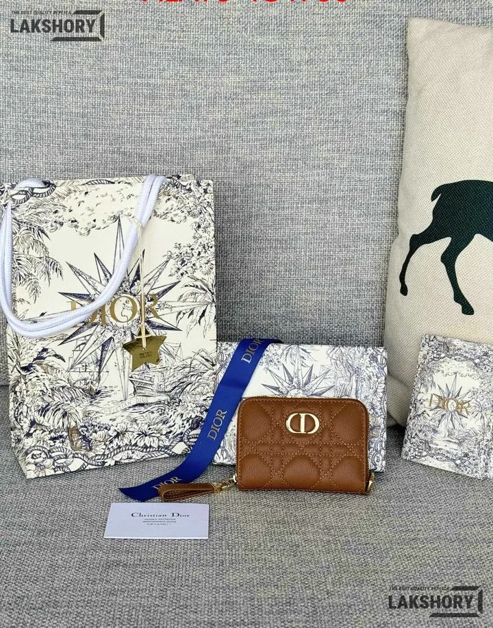Dior 1:1 Mirror Replica Calfskin Supple Cannage Caro Compact Wallet 11CM/4.3IN