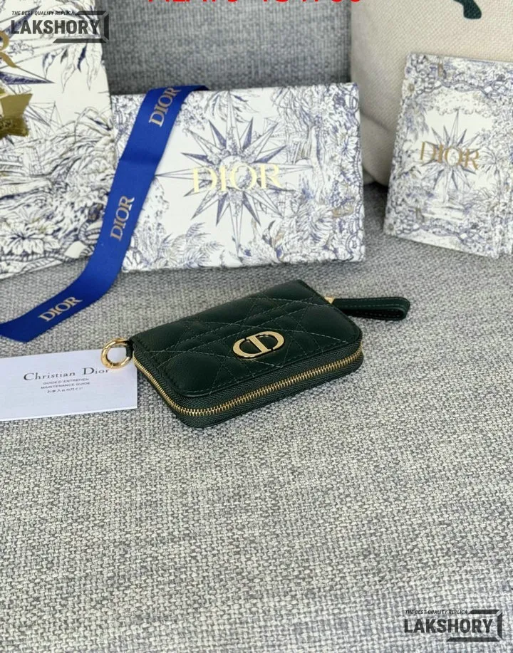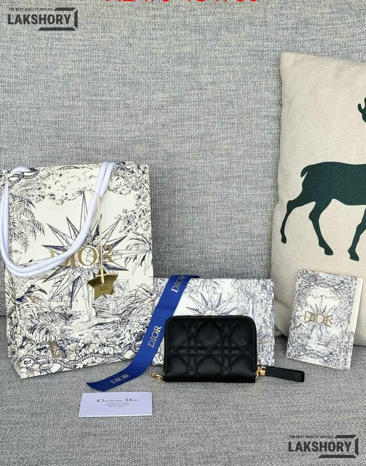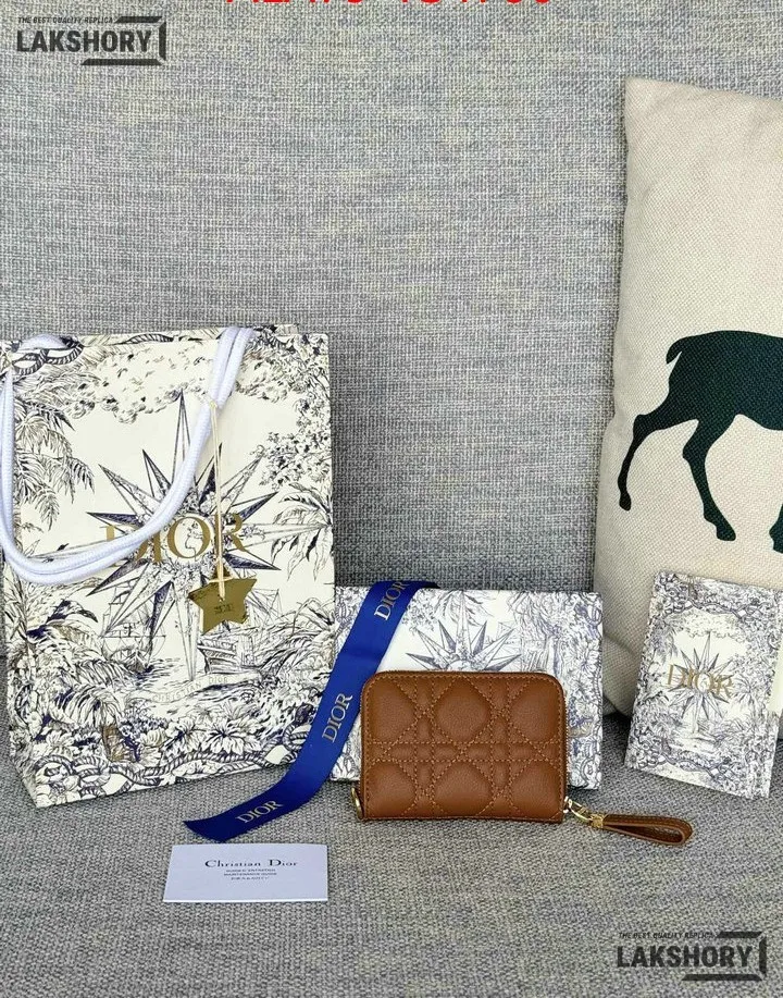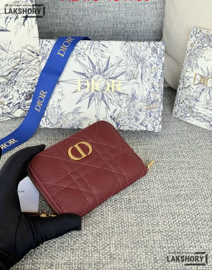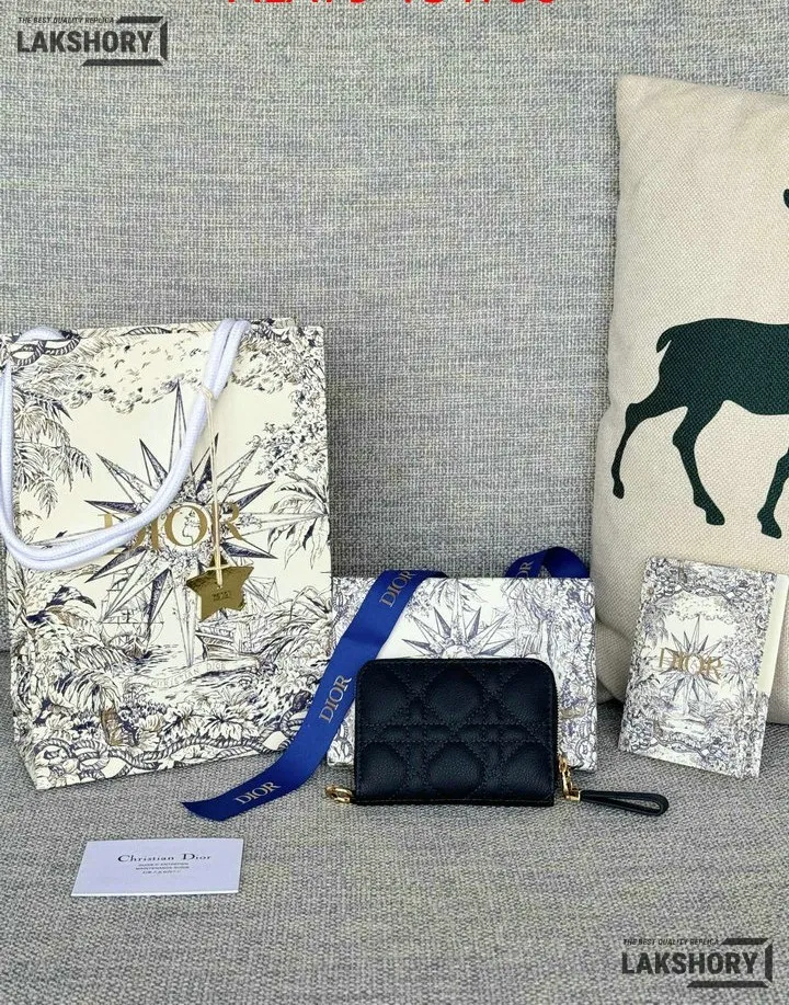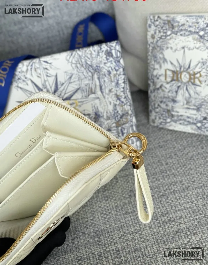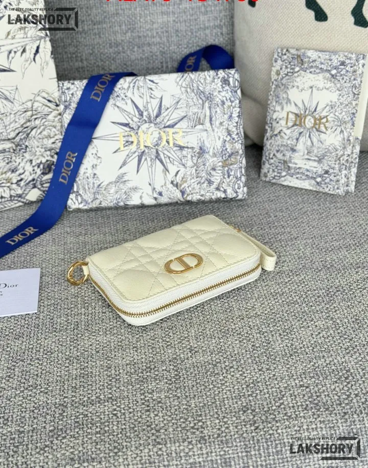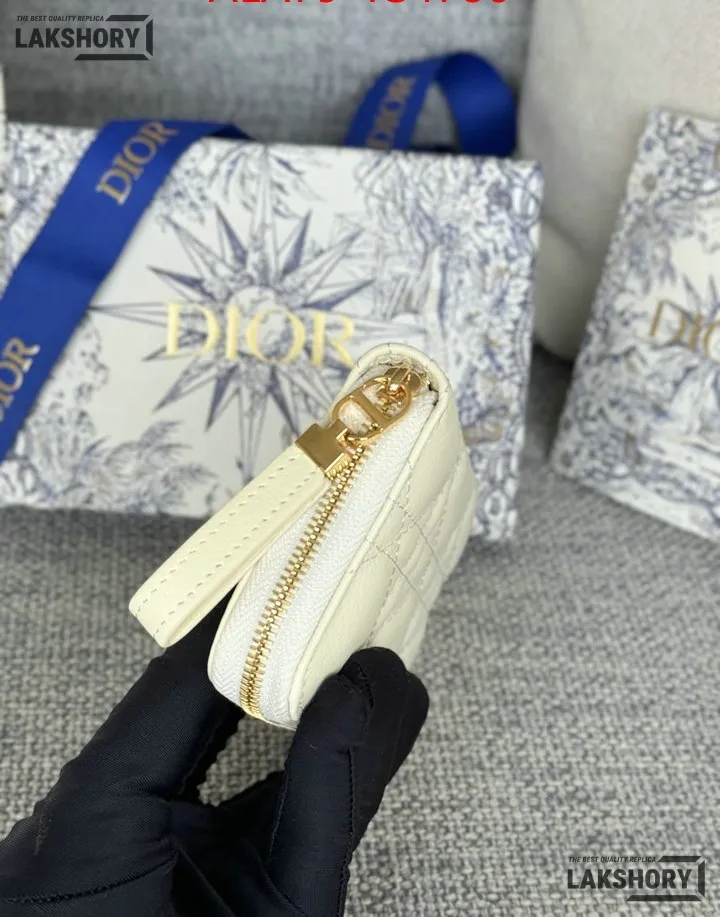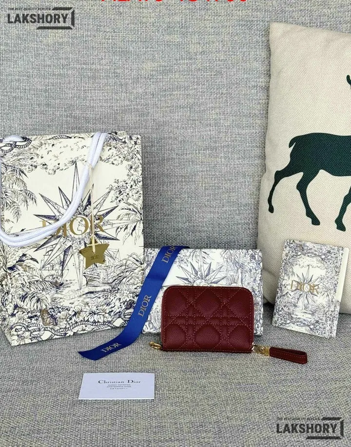 Dior 1:1 Mirror Replica Calfskin Supple Cannage Caro Compact Wallet 11CM/4.3IN
