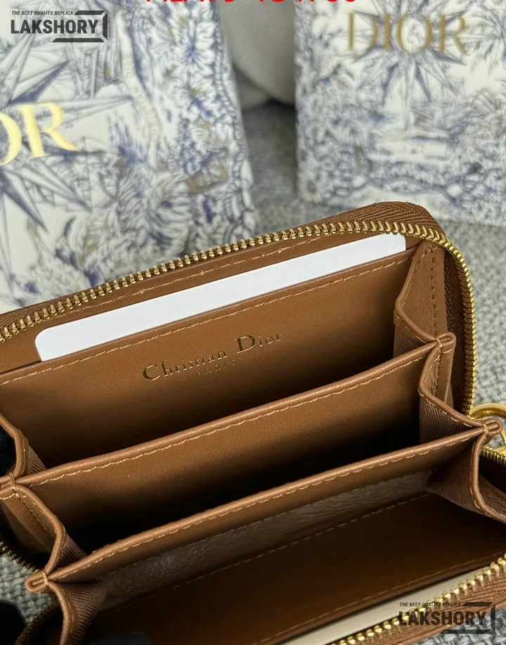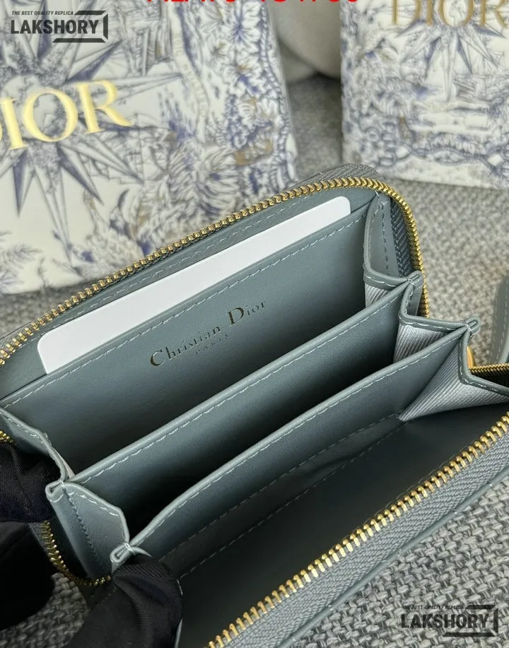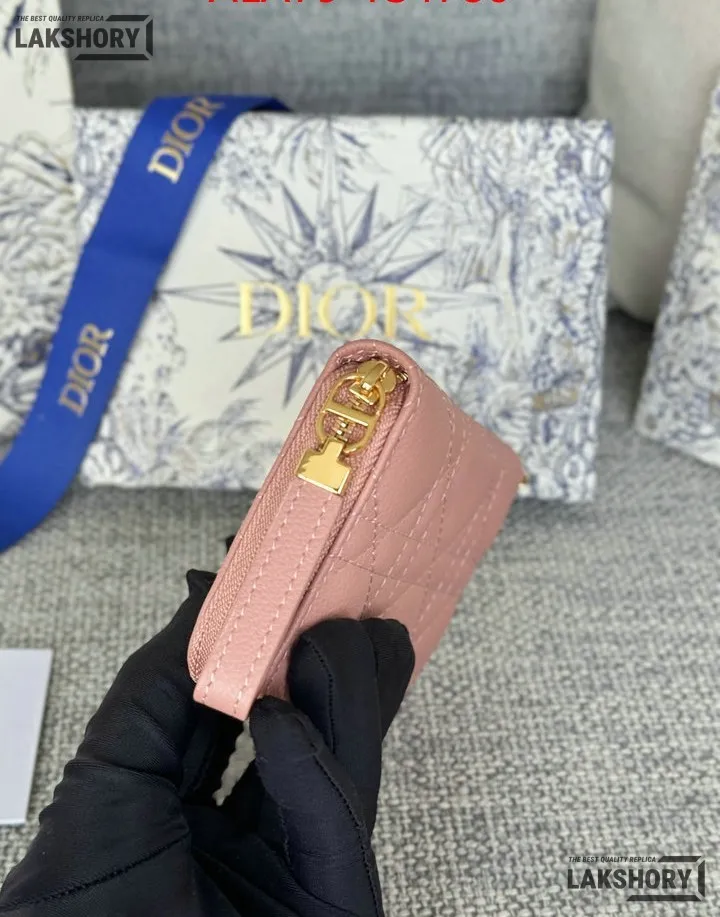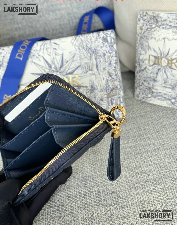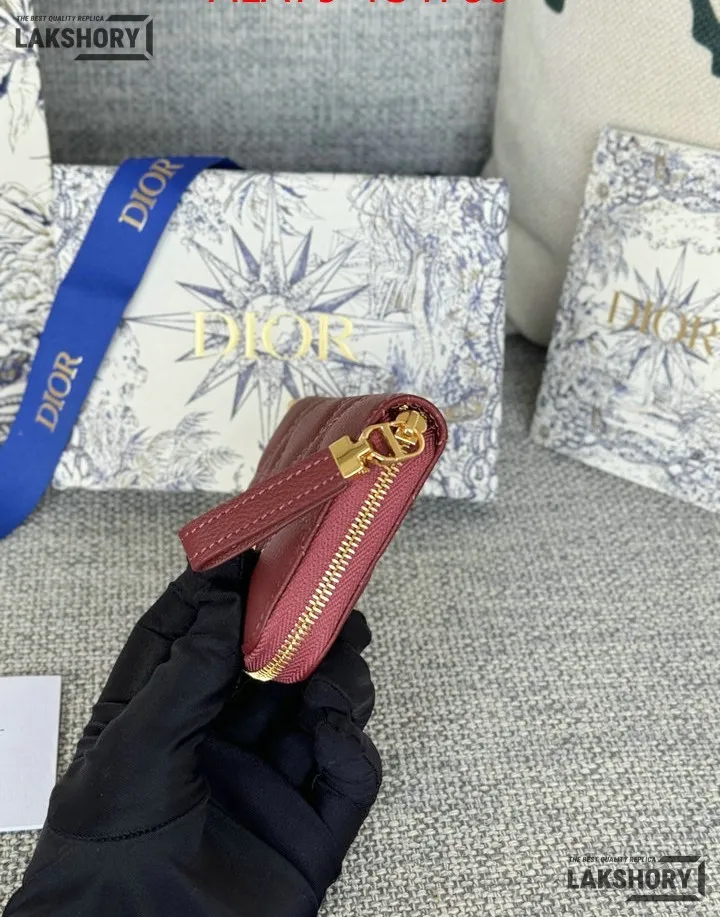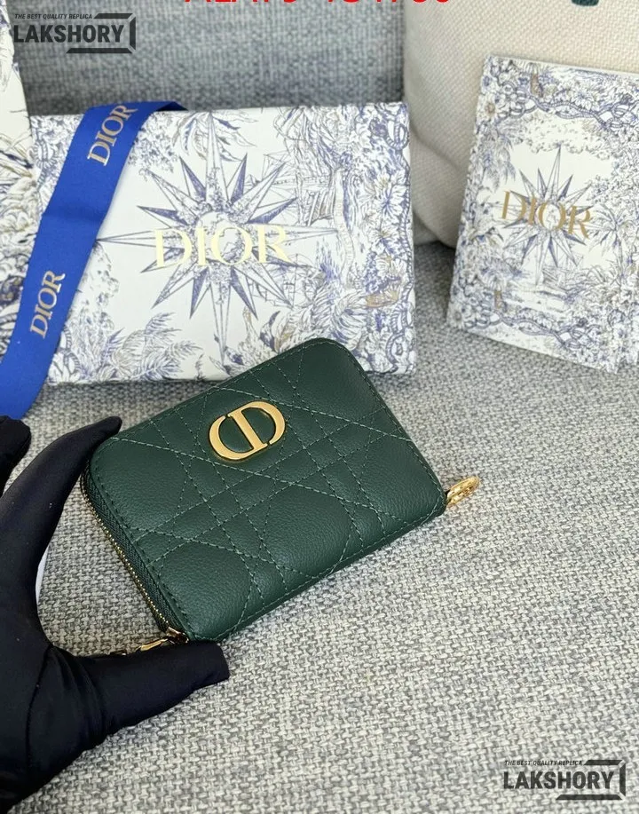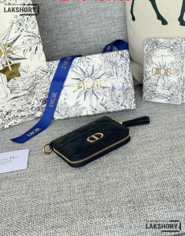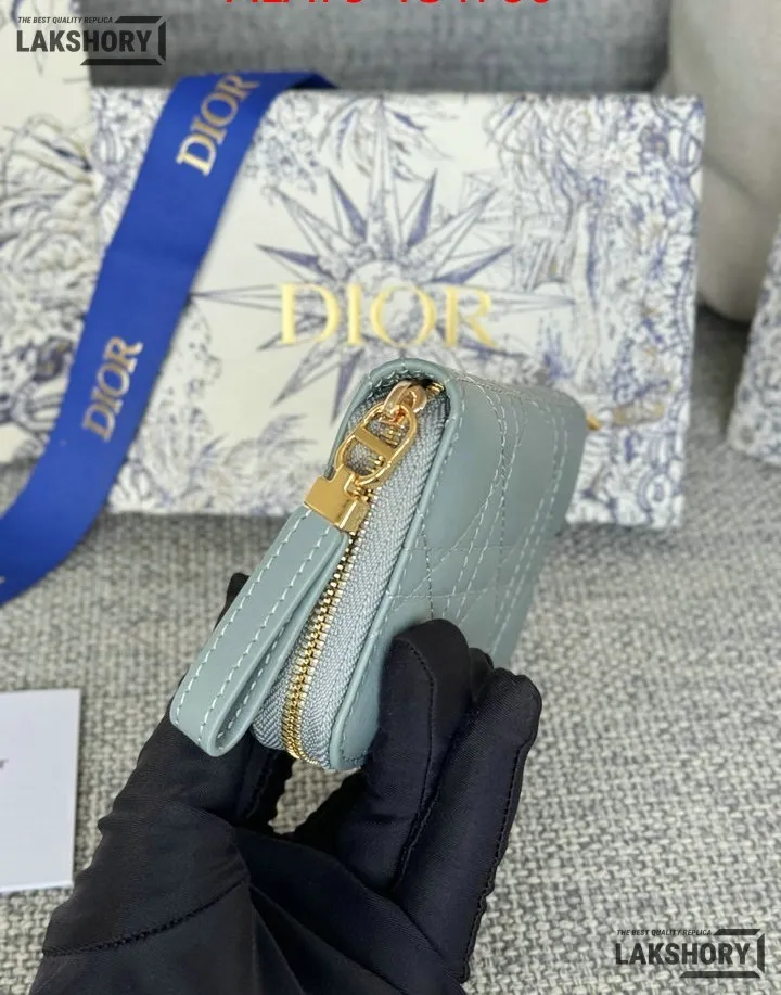 Dior 1:1 Mirror Replica Calfskin Supple Cannage Caro Compact Wallet 11CM/4.3IN