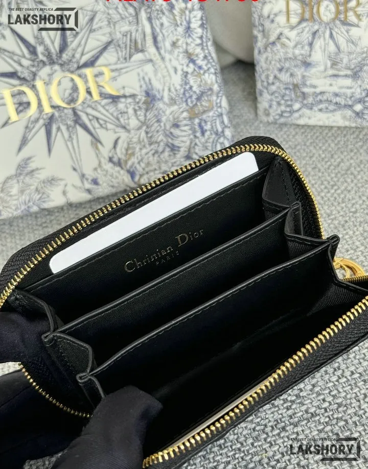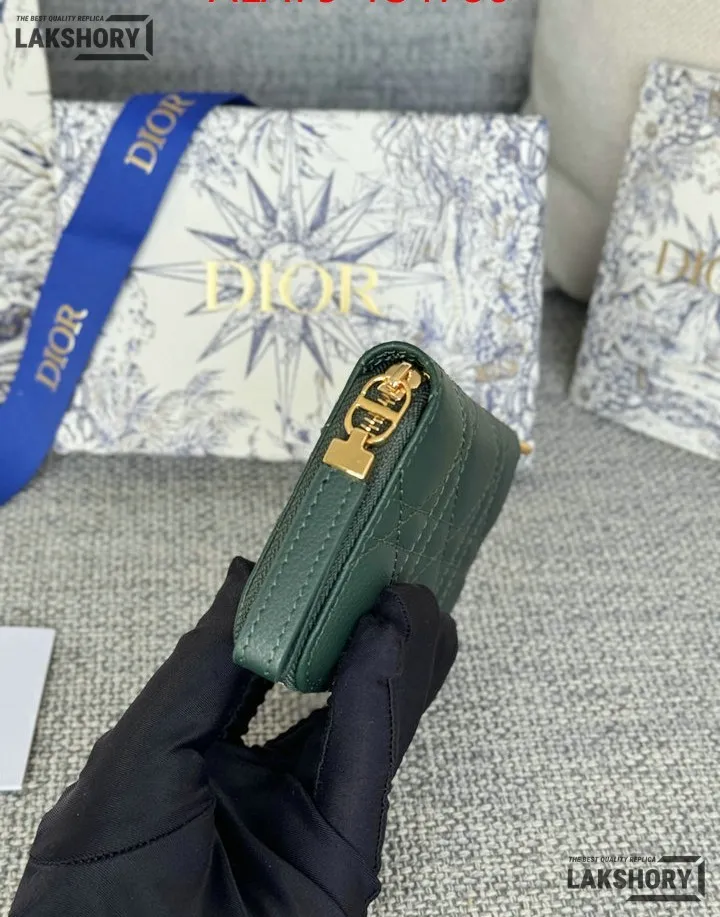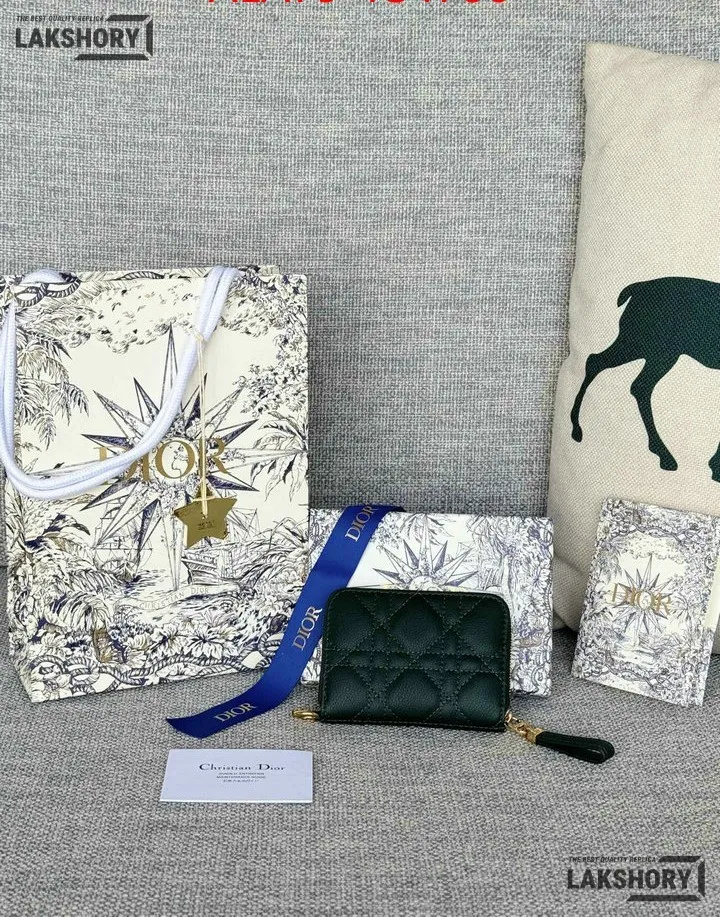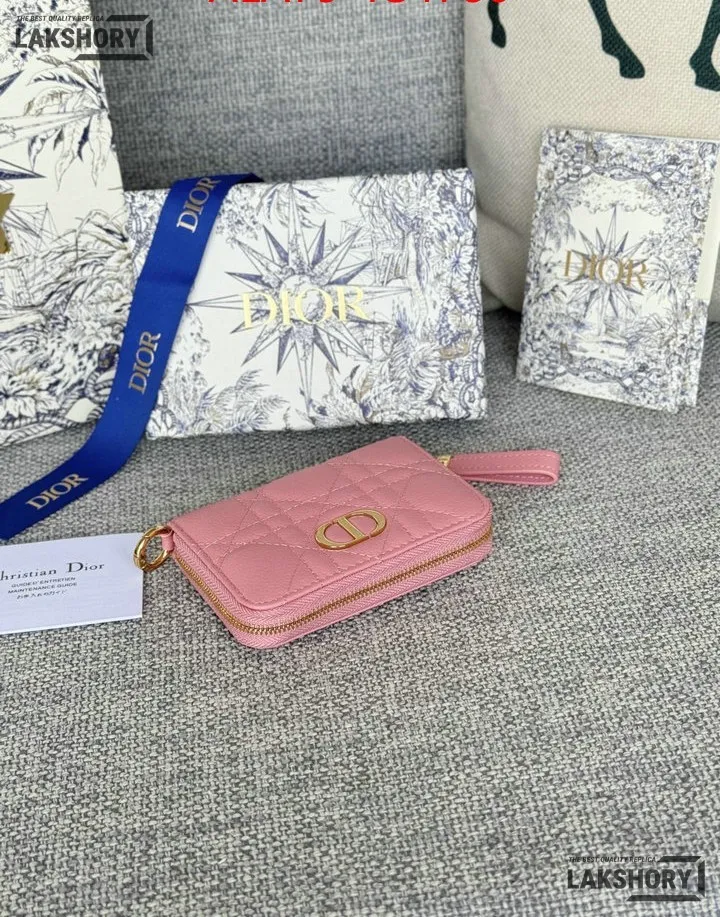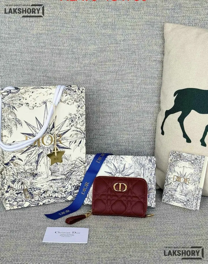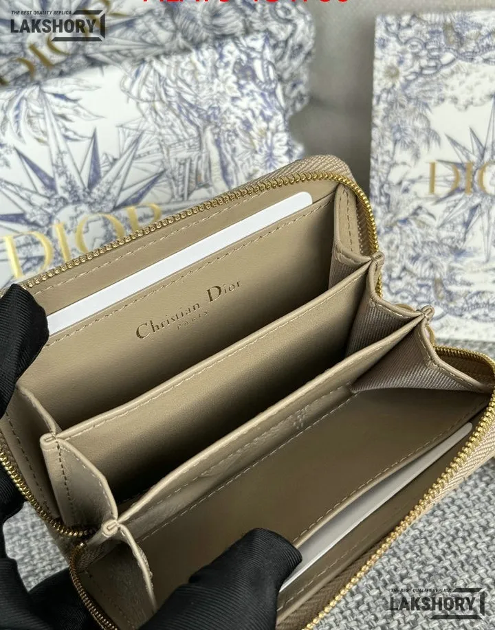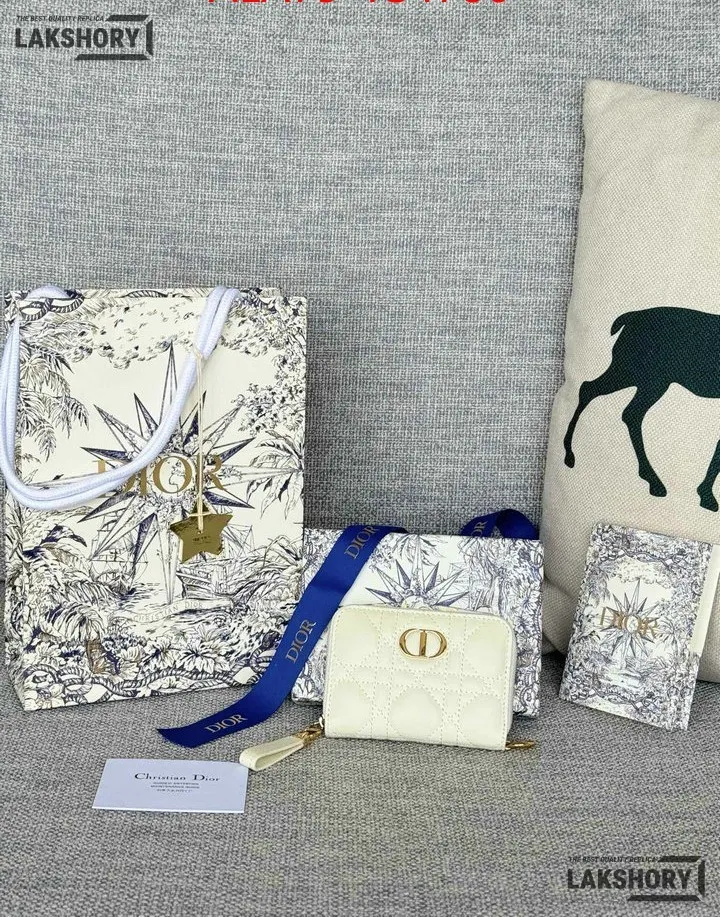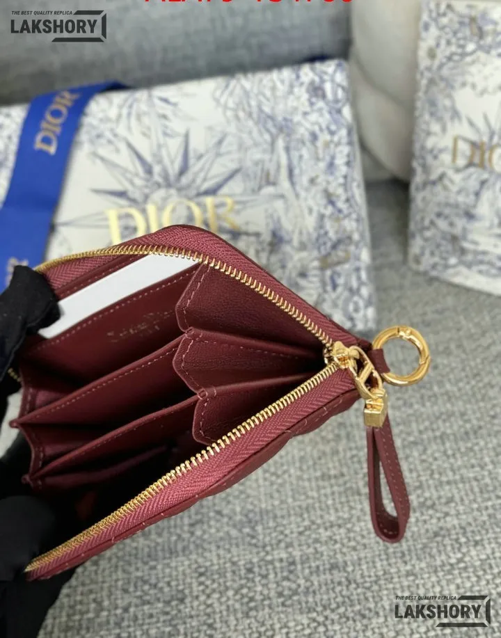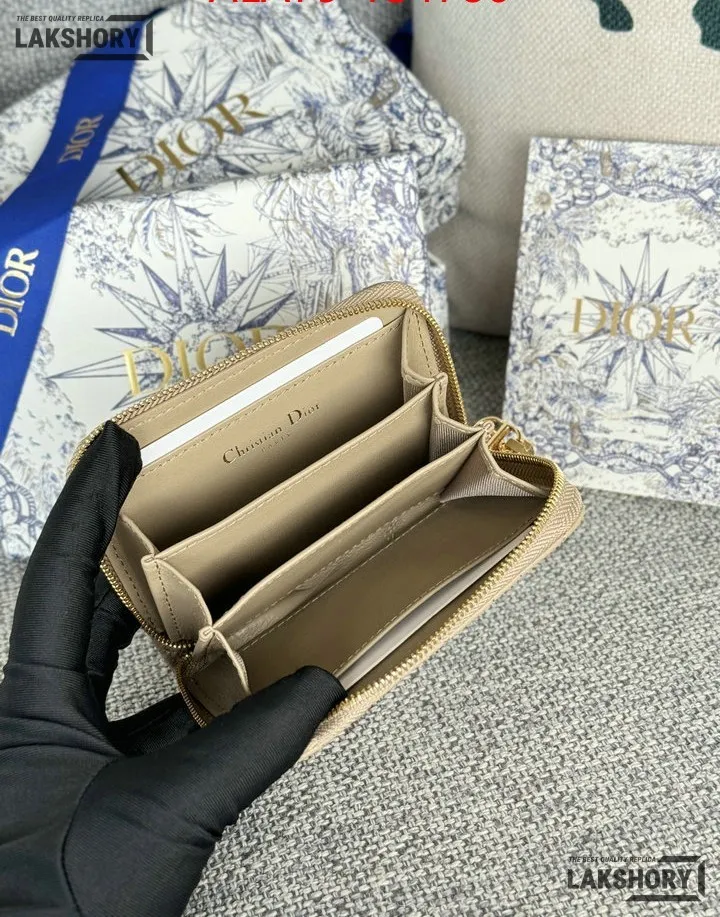 Dior 1:1 Mirror Replica Calfskin Supple Cannage Caro Compact Wallet 11CM/4.3IN