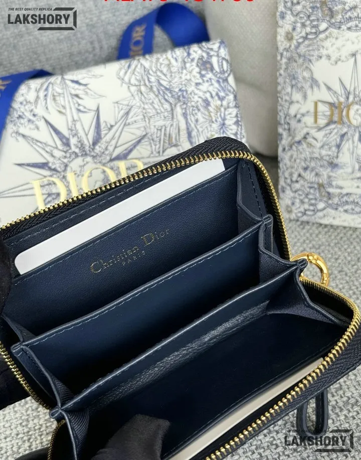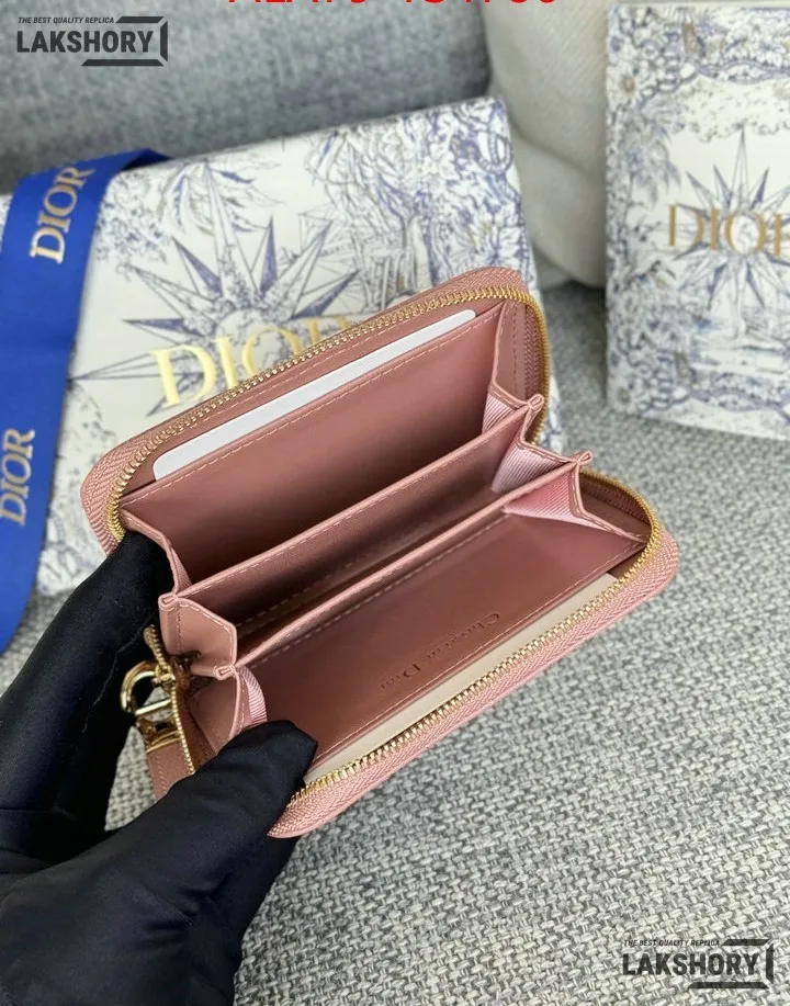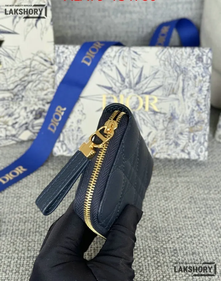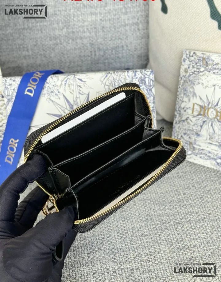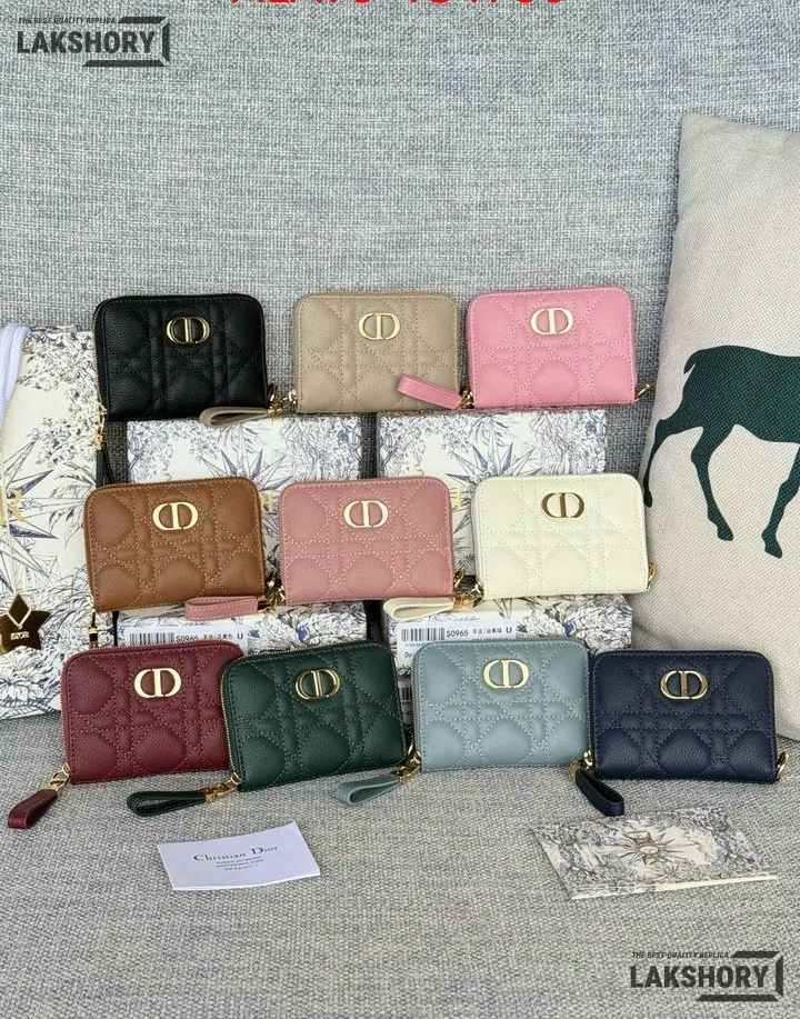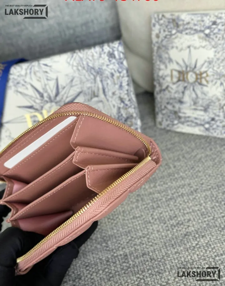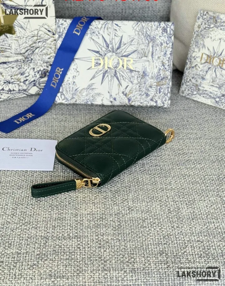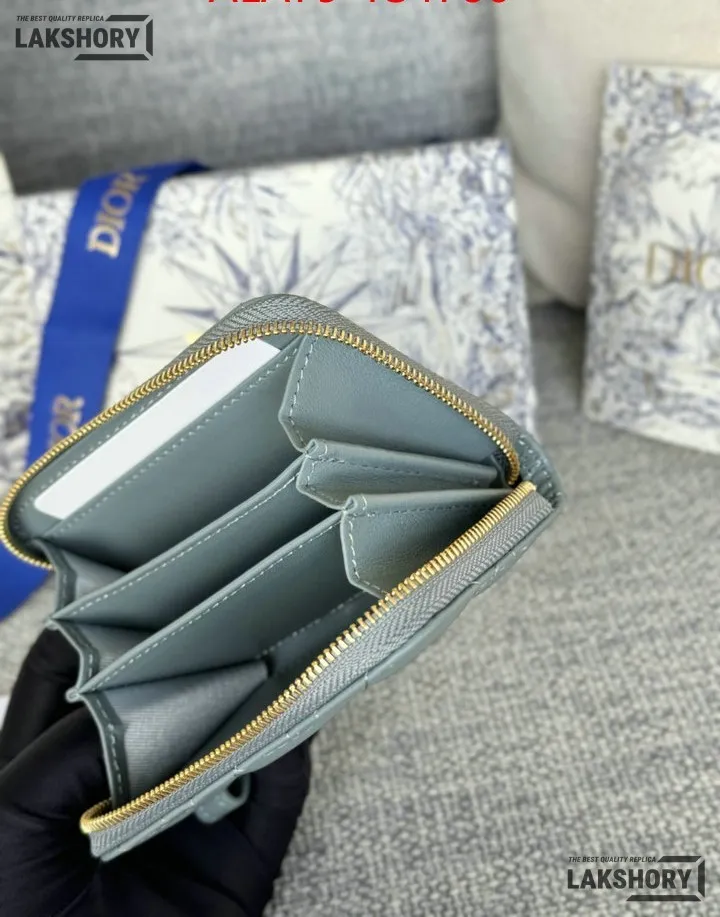 Dior 1:1 Mirror Replica Calfskin Supple Cannage Caro Compact Wallet 11CM/4.3IN
