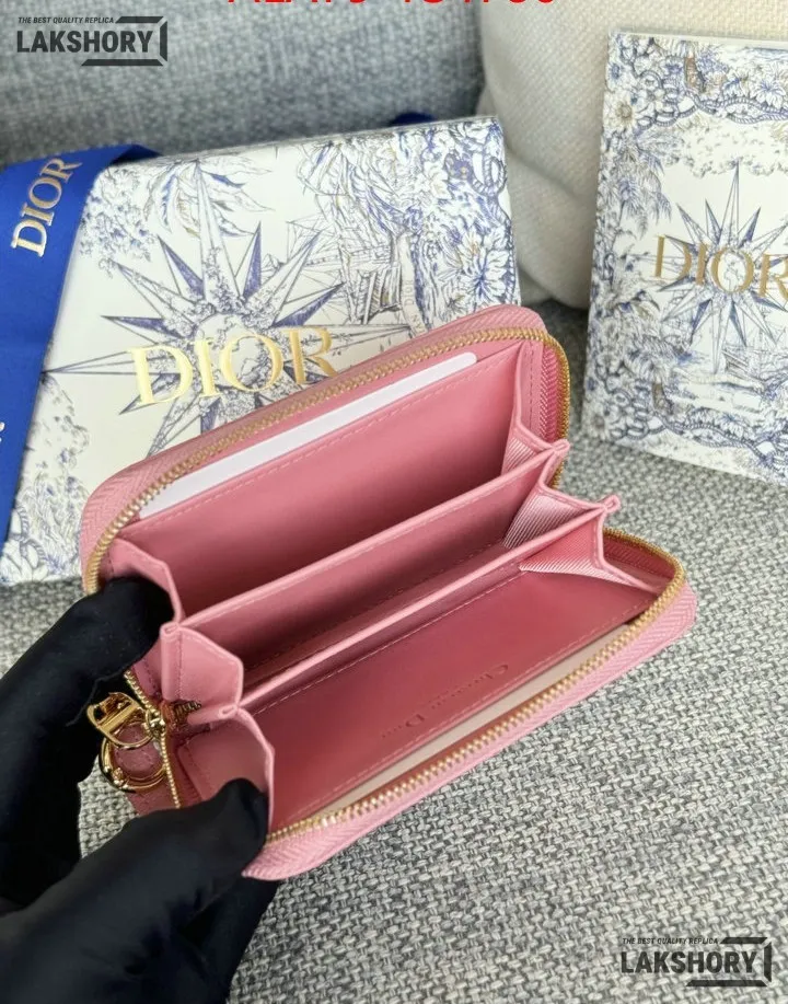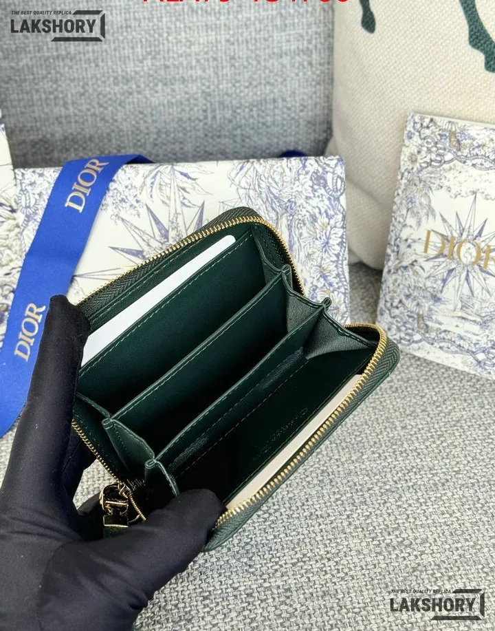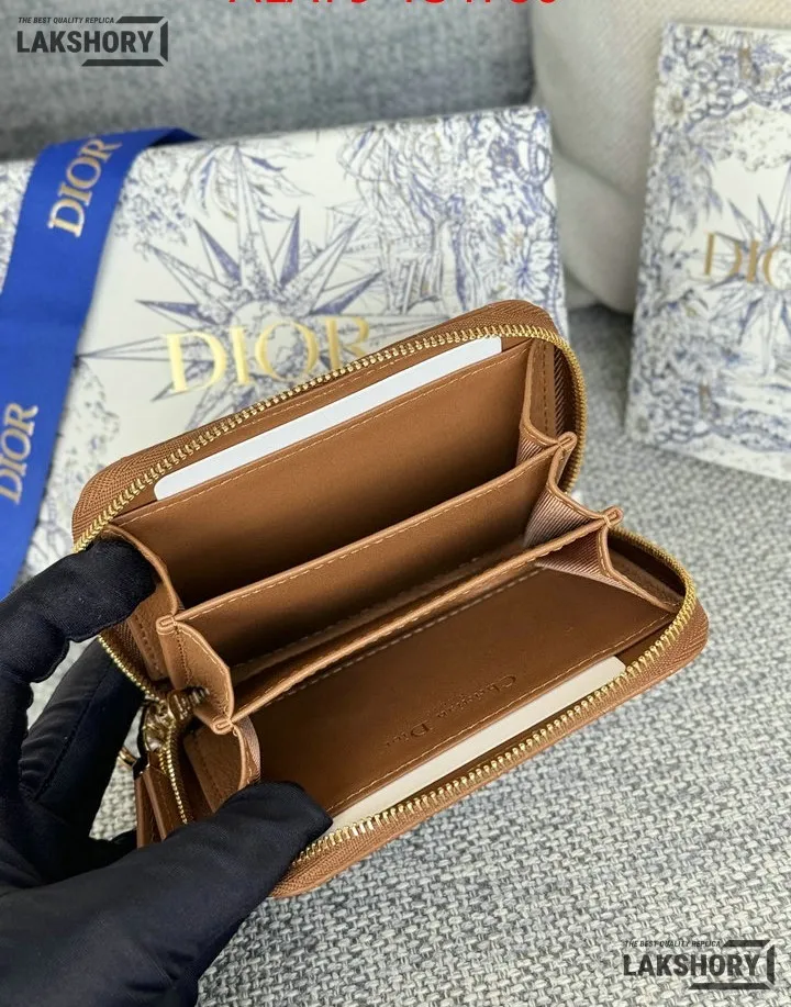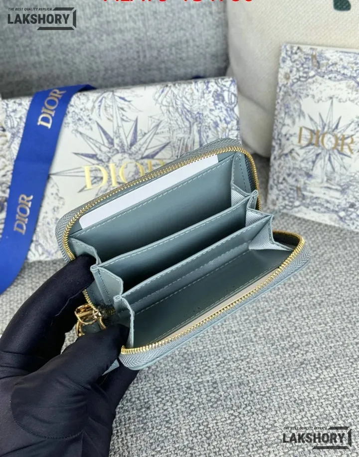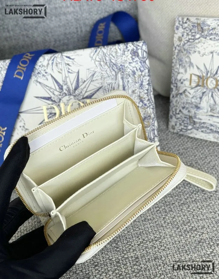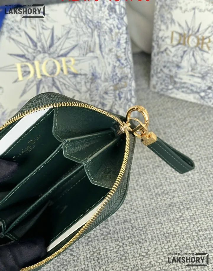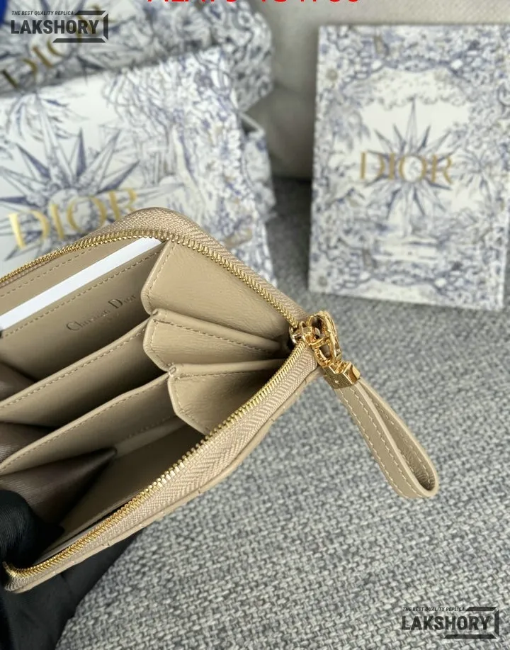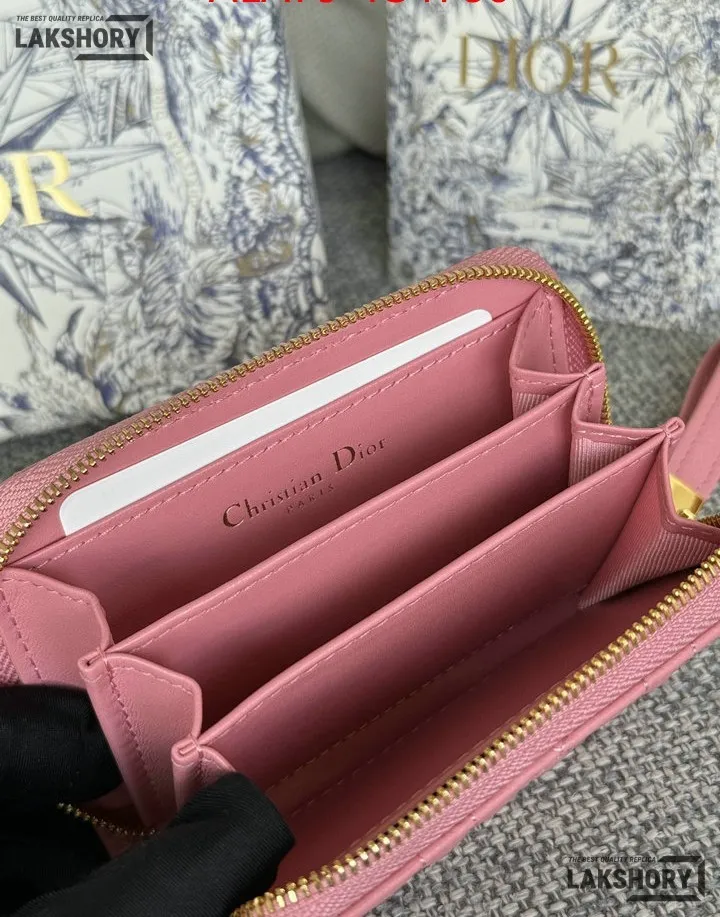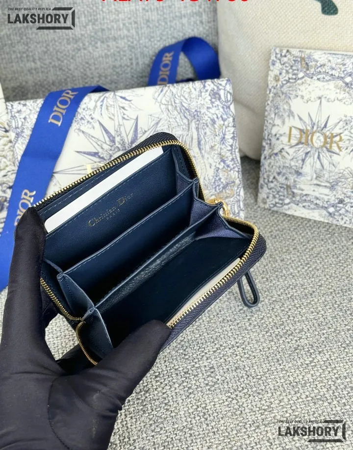 Dior 1:1 Mirror Replica Calfskin Supple Cannage Caro Compact Wallet 11CM/4.3IN