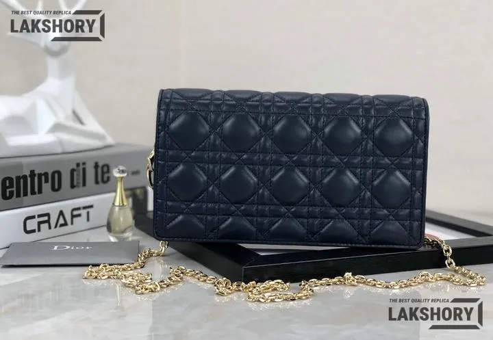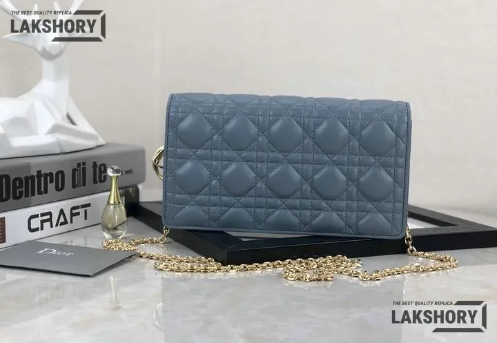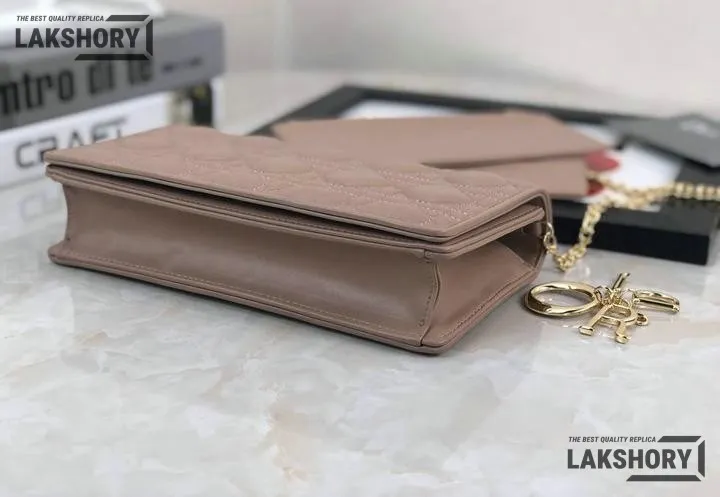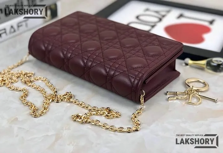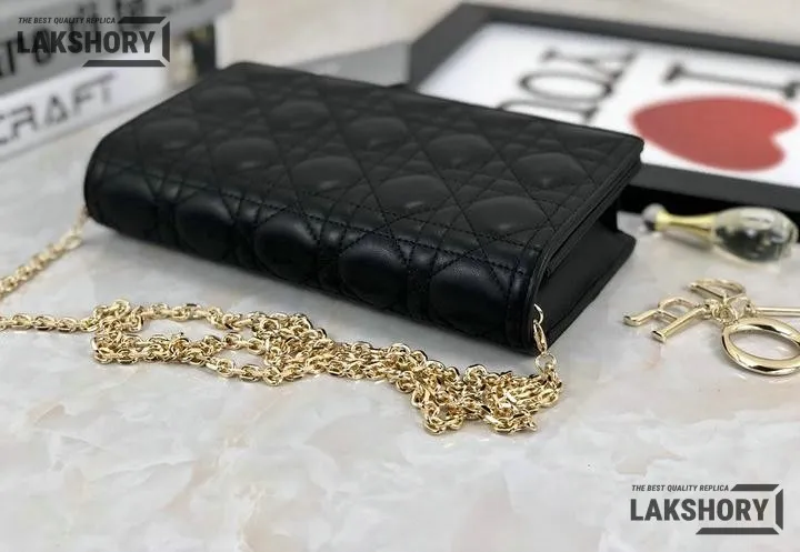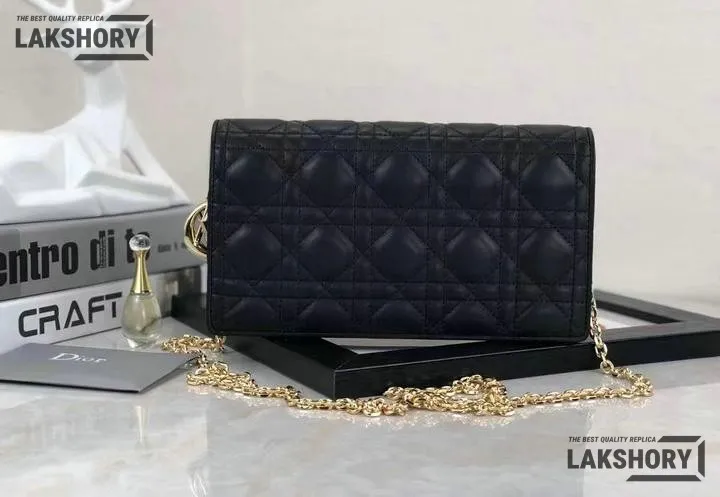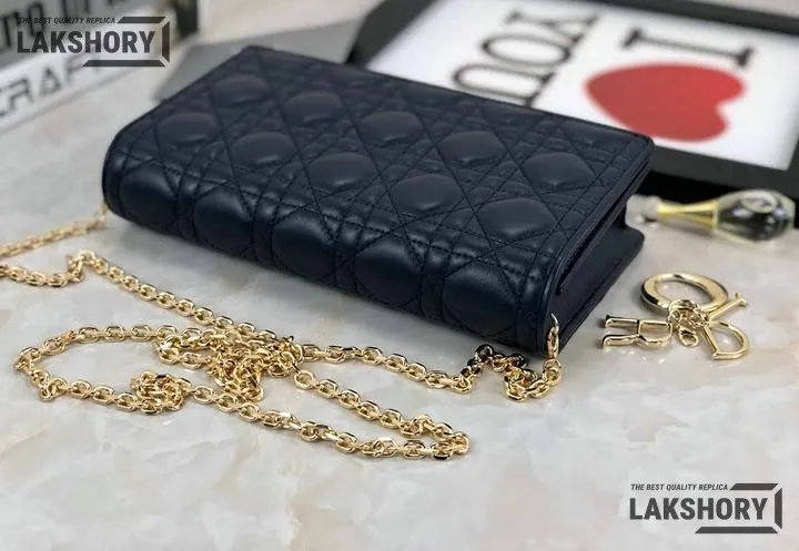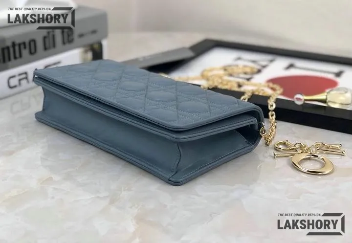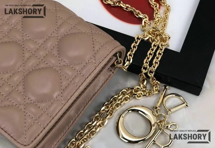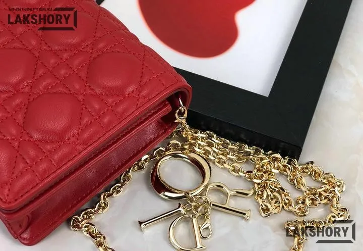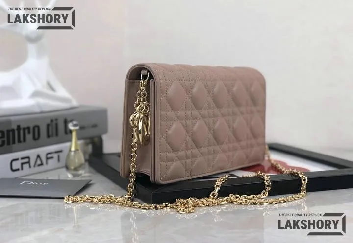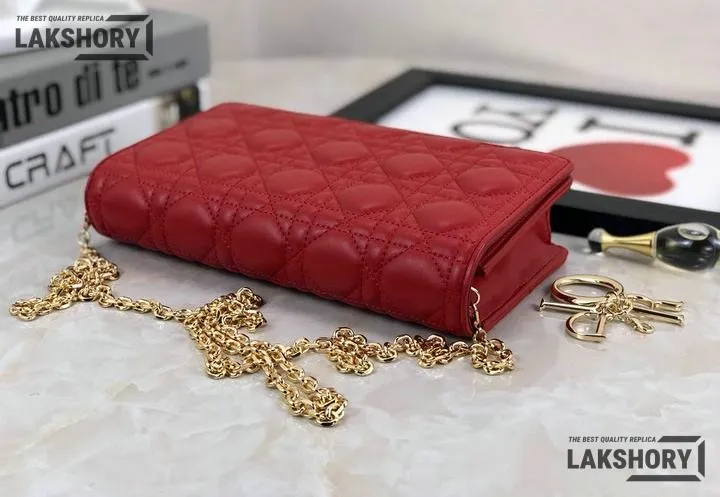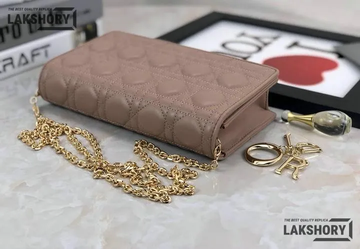 Dior 1:1 Mirror Replica Cannage Lambskin Chain Lady Dior Pouch 22CM/8.7IN