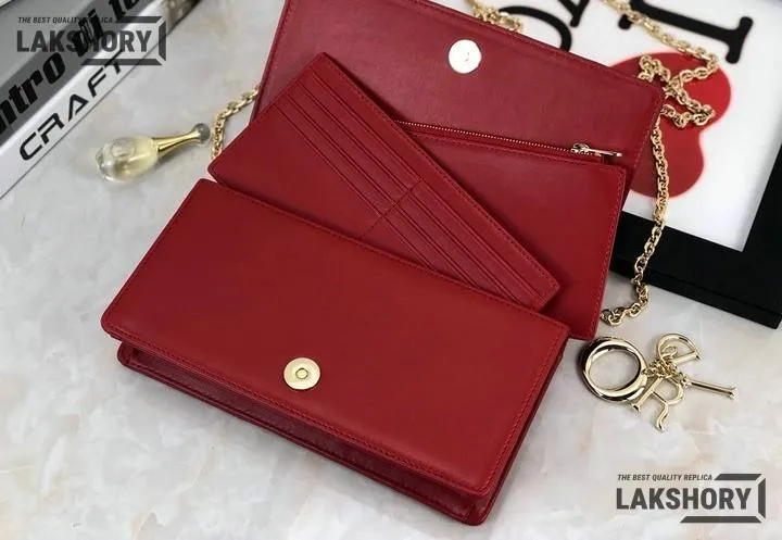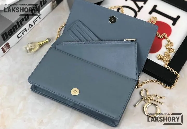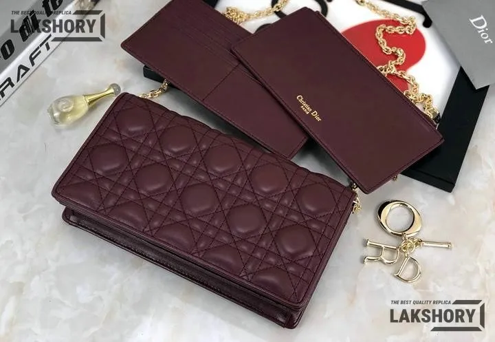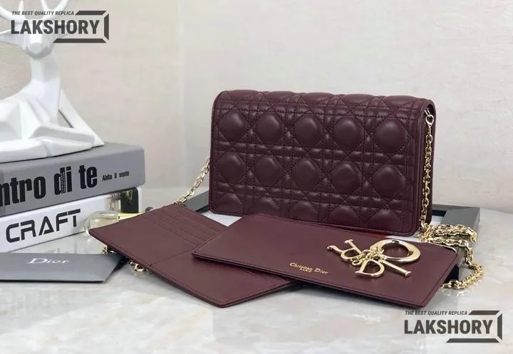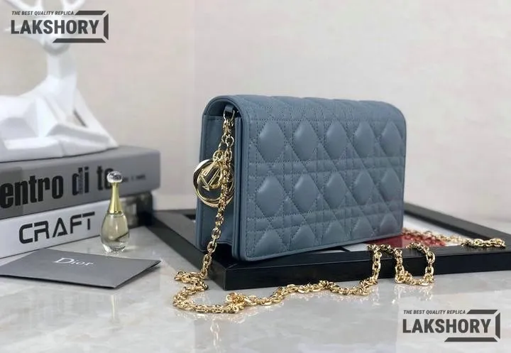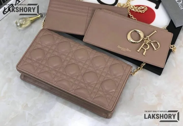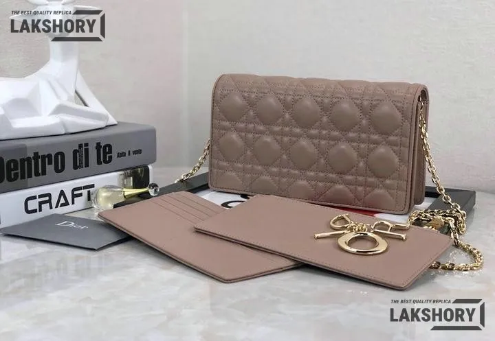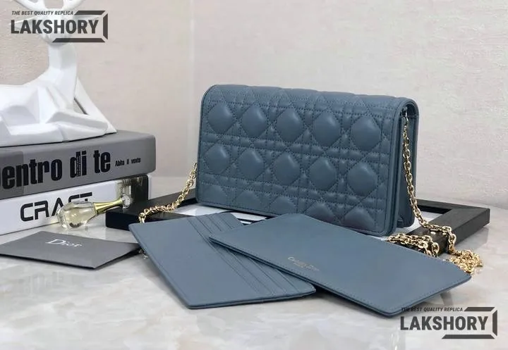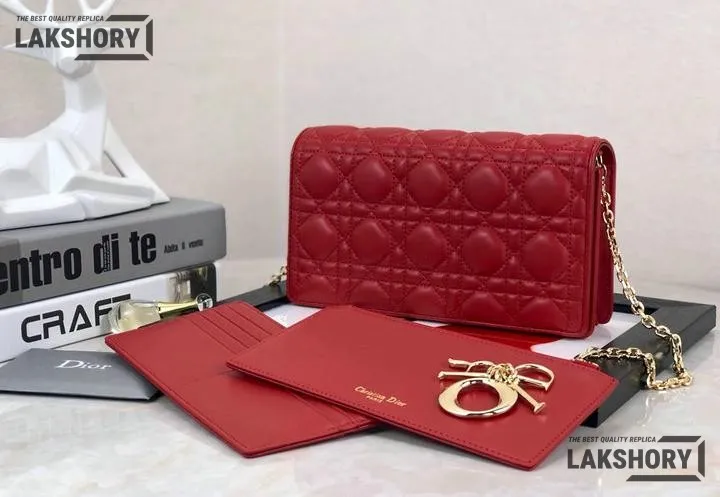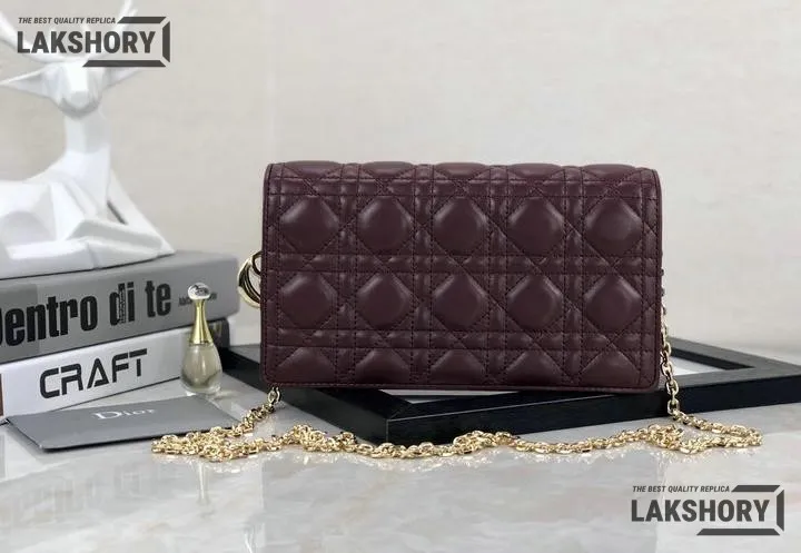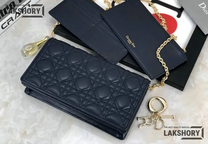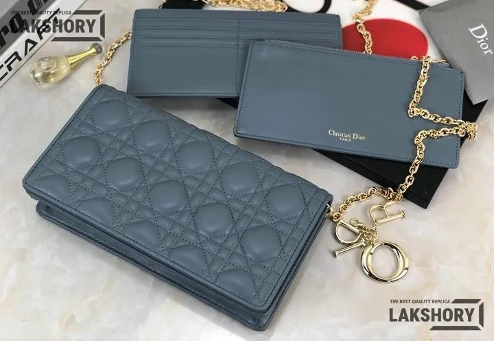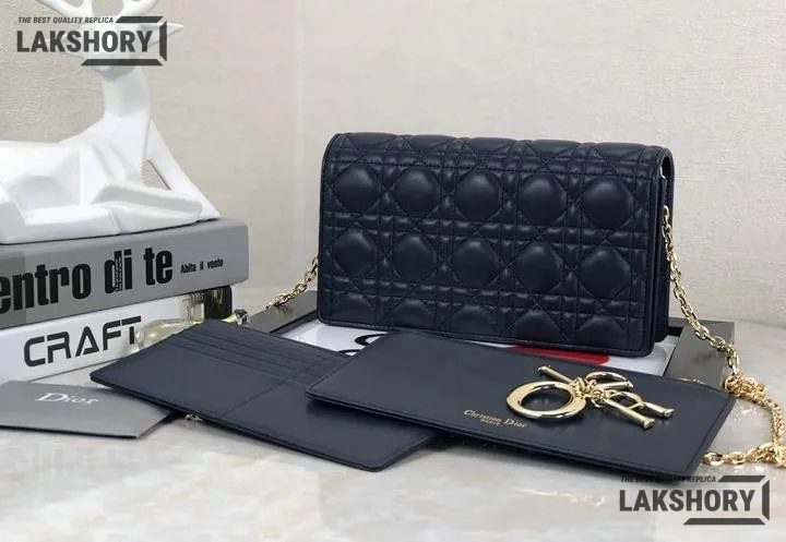 Dior 1:1 Mirror Replica Cannage Lambskin Chain Lady Dior Pouch 22CM/8.7IN