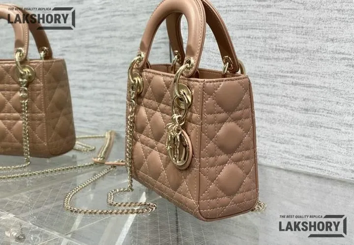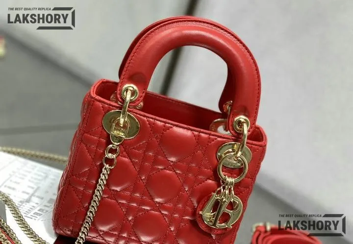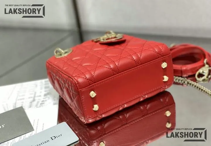 Dior 1:1 Mirror Replica Cannage Sheepskin Mini Lady Dior Tote 17CM/6.7IN