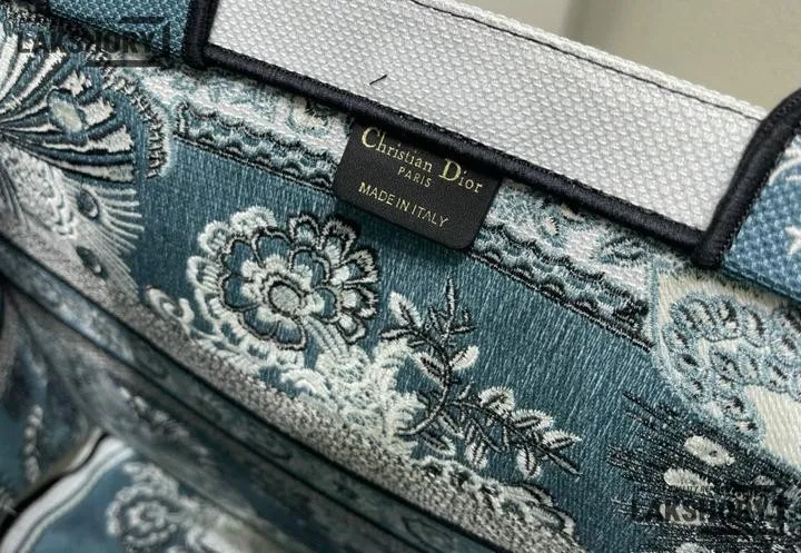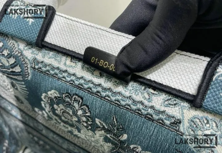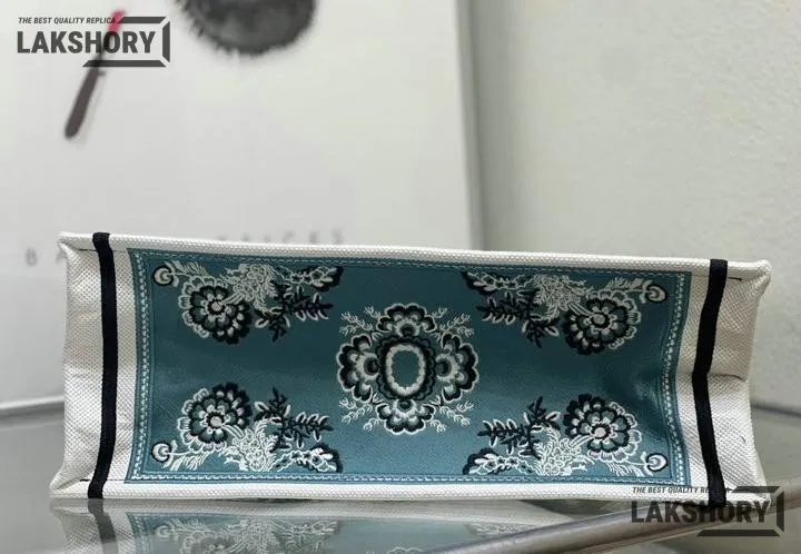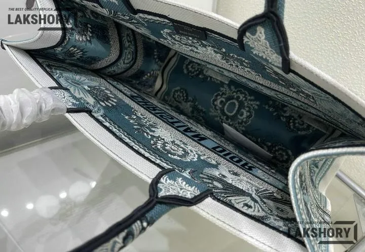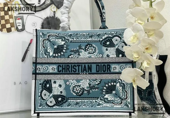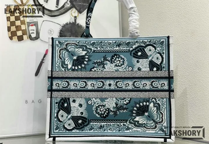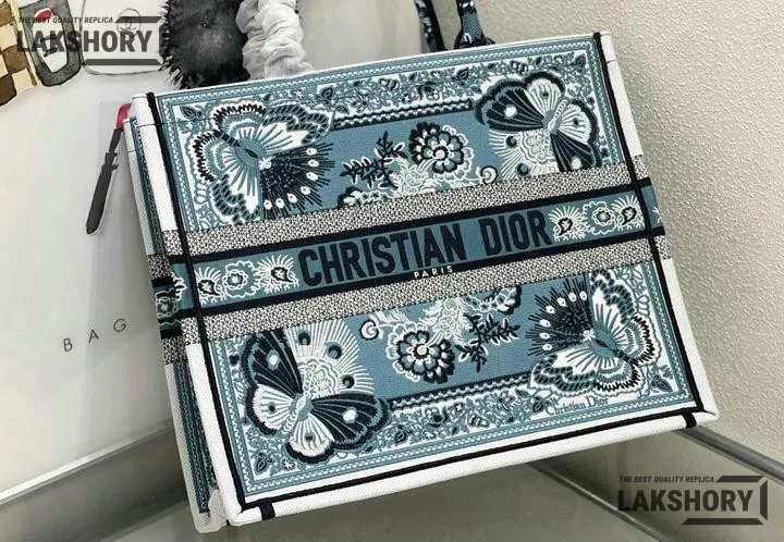 Dior 1:1 Mirror Replica Canvas Butterfly Bandana Book Tote Blue/White