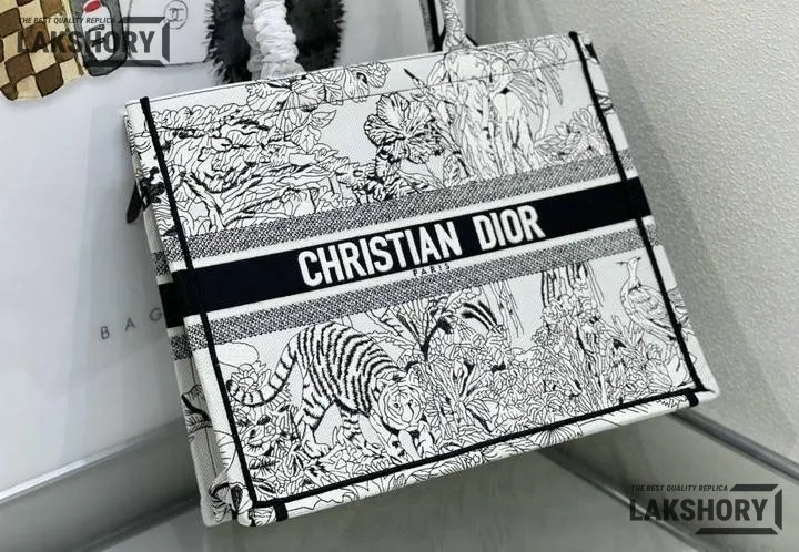 Dior 1:1 Mirror Replica Canvas Embroidered Toile De Jouy Book Tote Blue