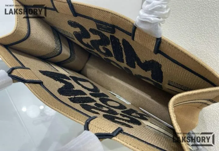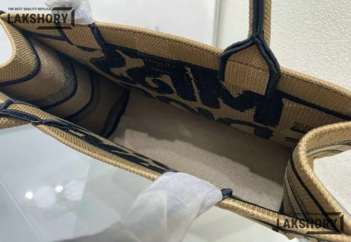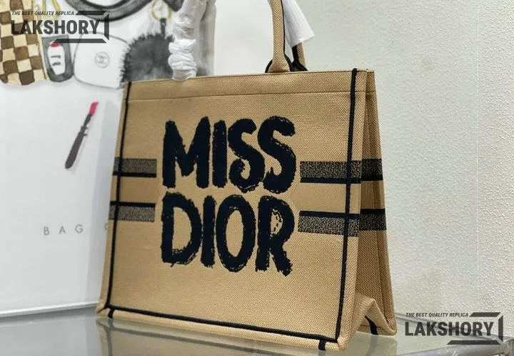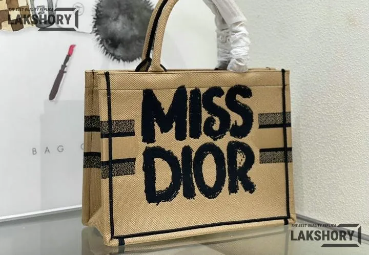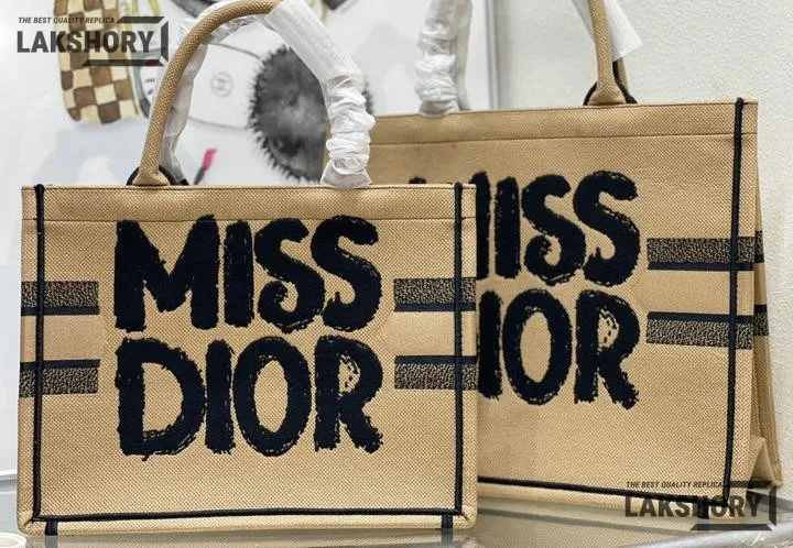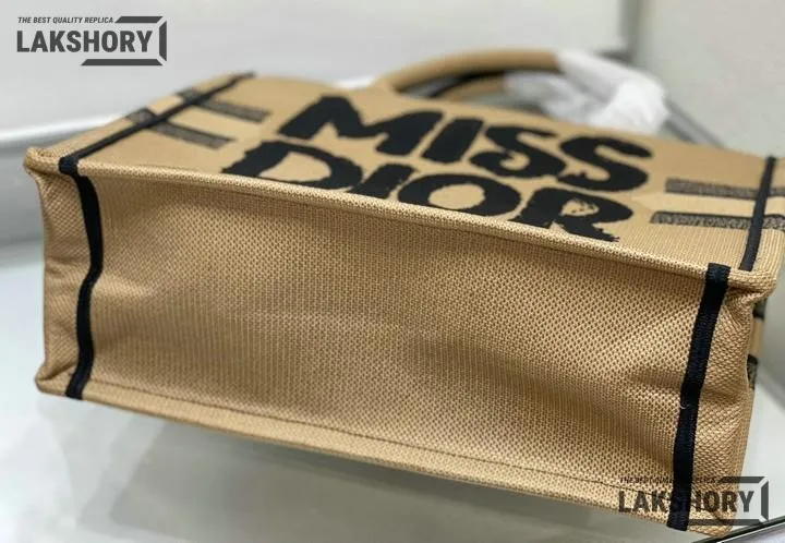 Dior 1:1 Mirror Replica Canvas Embroidery Miss Dior Beige Book Tote