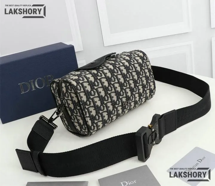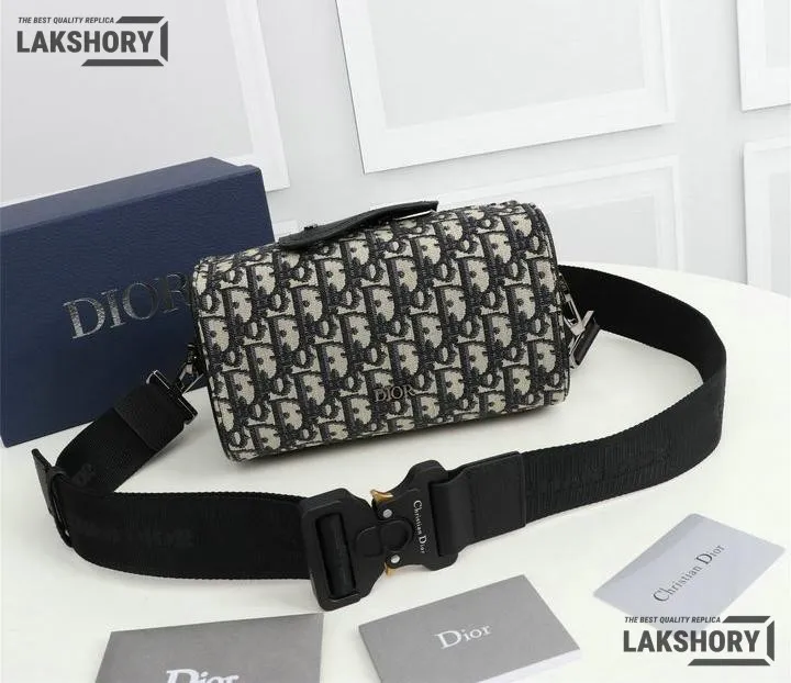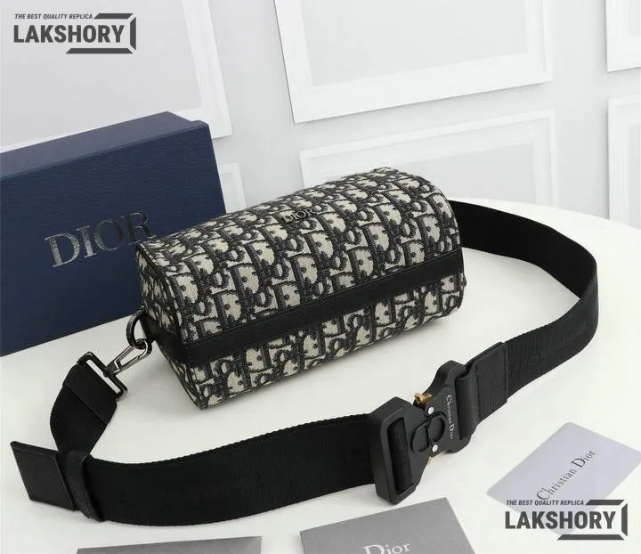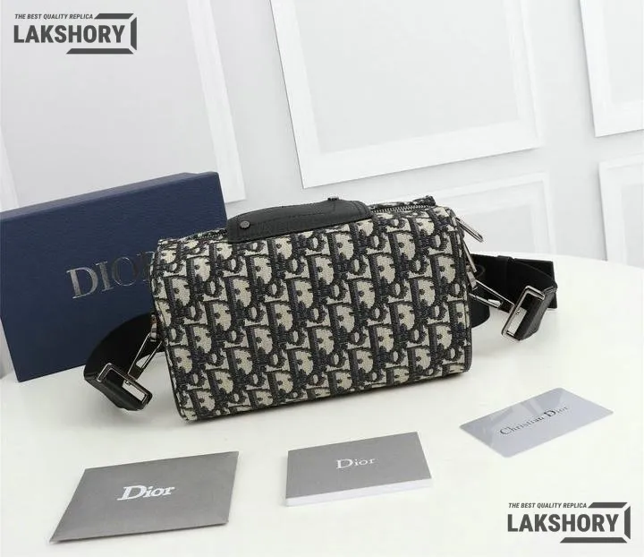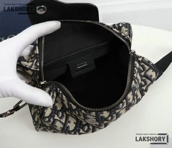 Dior 1:1 Mirror Replica Canvas Lingot 22 Oblique Crossbody Blue 22.5CM/8.9IN