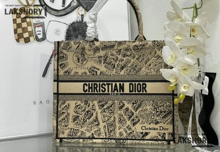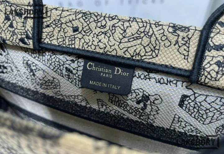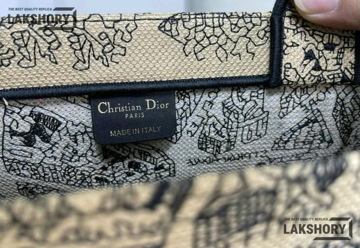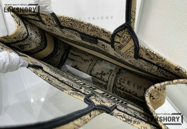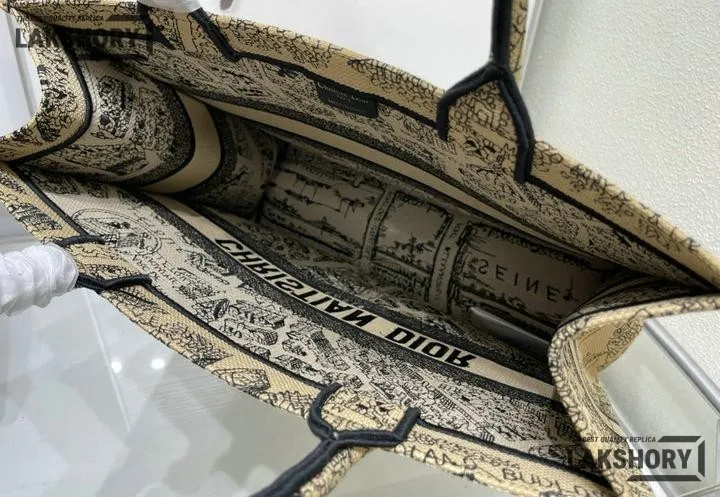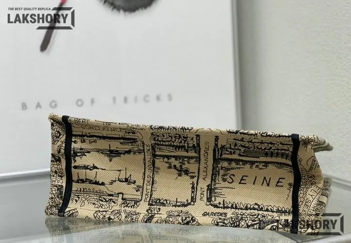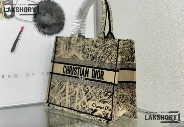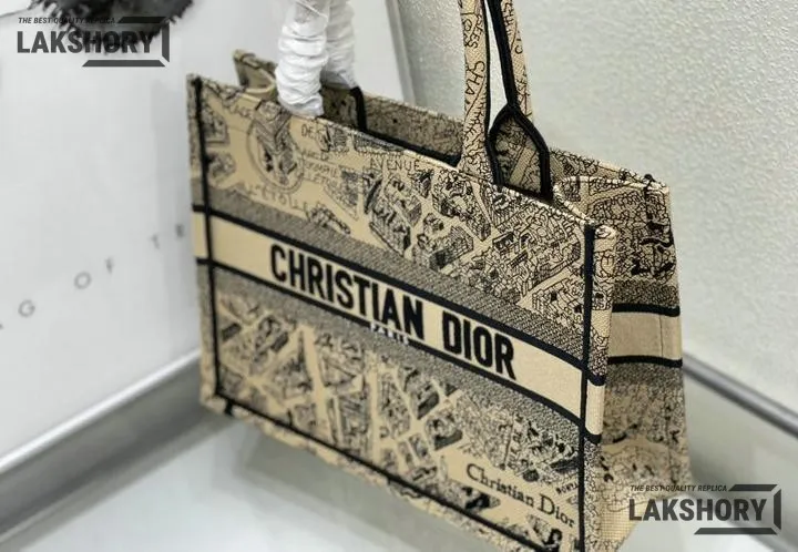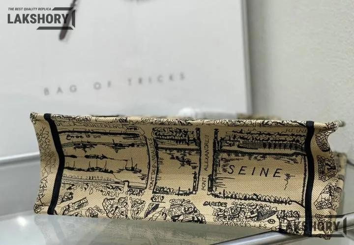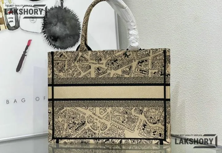Dior 1:1 Mirror Replica Canvas Plan De Paris Book Tote Beige/Black 42CM/16.5IN
