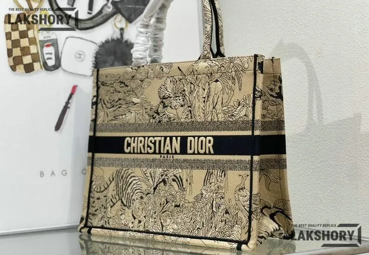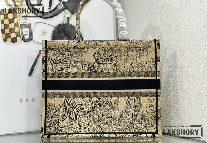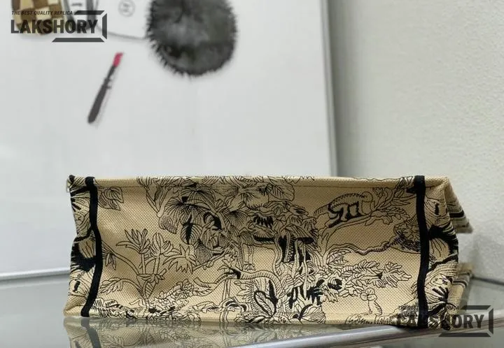 Dior 1:1 Mirror Replica Canvas Toile De Jouy Dioriviera Book Tote Black
