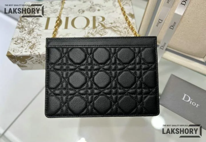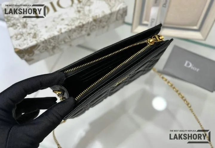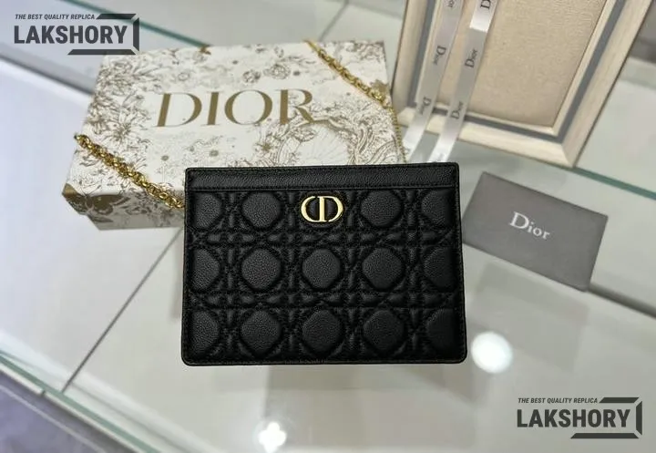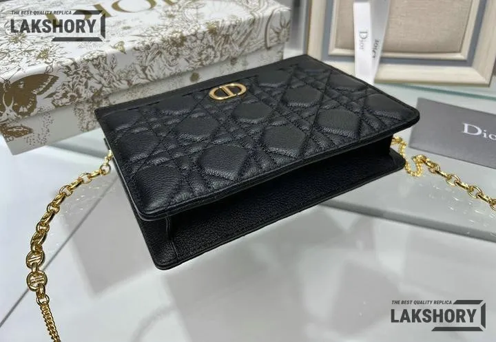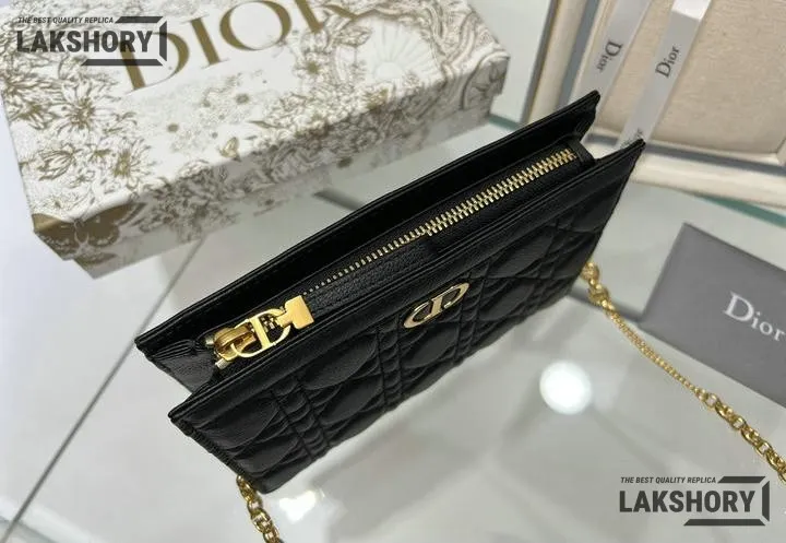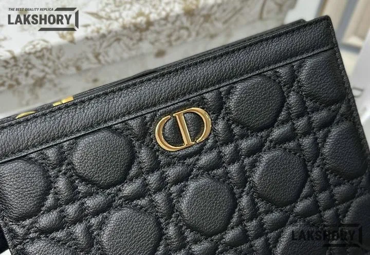 Dior 1:1 Mirror Replica Caro Every Black Supple Pebbled Pouch 19CM/7.5IN