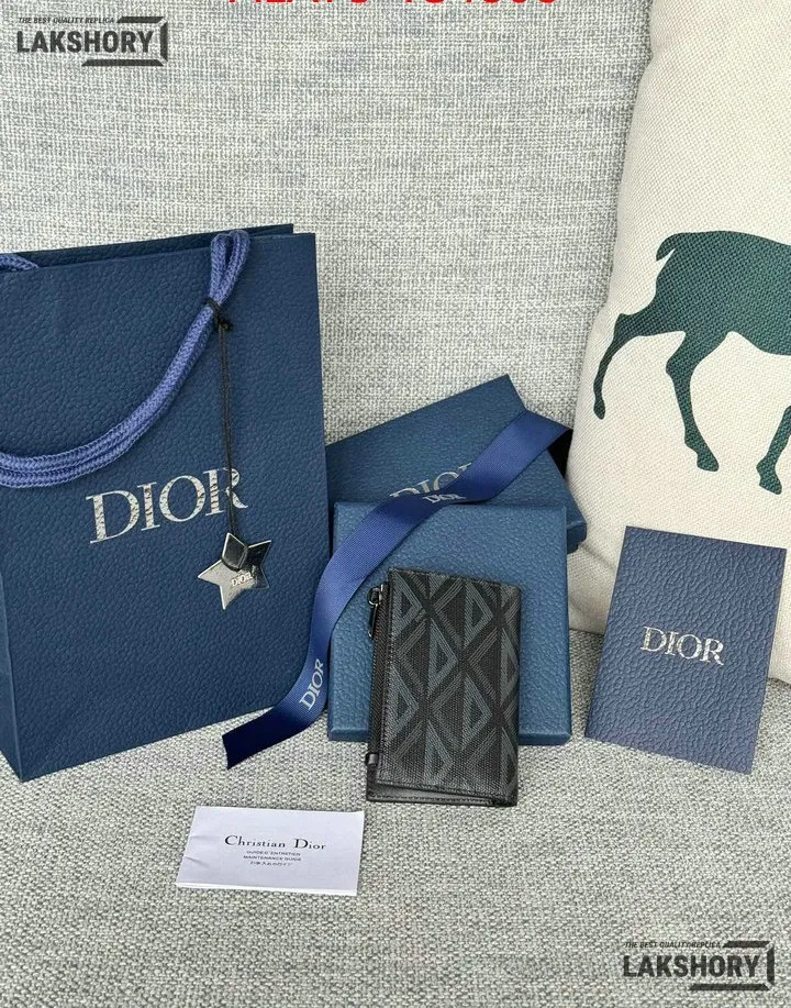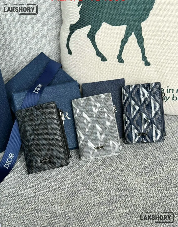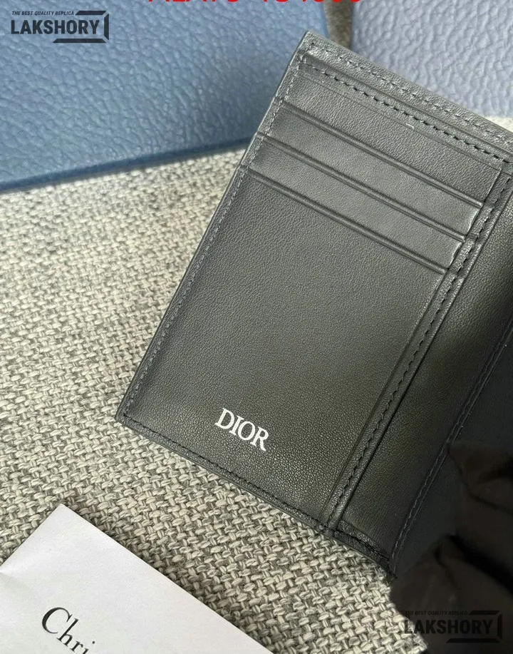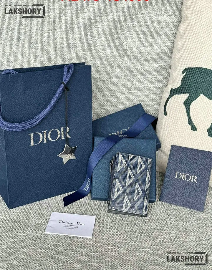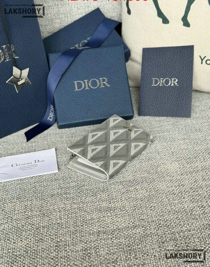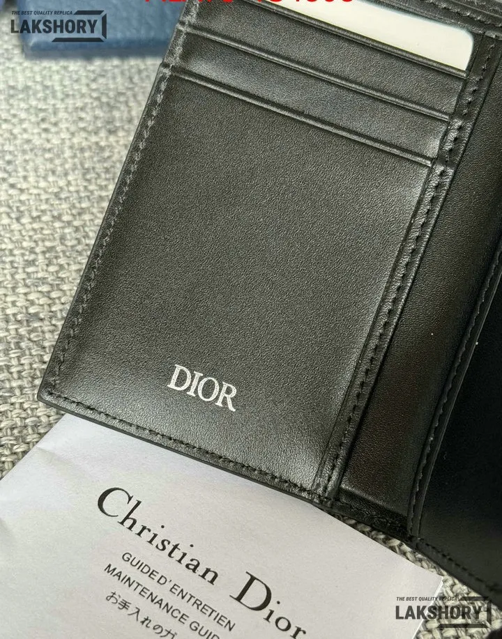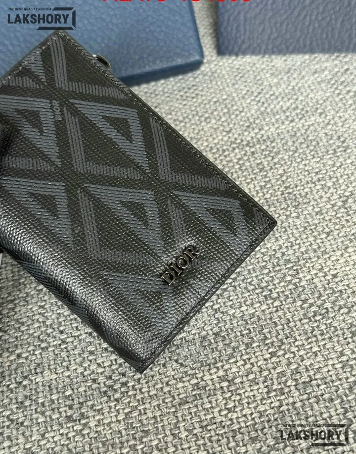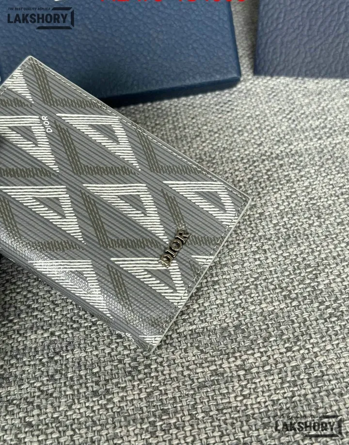 Dior 1:1 Mirror Replica CD Diamond Print Coated Canvas Bifold Card 11.4CM/4.5IN