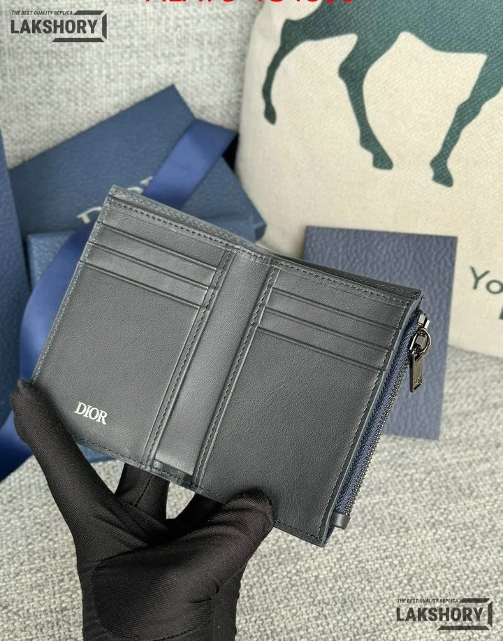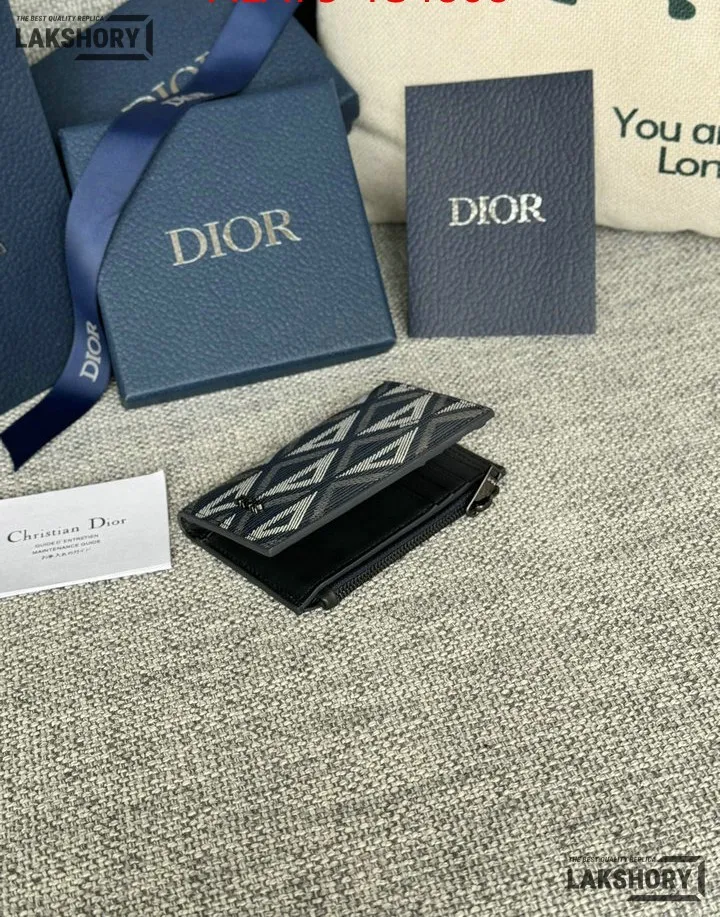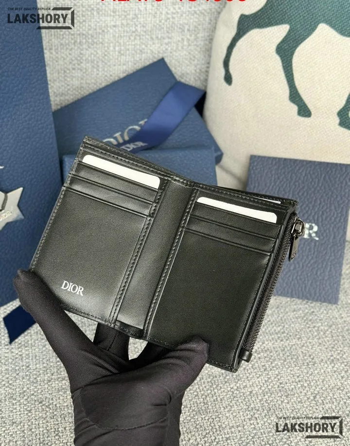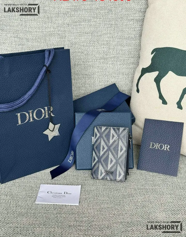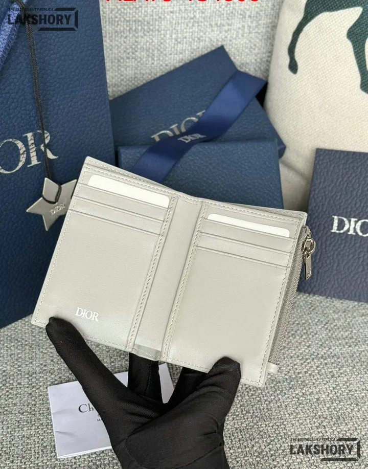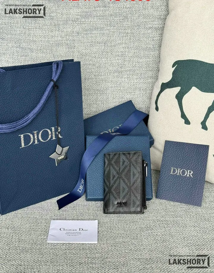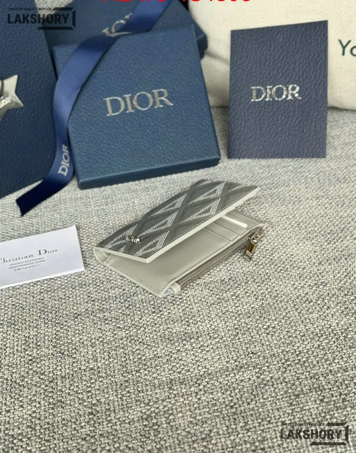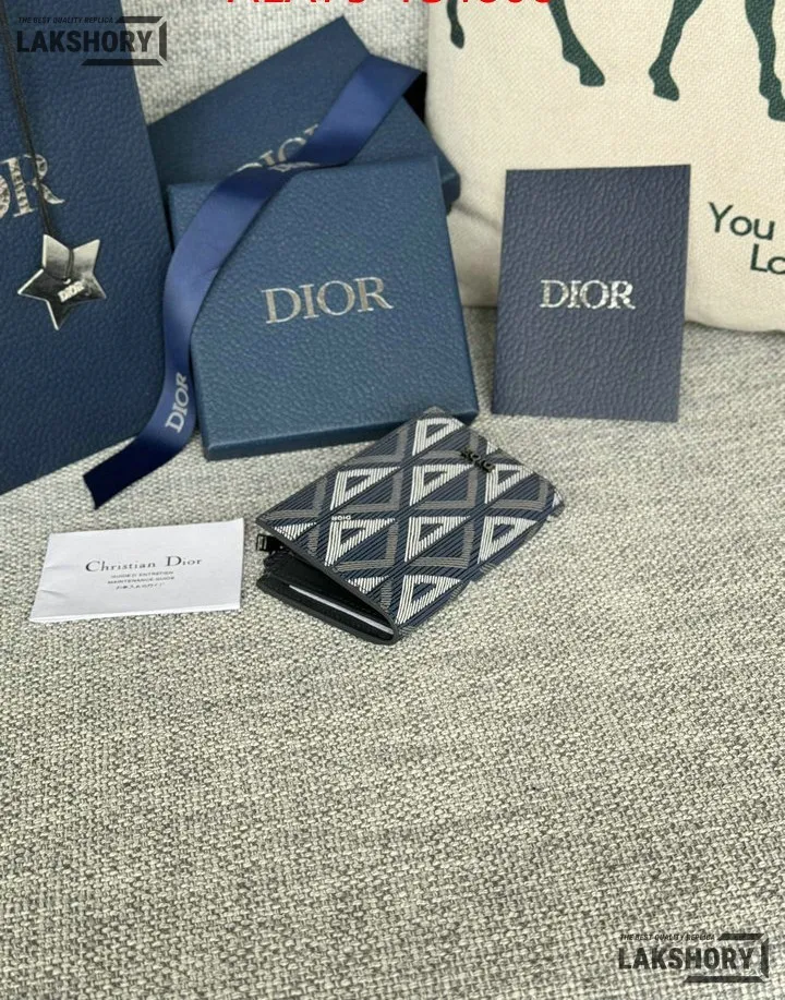 Dior 1:1 Mirror Replica CD Diamond Print Coated Canvas Bifold Card 11.4CM/4.5IN