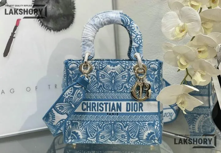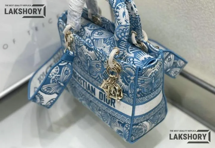 Dior 1:1 Mirror Replica Celestial Lady D-lite Blue D-Butterfly Paisley 24CM/9.4IN