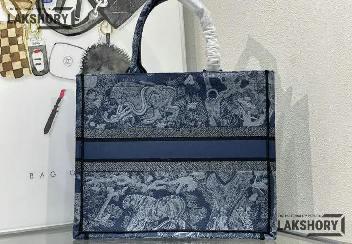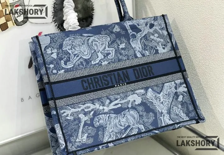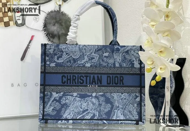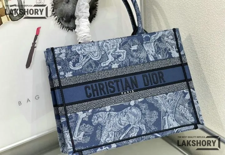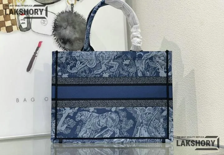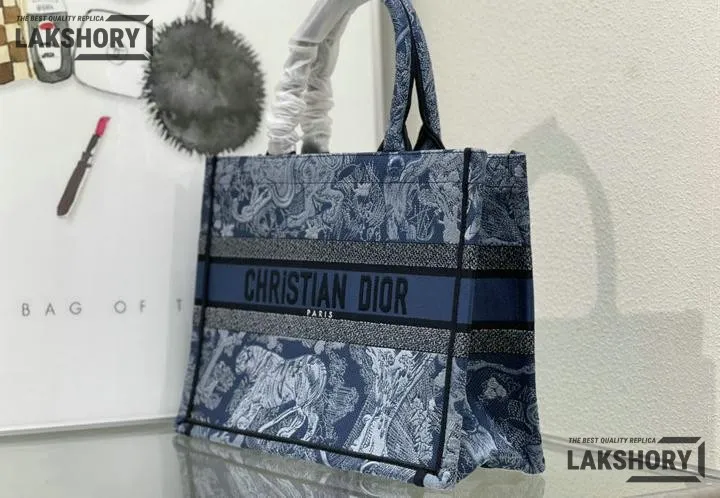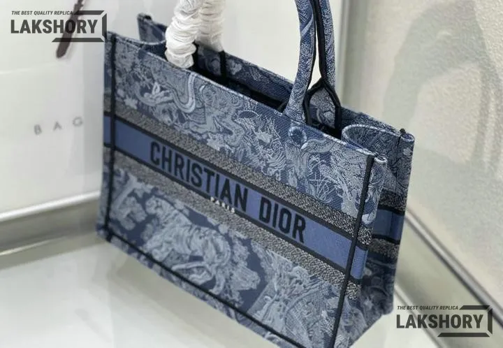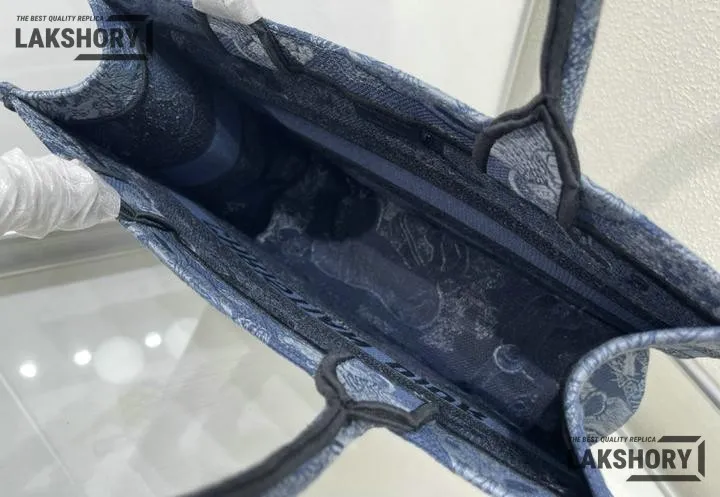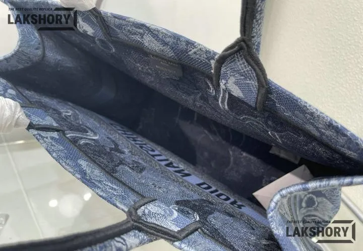 Dior 1:1 Mirror Replica Denim Blue Book Tote Toile de Jouy Embroidery