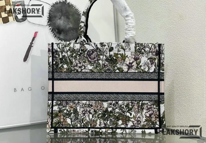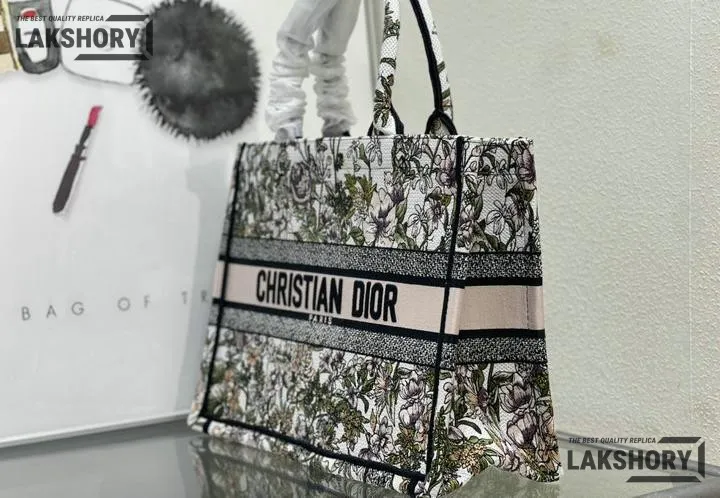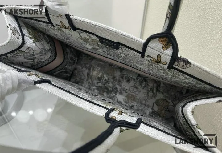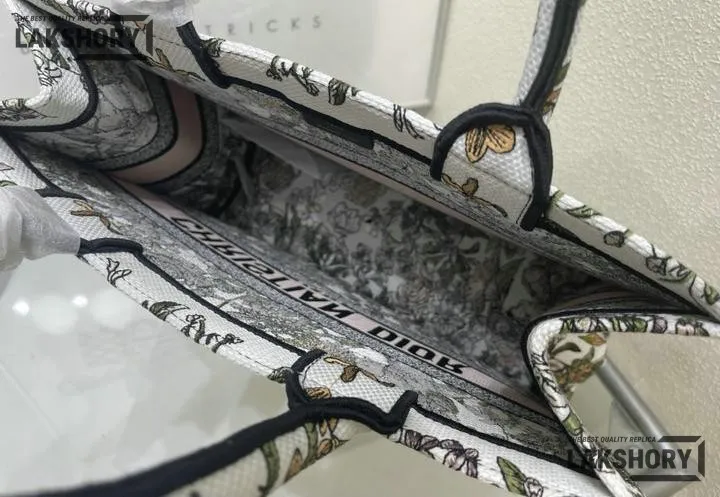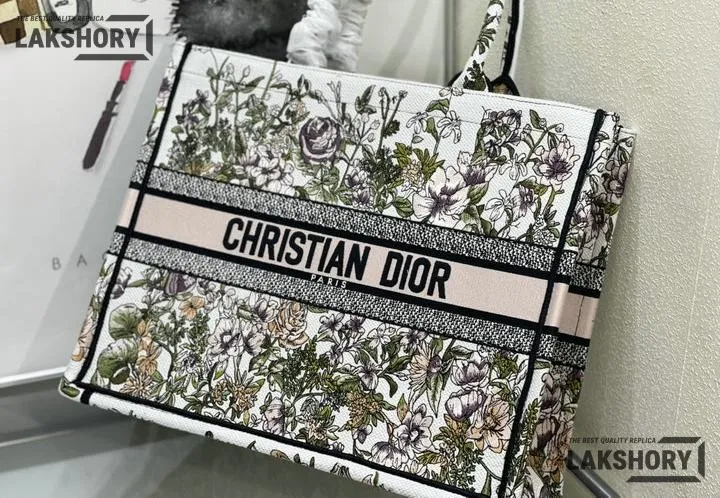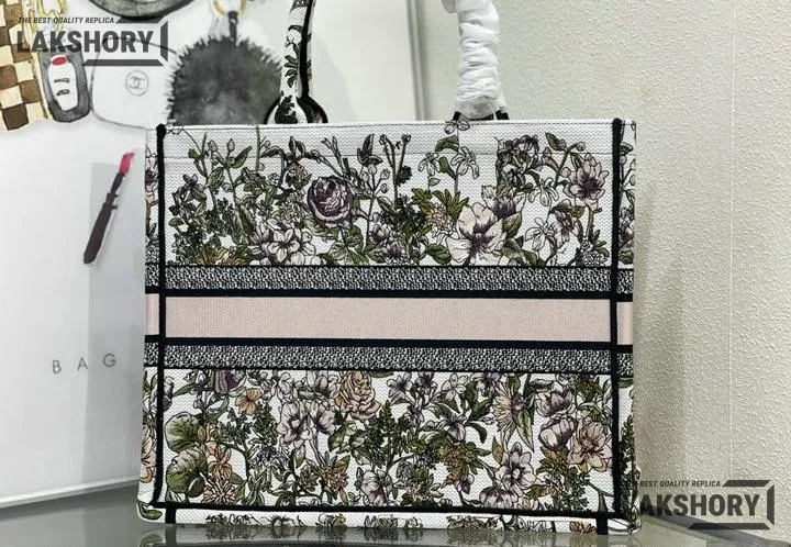 Dior 1:1 Mirror Replica Dior Book Tote White D-Floral Multicolor Embroidery