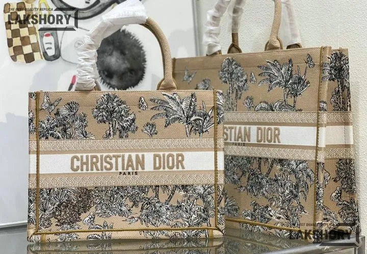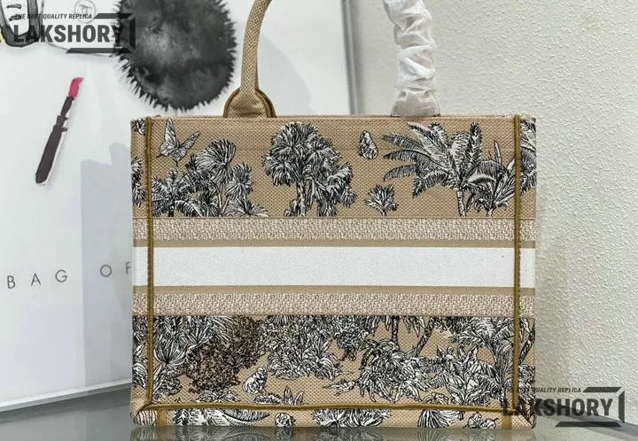Dior 1:1 Mirror Replica Dioriviera Book Tote Beige/White Toile de Jouy Palms
