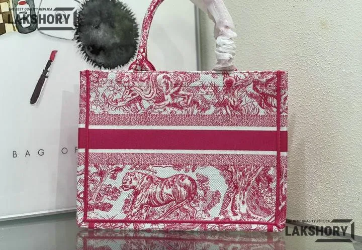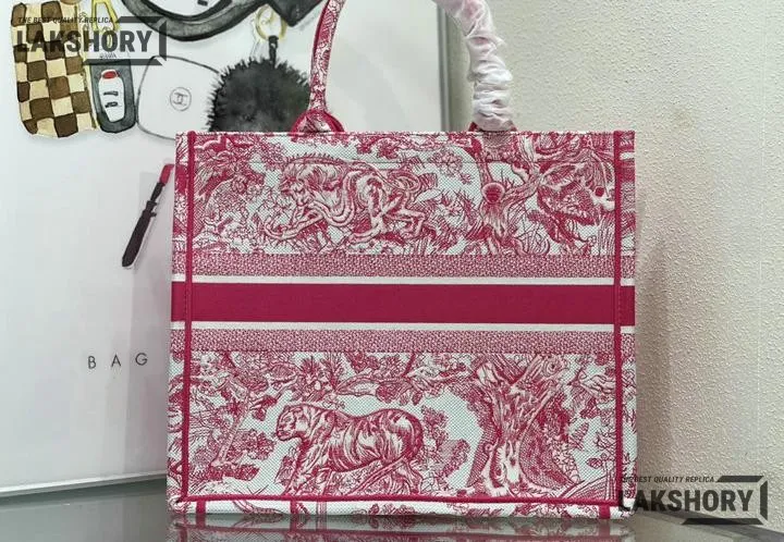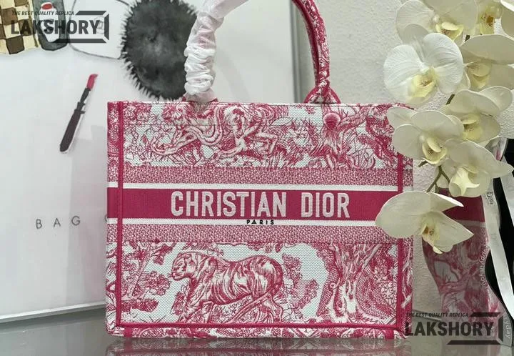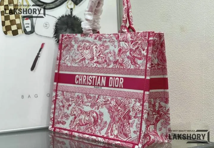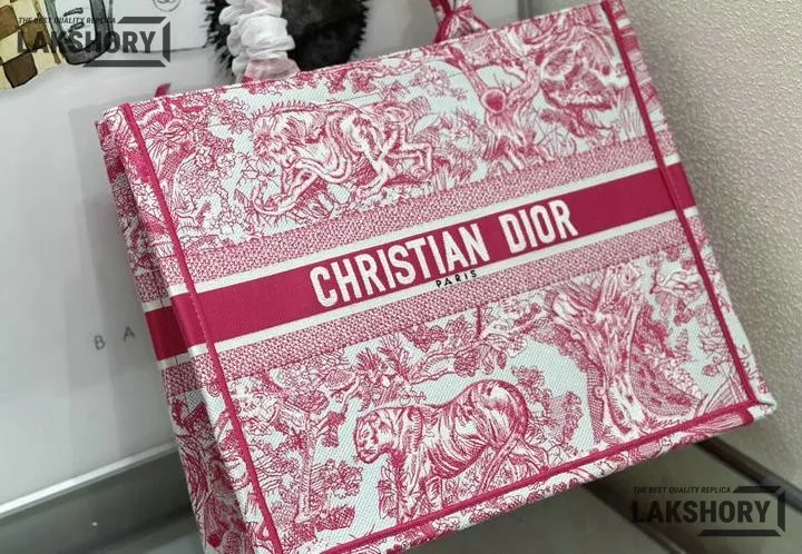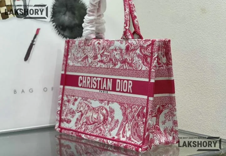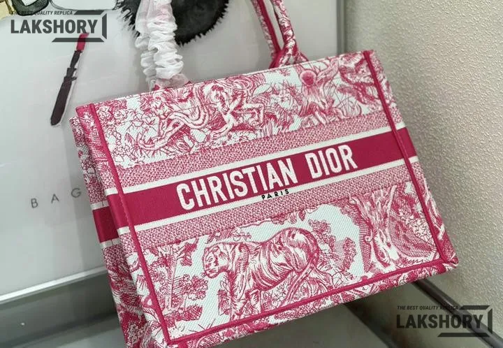Dior 1:1 Mirror Replica Dioriviera Pink Toile de Jouy Book Tote