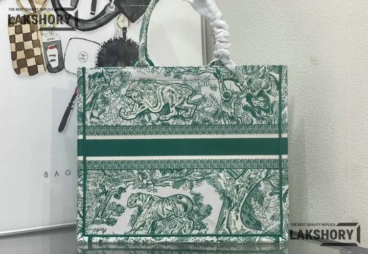 Dior 1:1 Mirror Replica Dioriviera Toile De Jouy Book Tote Green