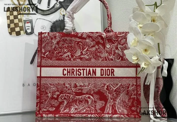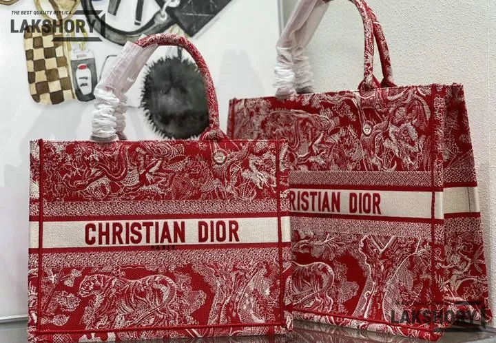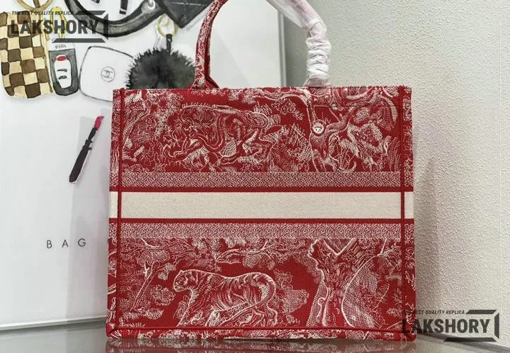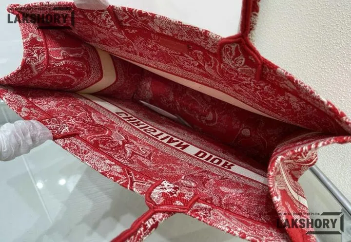 Dior 1:1 Mirror Replica Dioriviera Toile De Jouy Book Tote Raspberry 42CM/16.5IN